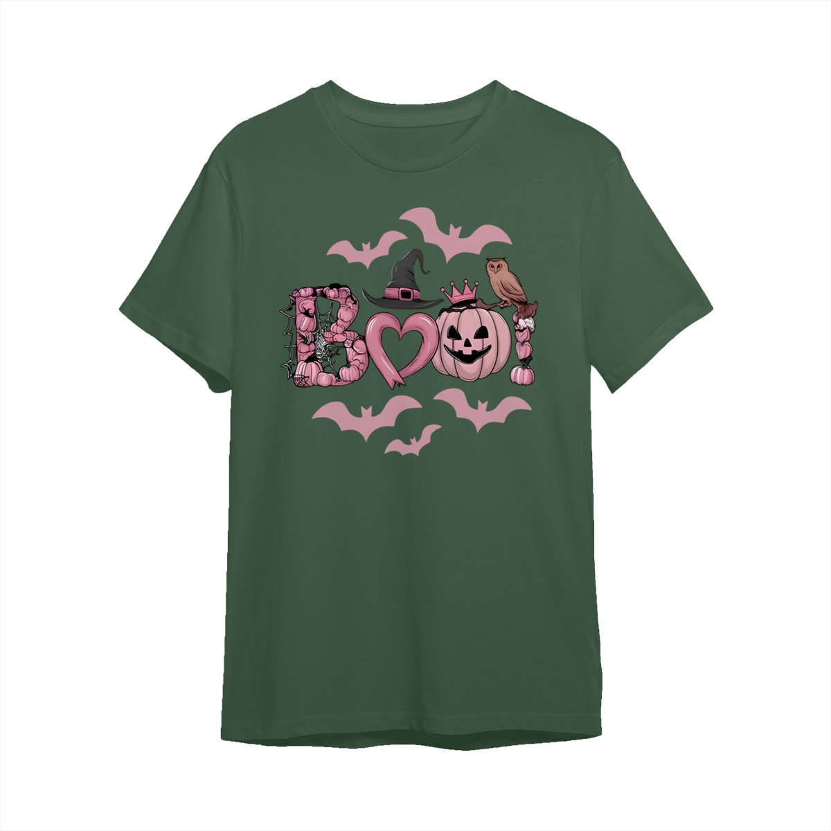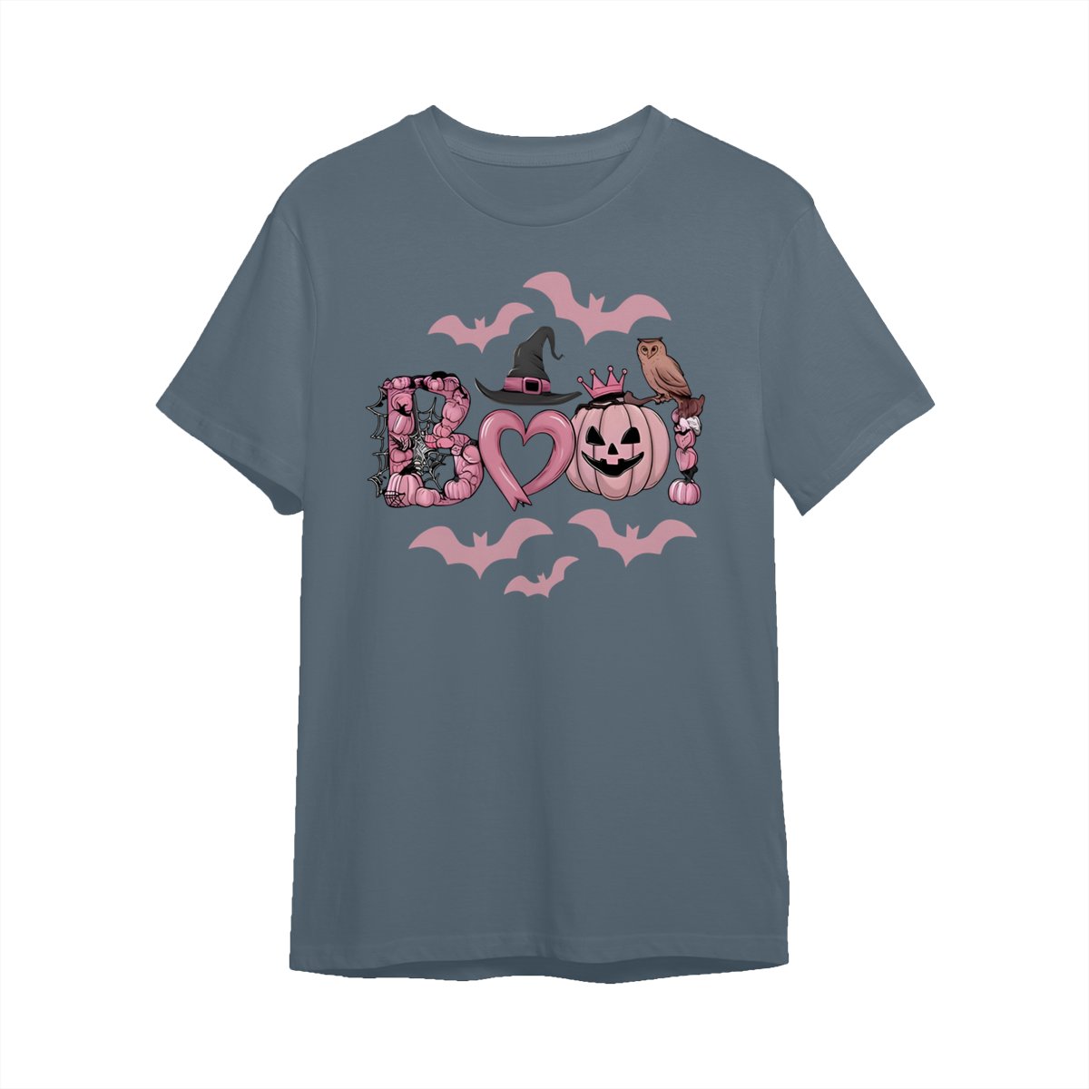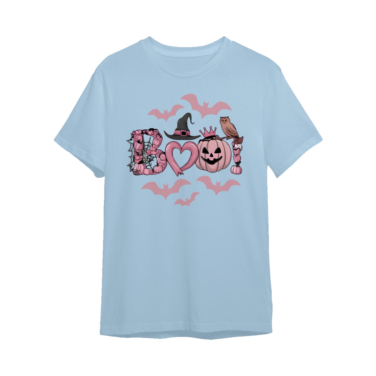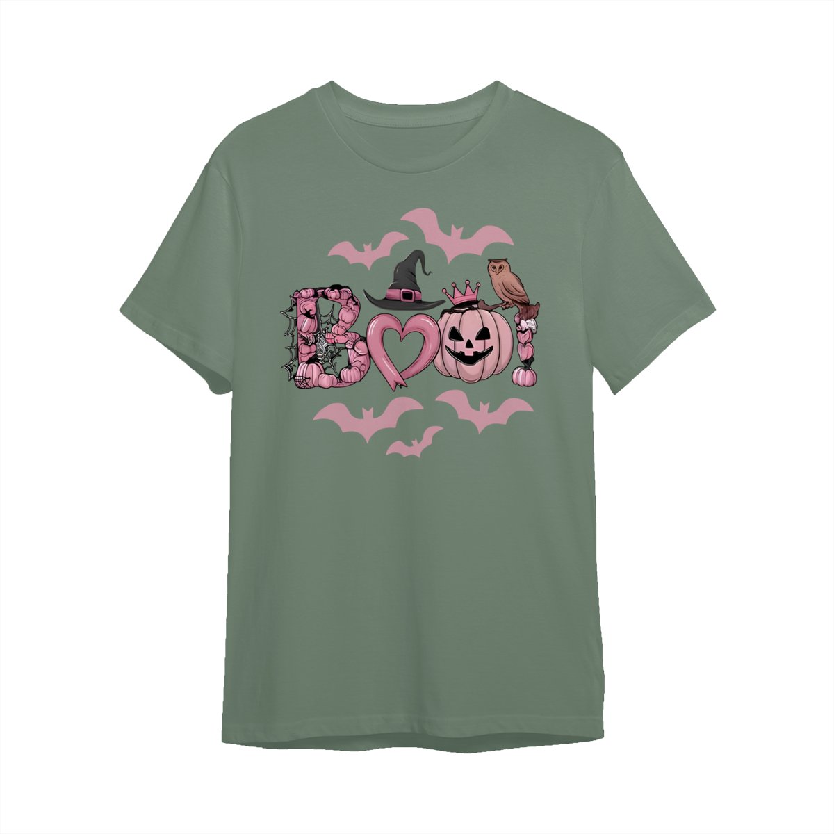 Pink Halloween Boo Sweatshirt – Cute Pastel Pumpkin and Bat Graphic with Witch Hat, Owl, and Crown