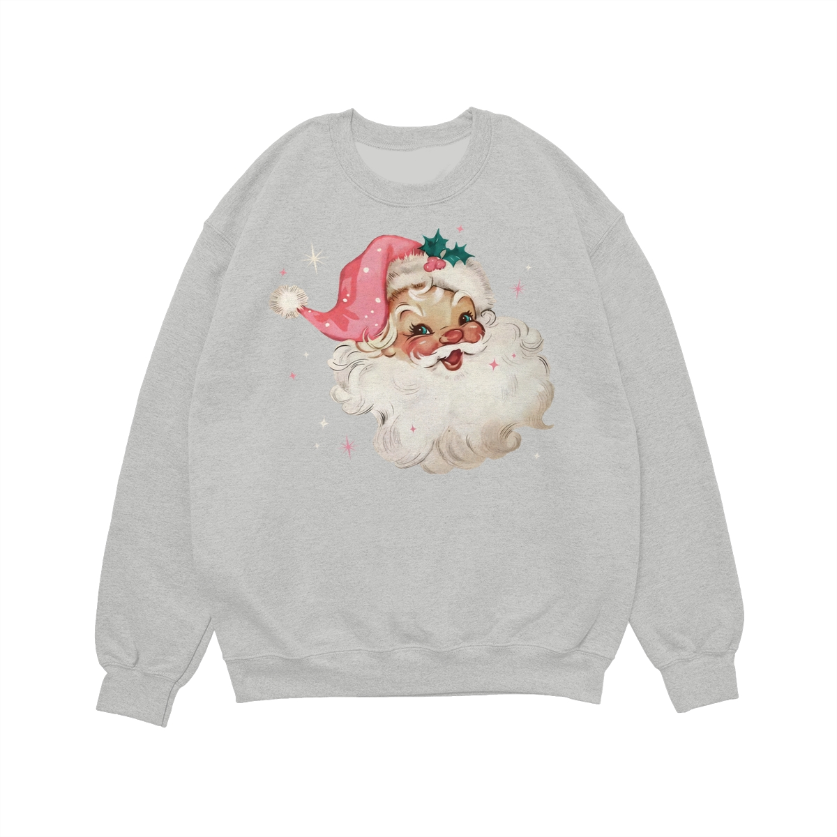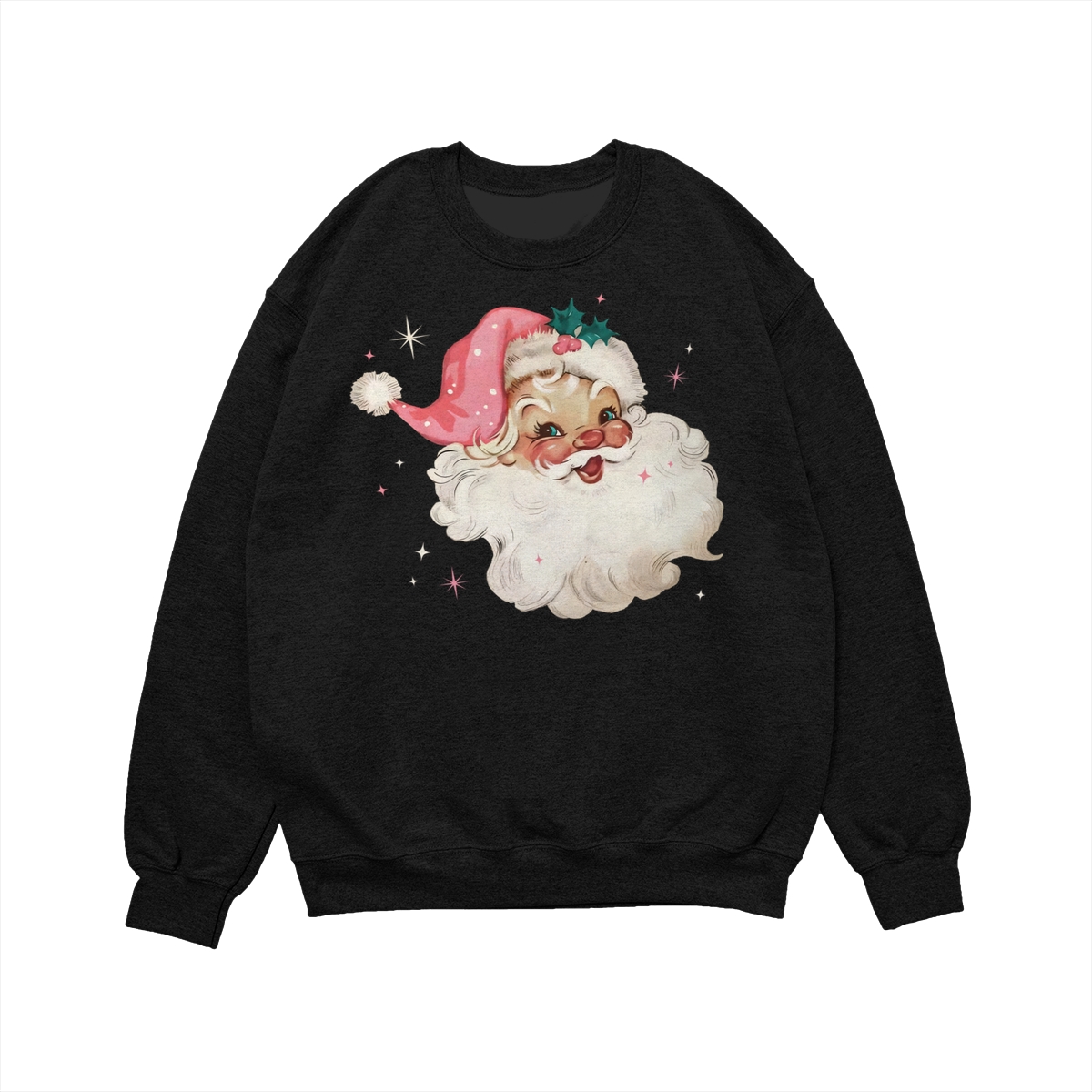 Pink Santa Retro Christmas T-Shirts Sweatshirts, Pink Christmas Matching Family Sweaters, Pink Vintage Holiday Crewneck, Group Party Christmas Gift