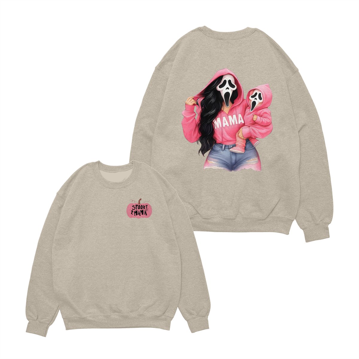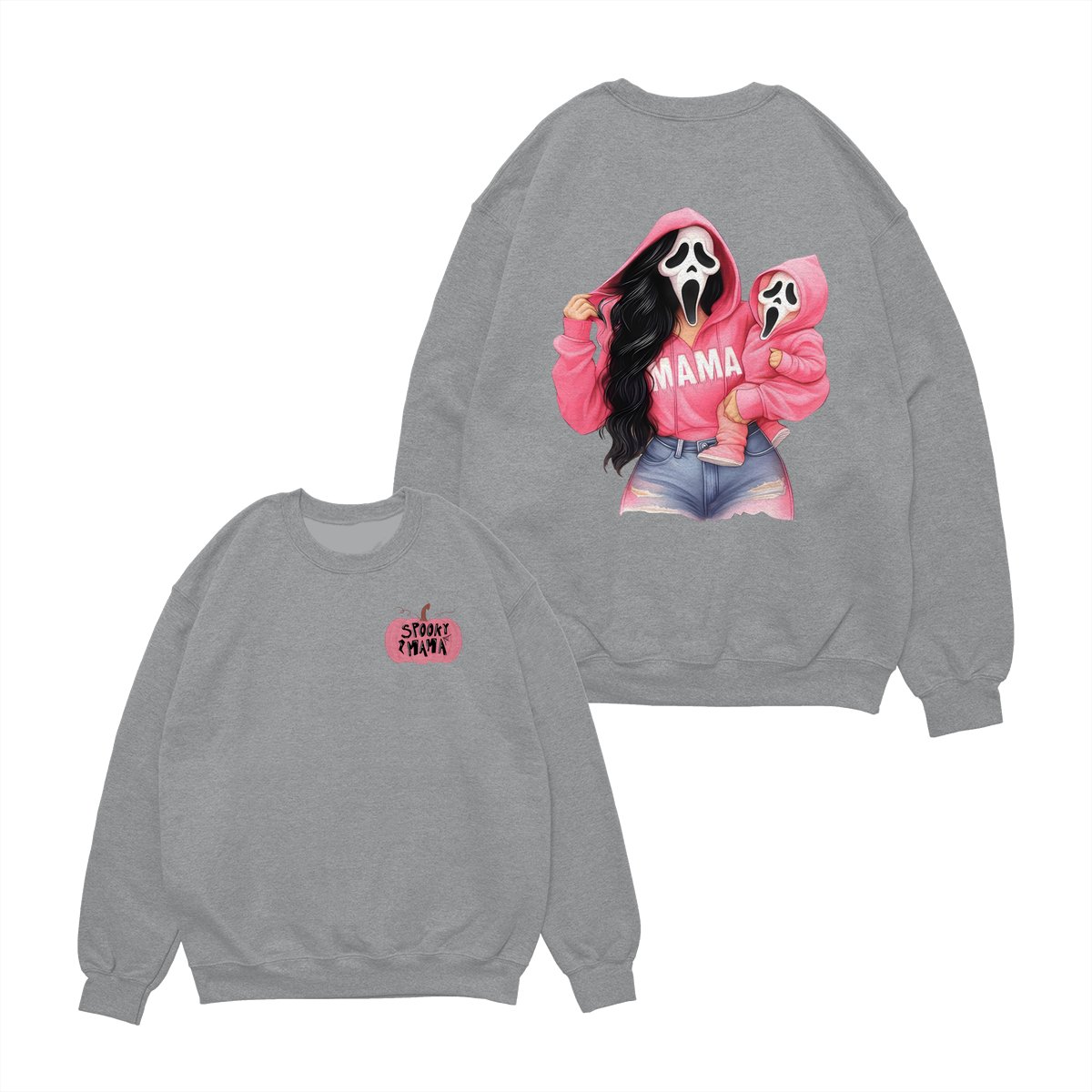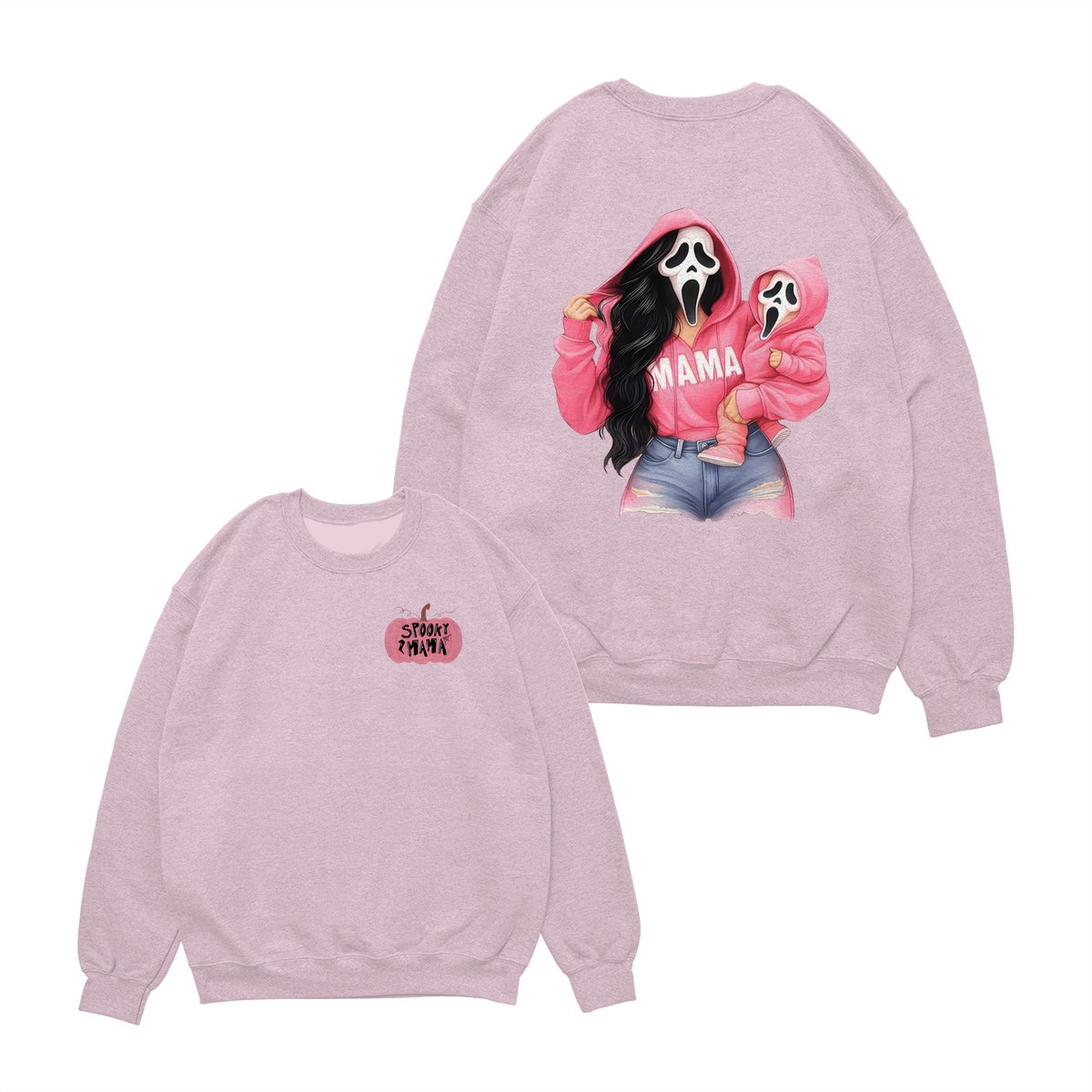 Pinnk Spooky Mama Matching Halloween Shirt, Ghost Mama Crewneck, Pummpkin Mama Shirt