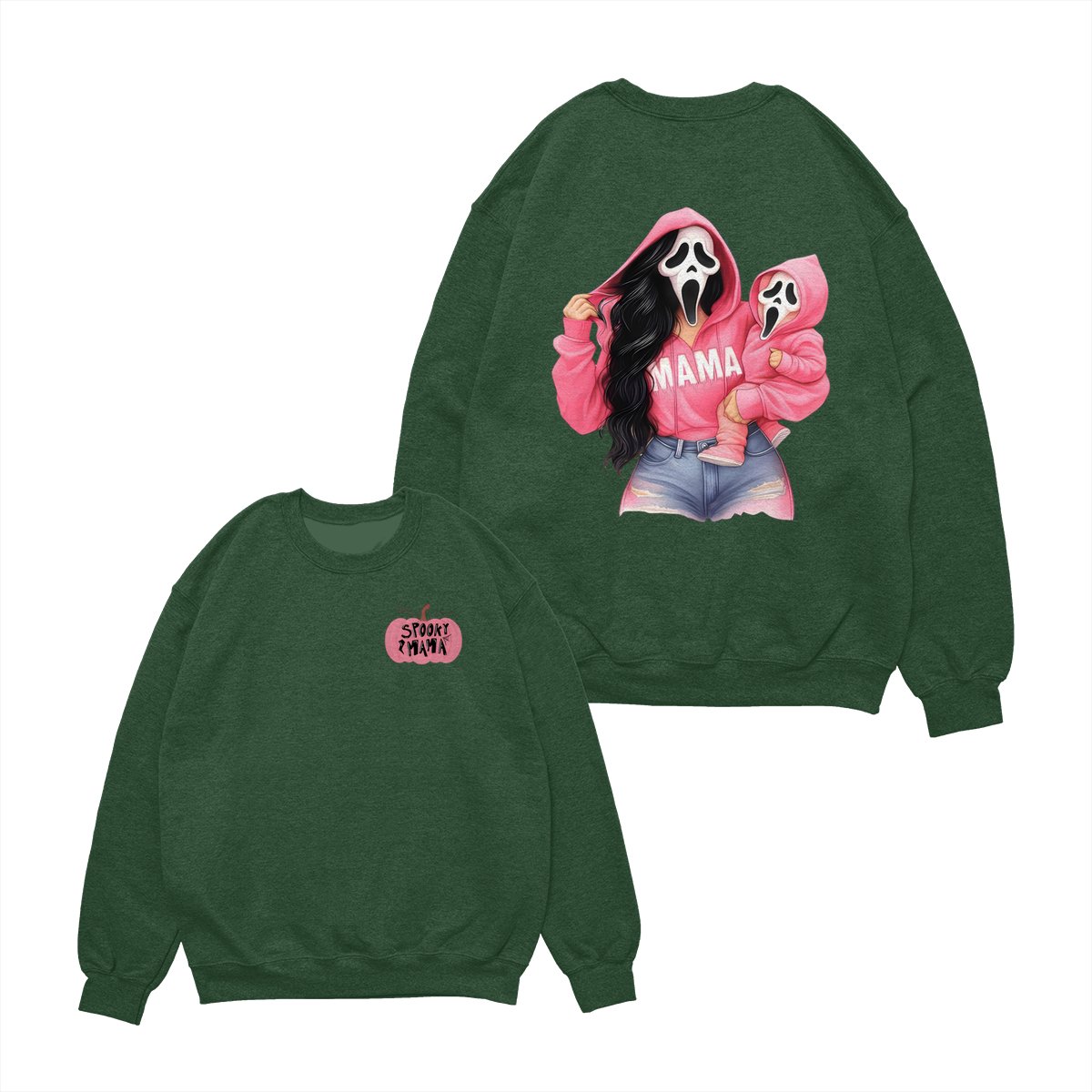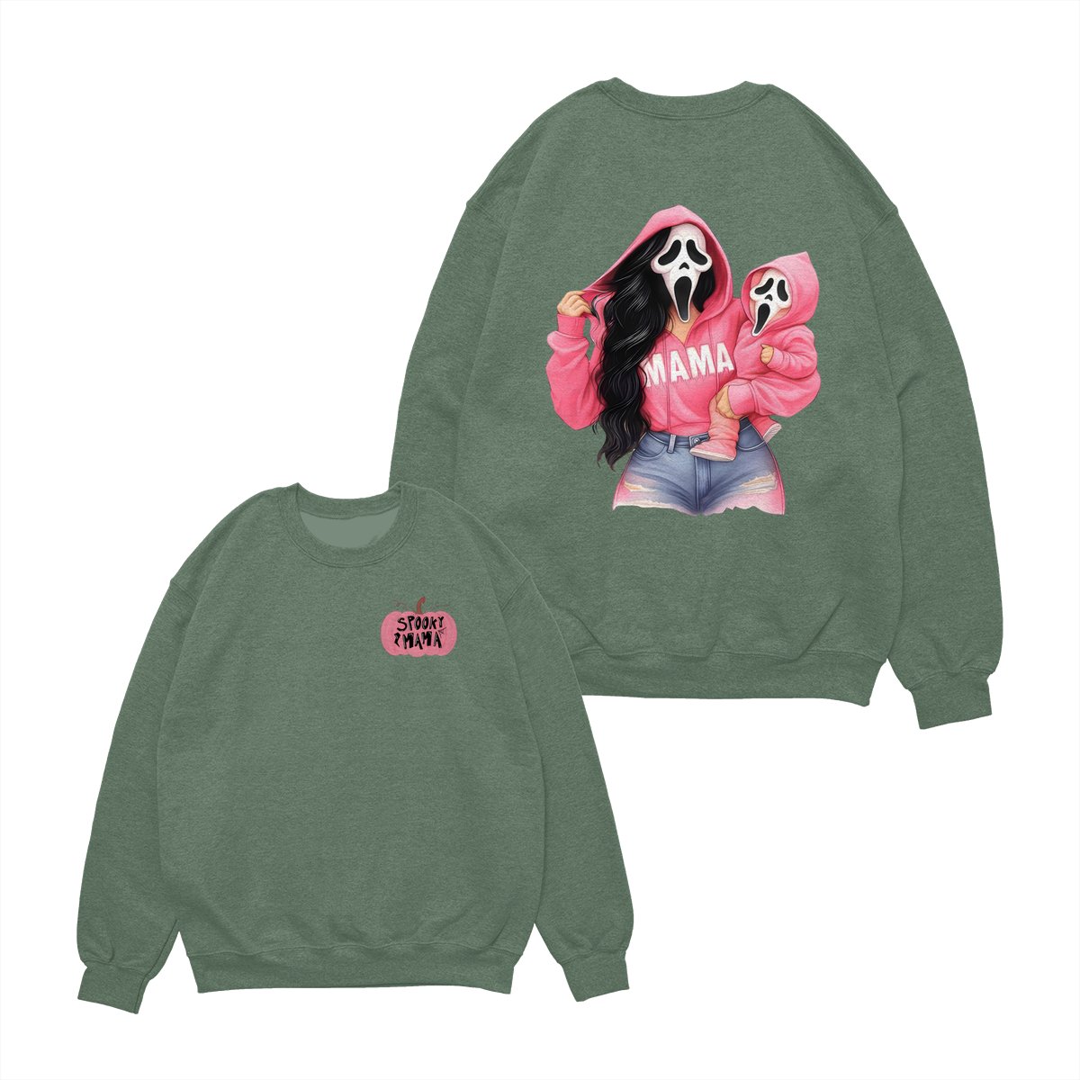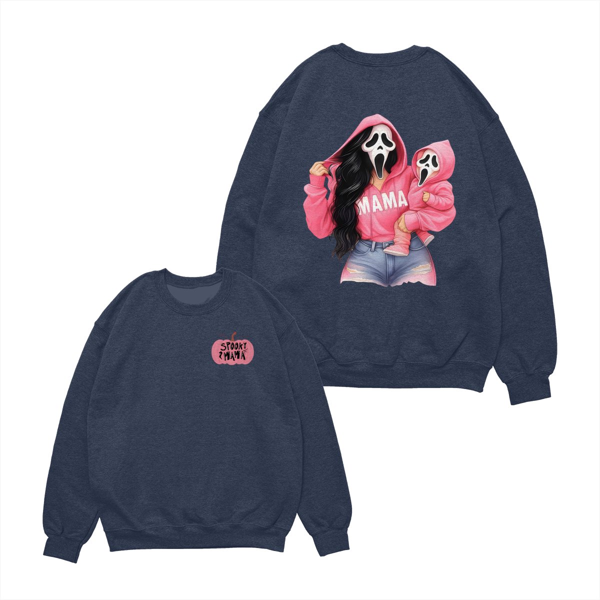 Pinnk Spooky Mama Matching Halloween Shirt, Ghost Mama Crewneck, Pummpkin Mama Shirt
