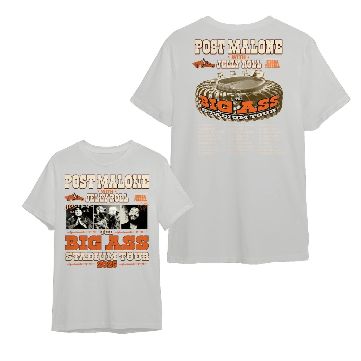Post Malone Jelly Roll Tour Shirt, Big Ass Stadium Tour Tee, Country Concert T-Shirt, Posty Merch, Western Graphic Music Tee, Gift For Women, For Mom, Womenswears