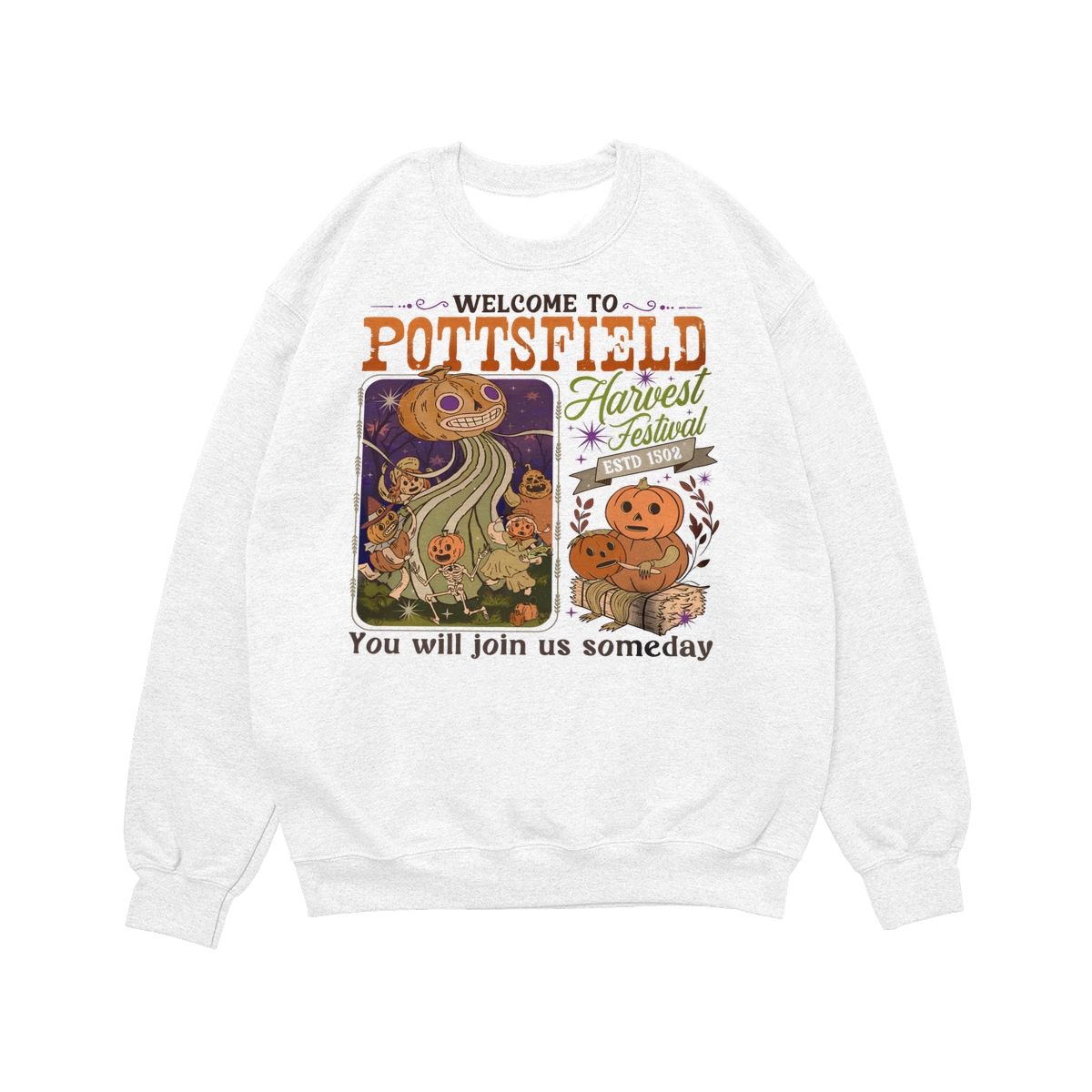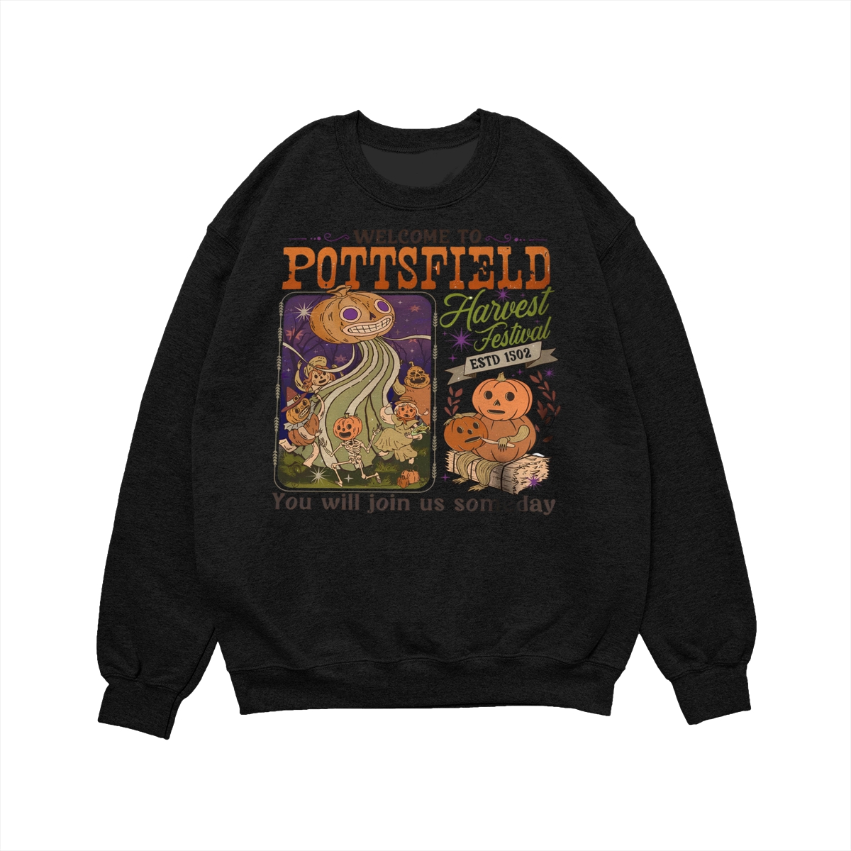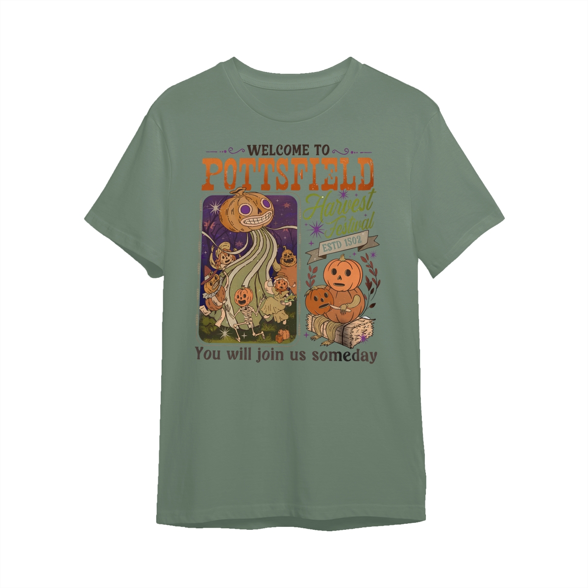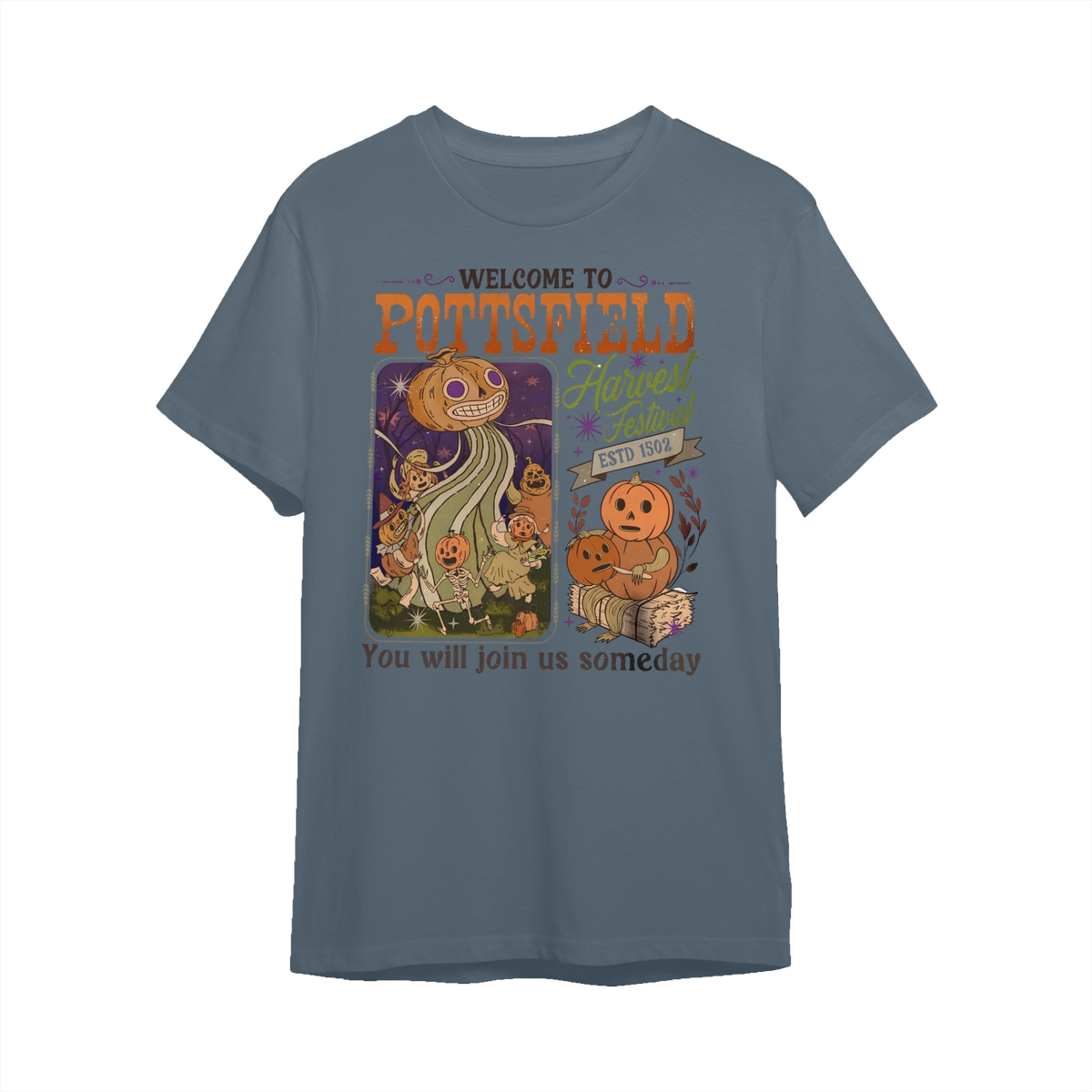 Pottsfield Harvest Festival T-Shirt, Halloween Skeleton Pumpkin Tee, Autumn Carver Shirt for Spooky Season