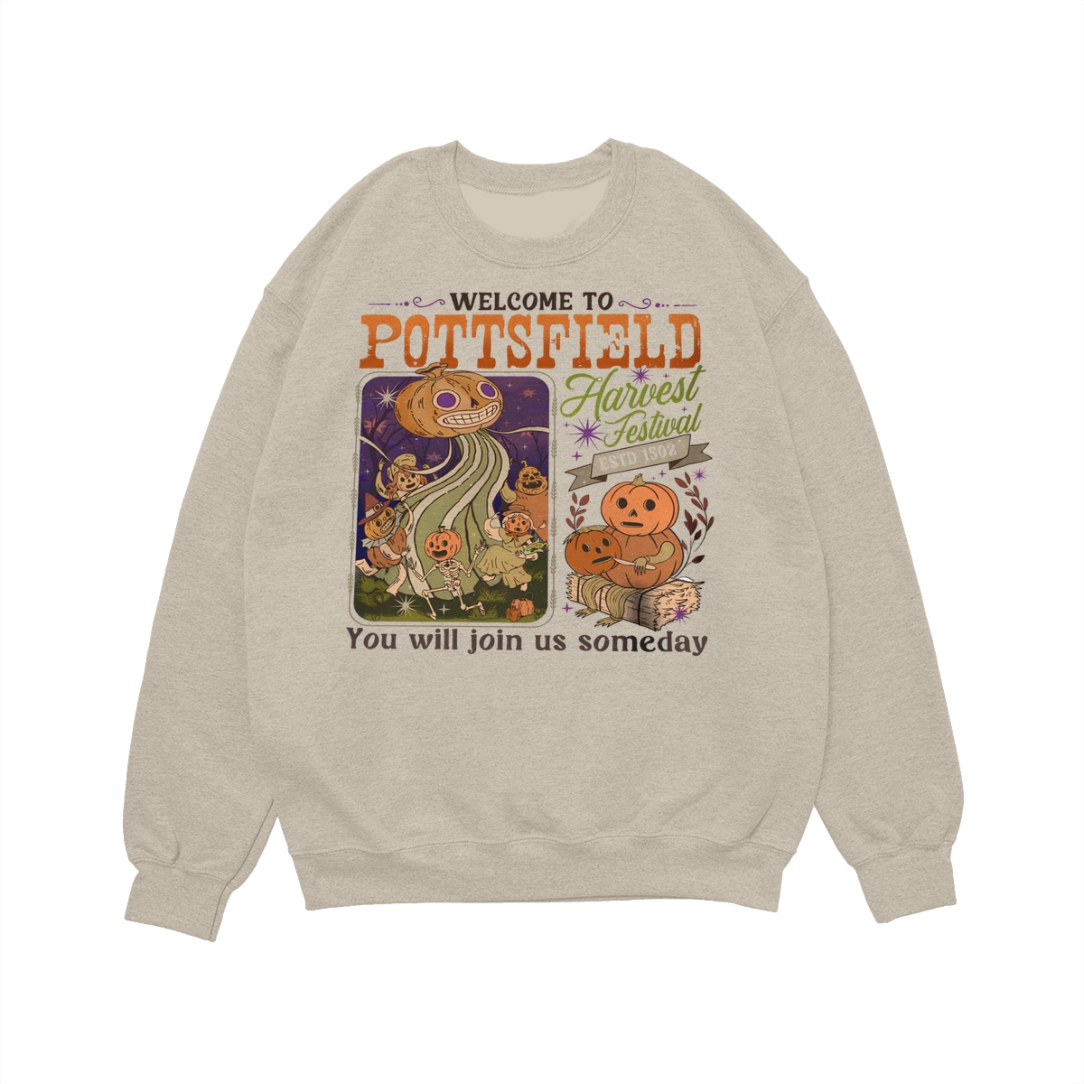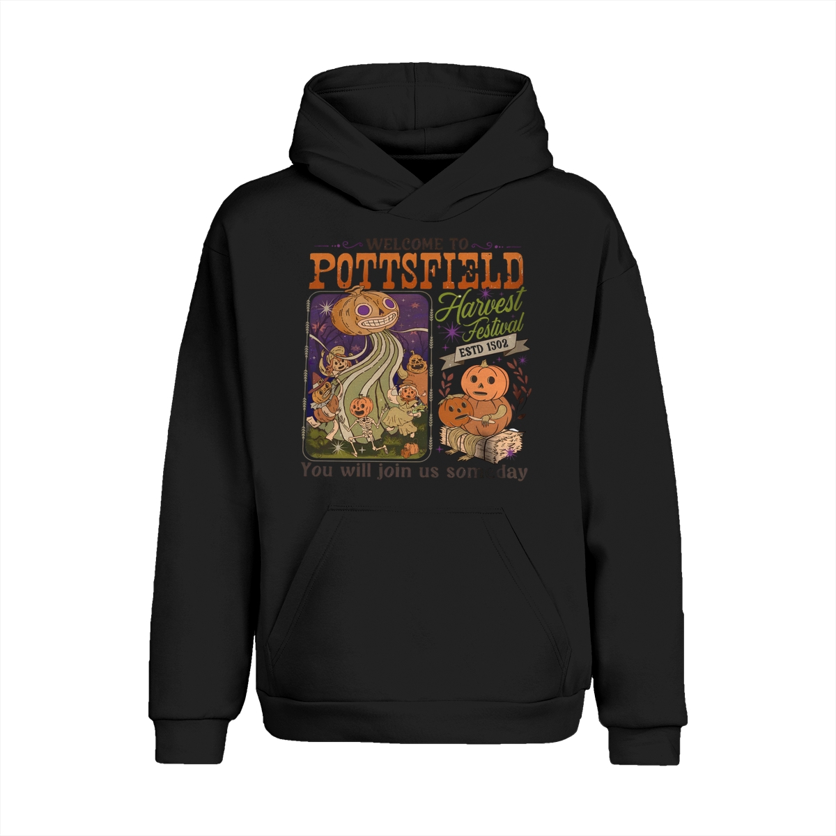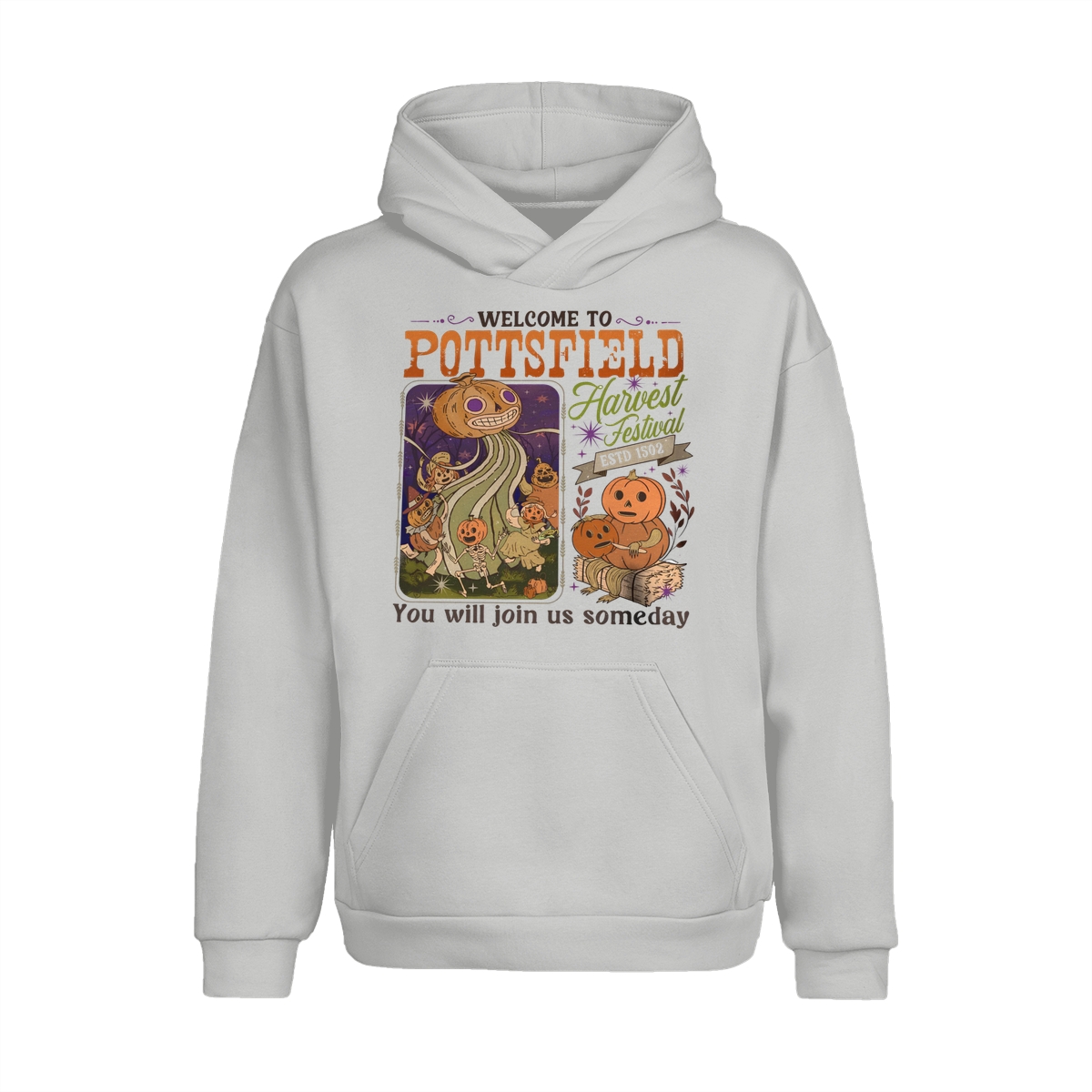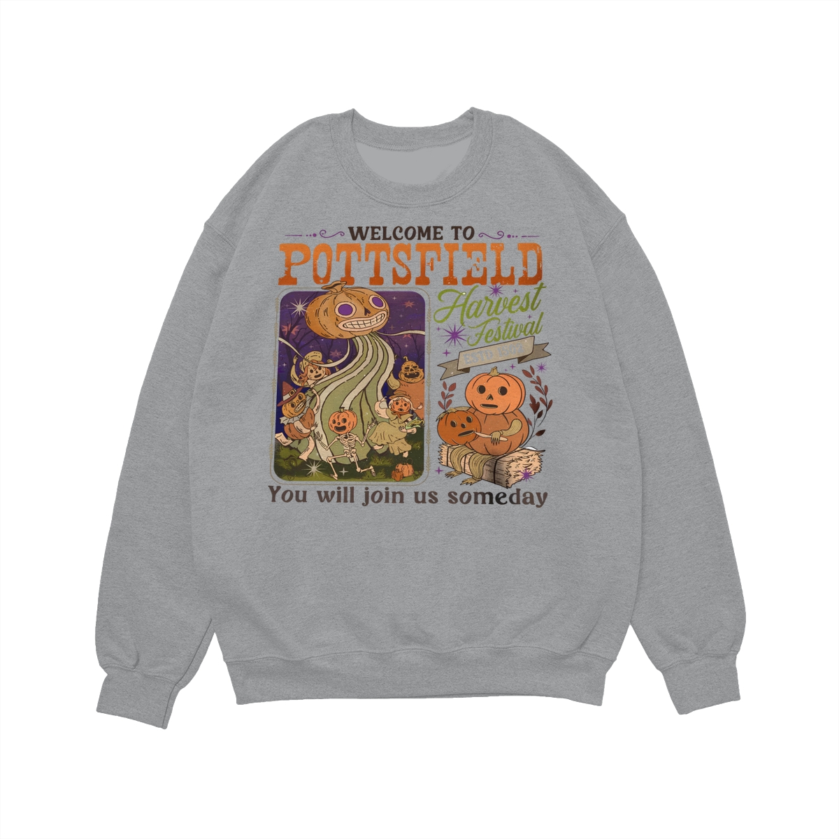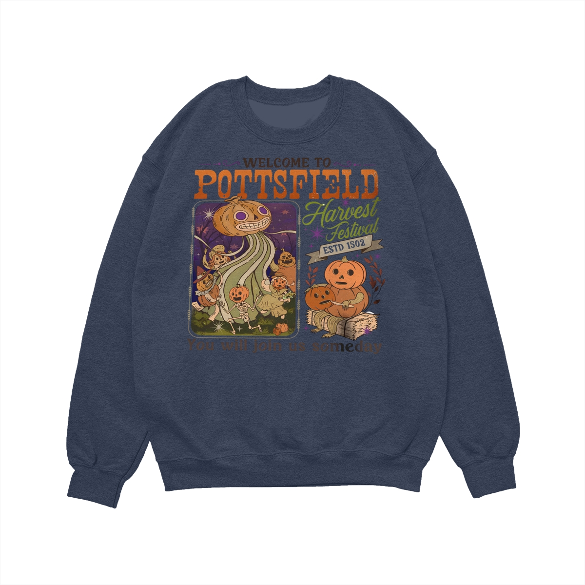 Pottsfield Harvest Festival T-Shirt, Halloween Skeleton Pumpkin Tee, Autumn Carver Shirt for Spooky Season
