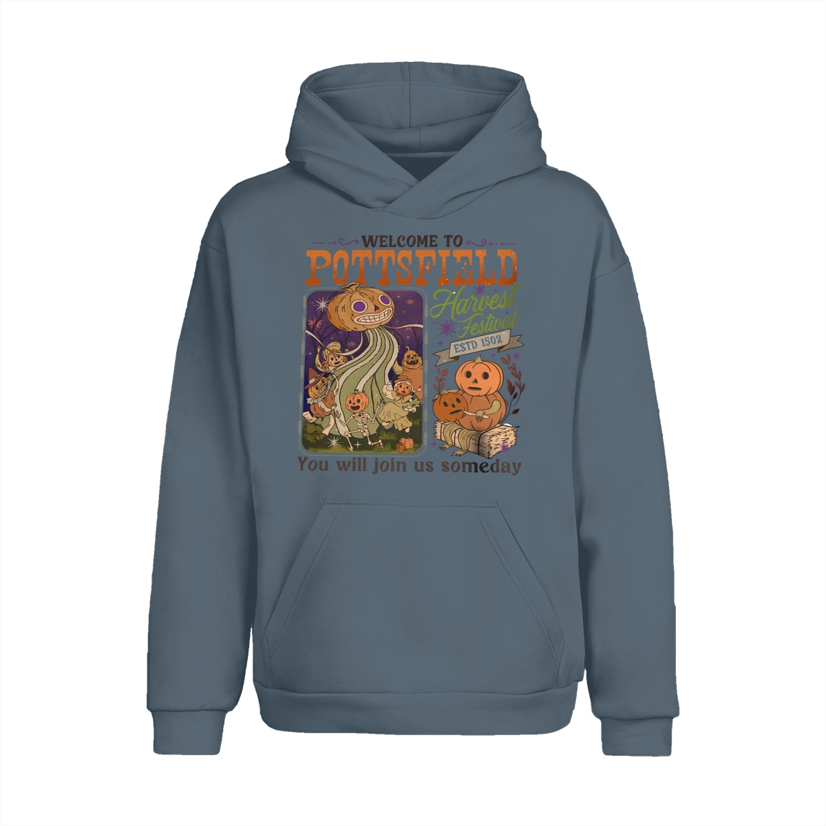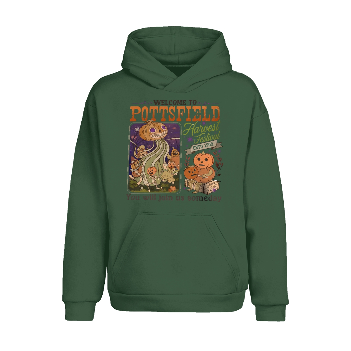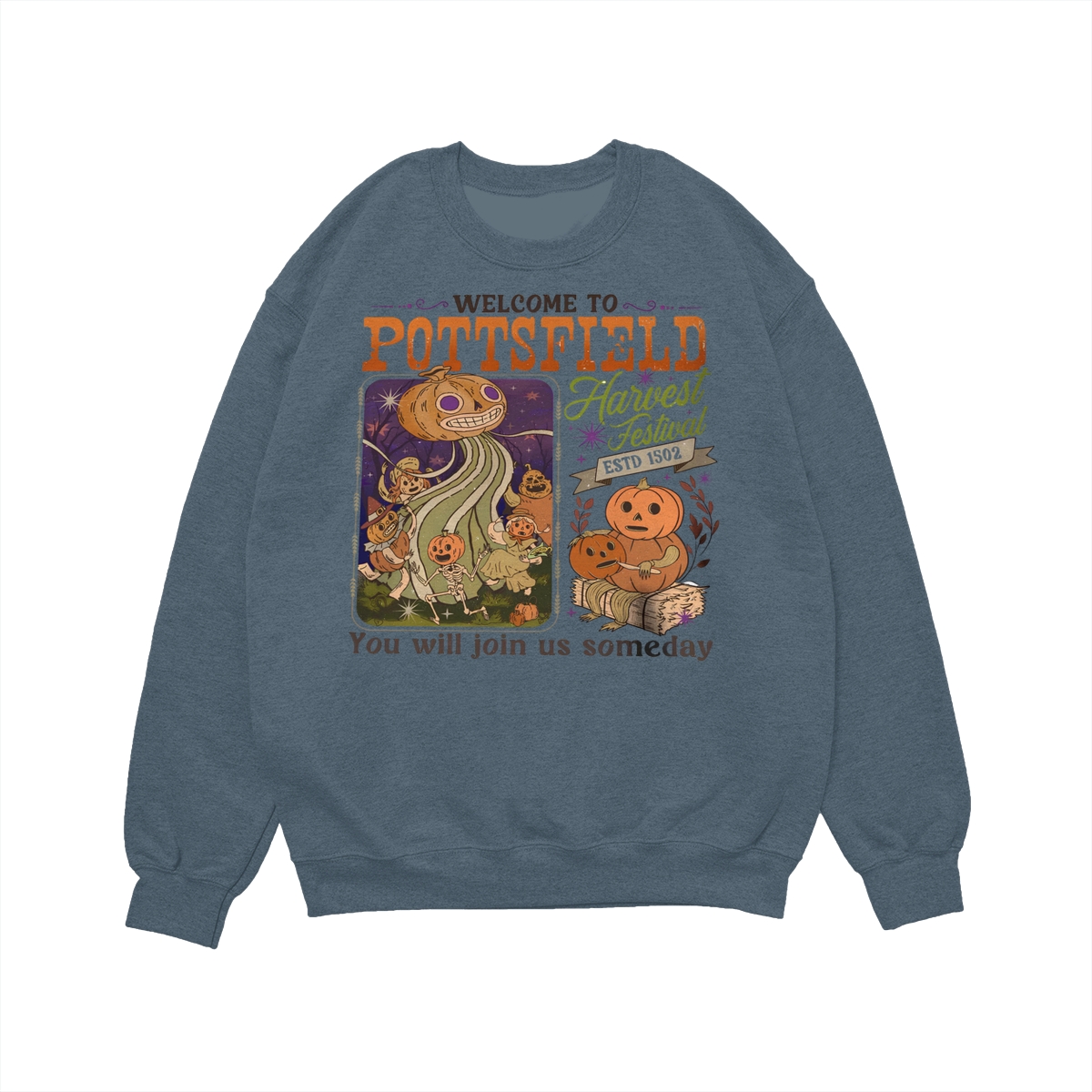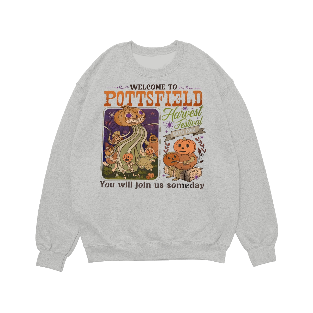 Pottsfield Harvest Festival T-Shirt, Halloween Skeleton Pumpkin Tee, Autumn Carver Shirt for Spooky Season