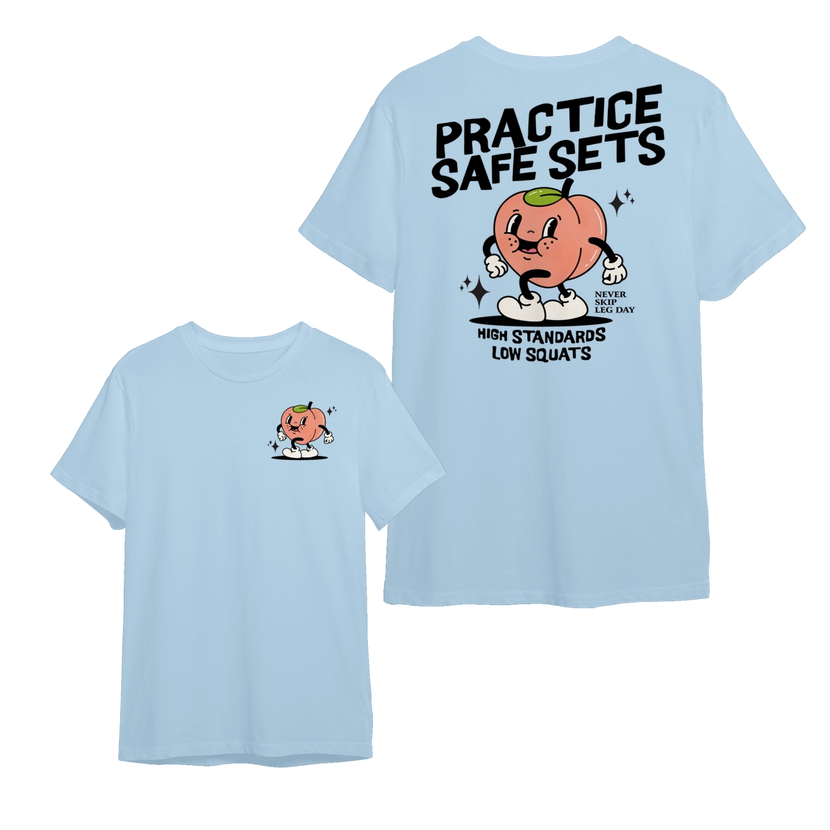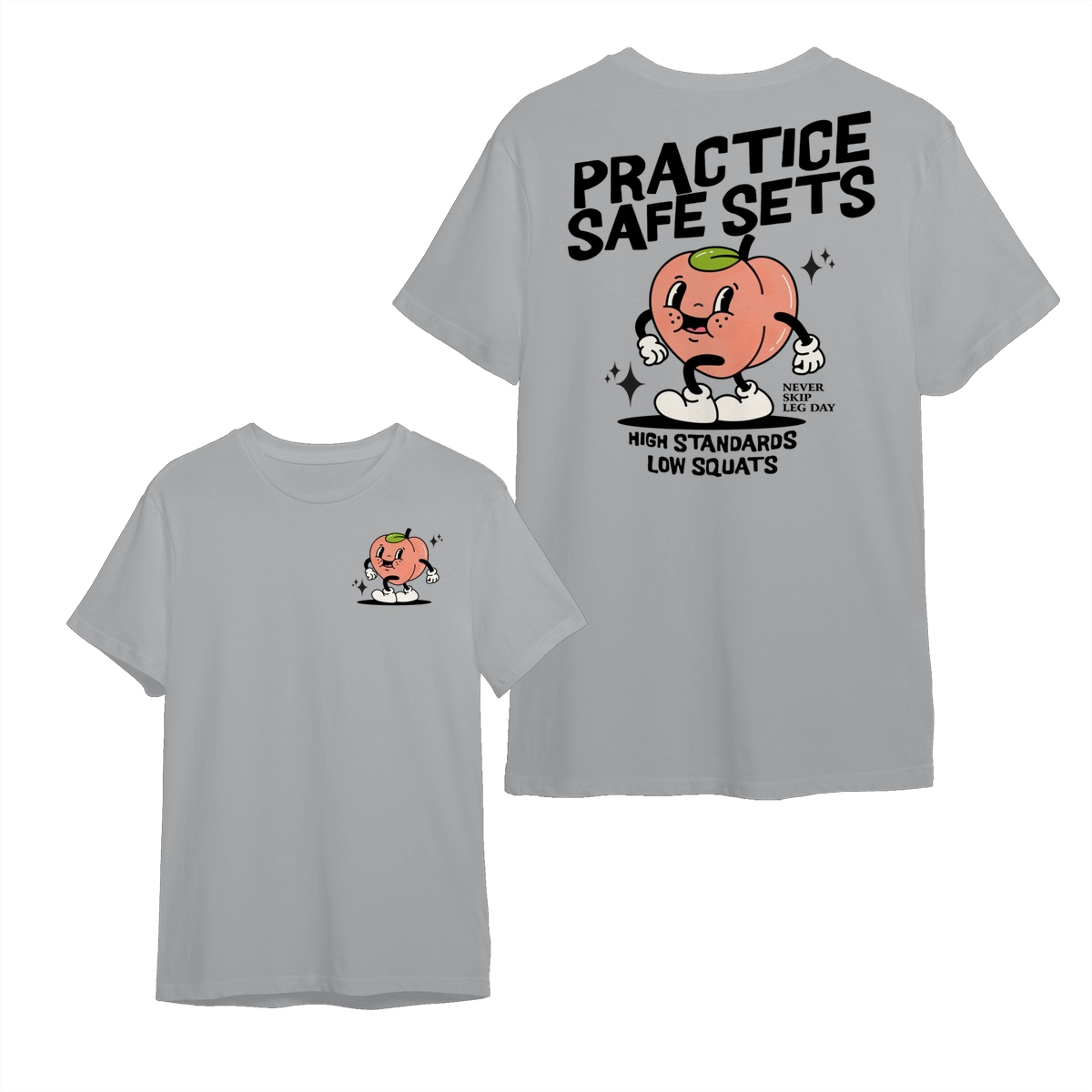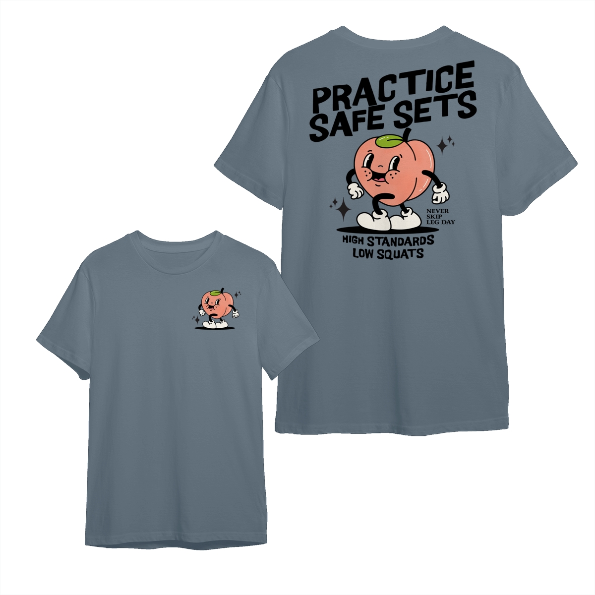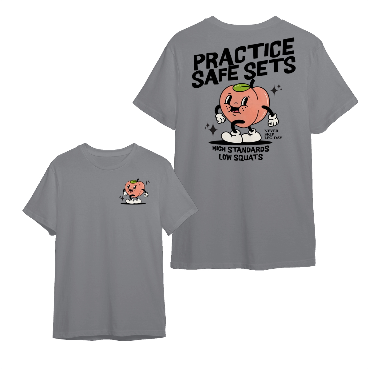 Practice Safe Sets Gym T-Shirt, Gym Shirt, Graphic Gym Shirt, Vintage Washed Tee Conton, Gym Shirt Women, For Men, Ful Size