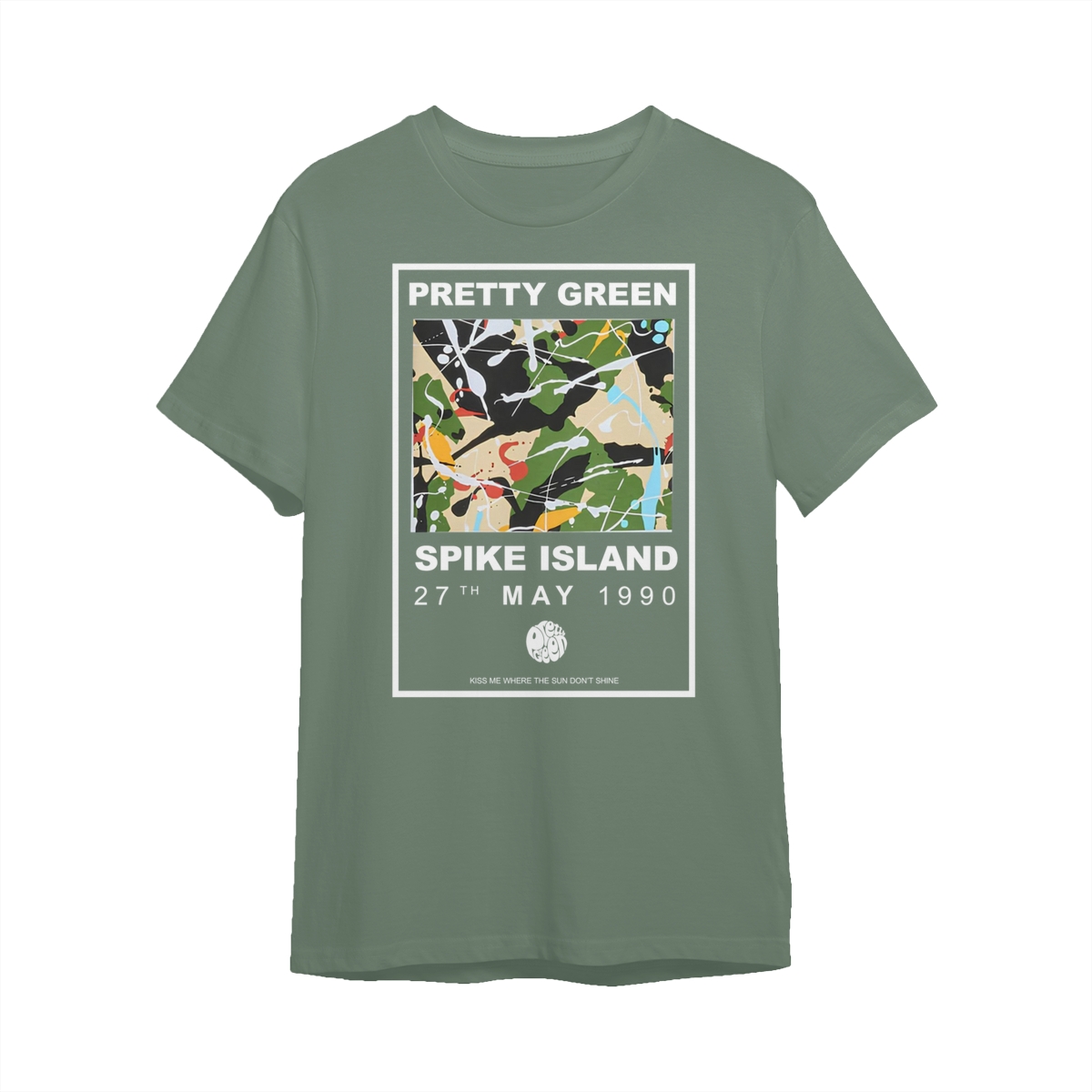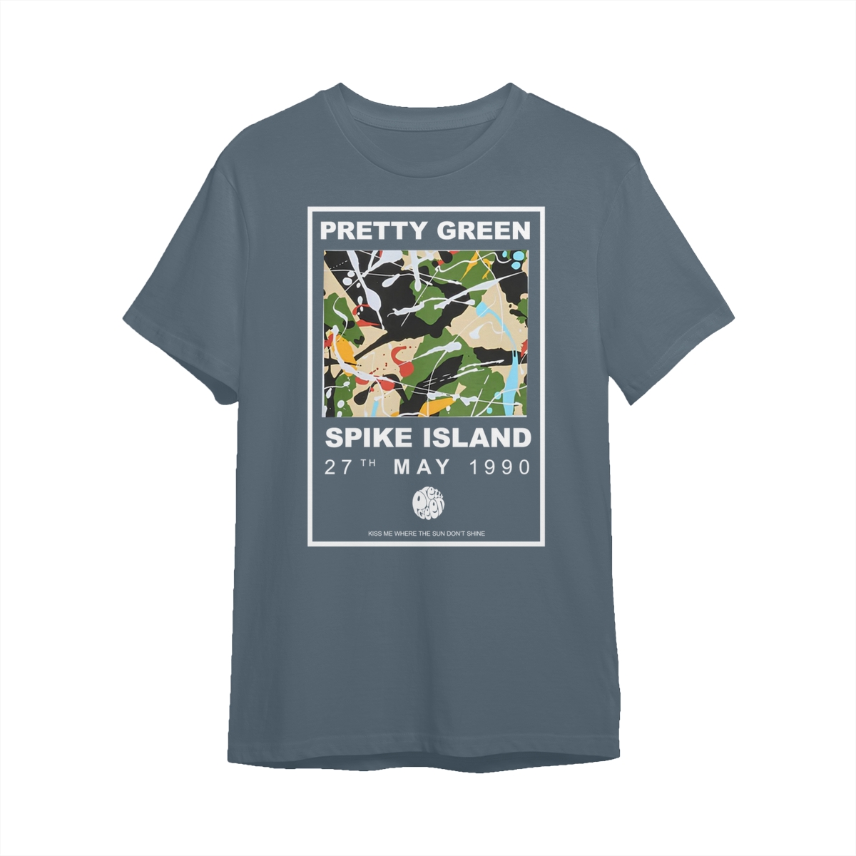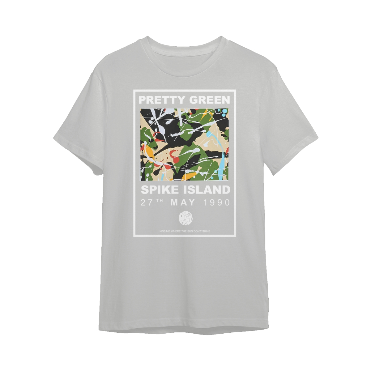 Pretty Green Spike Island Stone Roses T-Shirt – 90s Graphic Tee, Men’s Regular Fit Cotton Crew Neck, Short Sleeve, 2025 Summer
