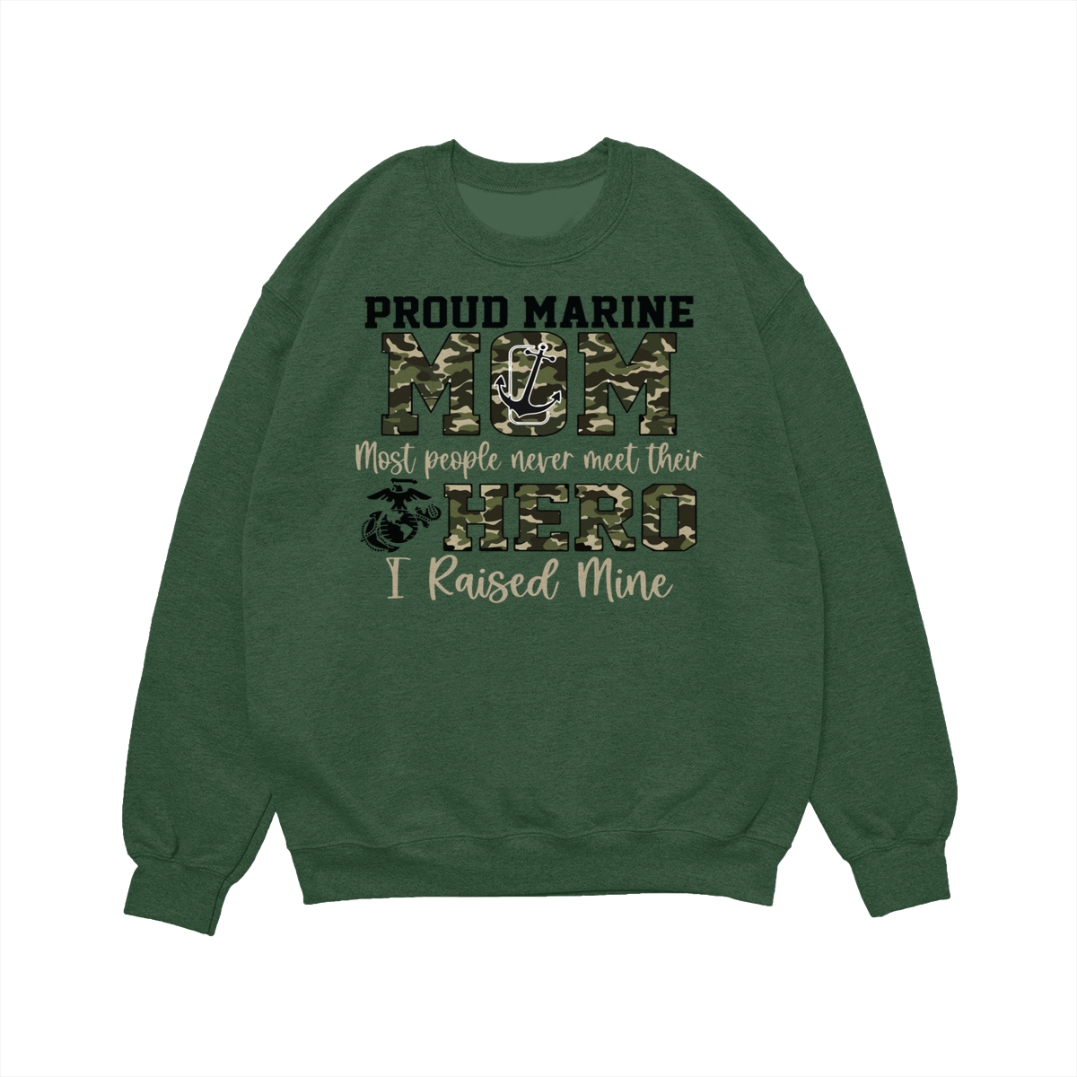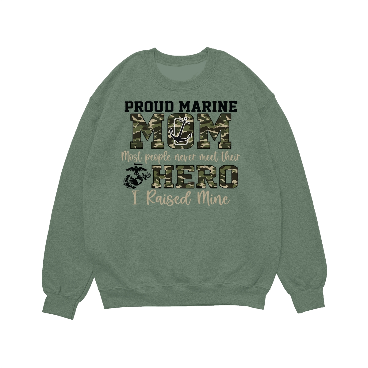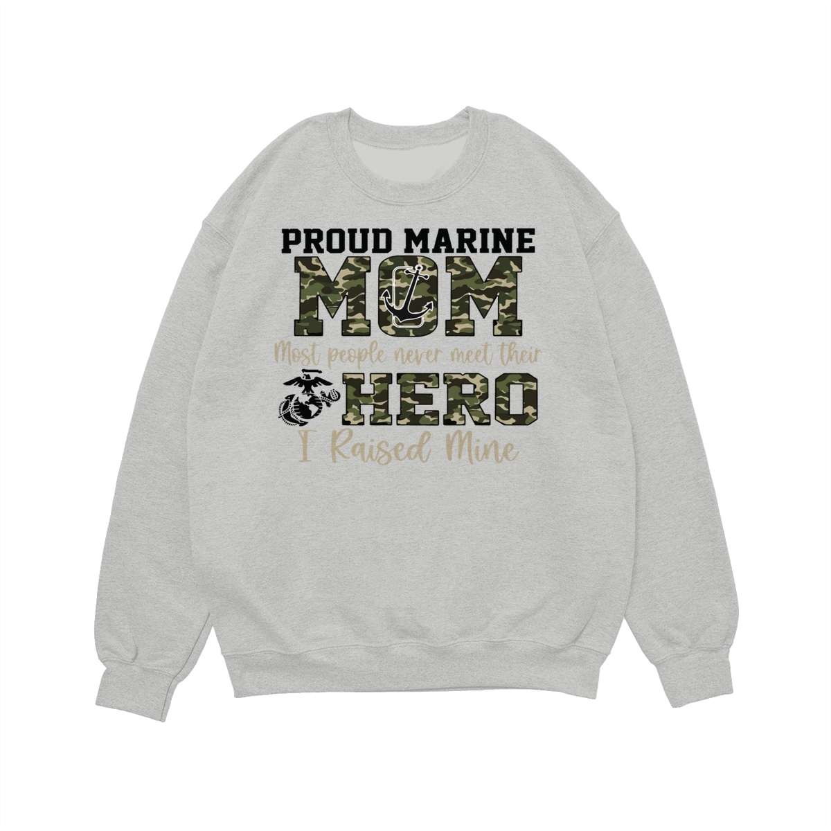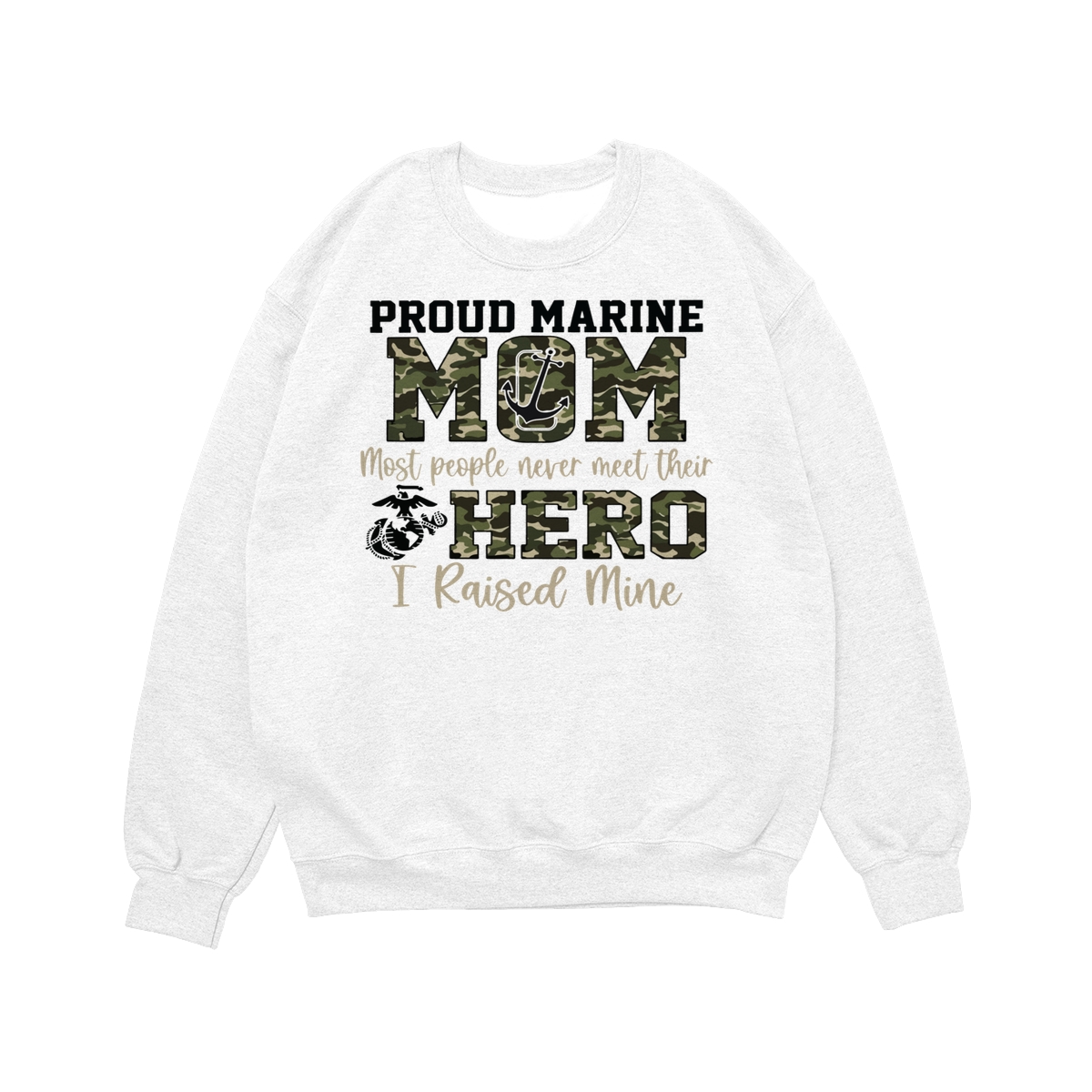 Proud Marine Mom Sweatshirt – Military Camo Letters And Patriotic Quote Design, Perfect Gift For Mothers Of Marines, Military Family Apparel, Hero Mom Pride Outfit, Veteran Support Tee Printed