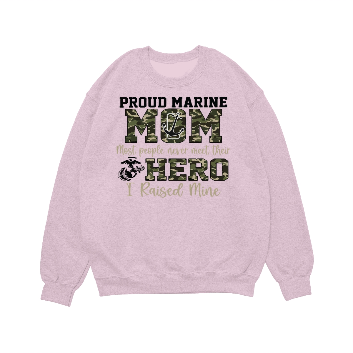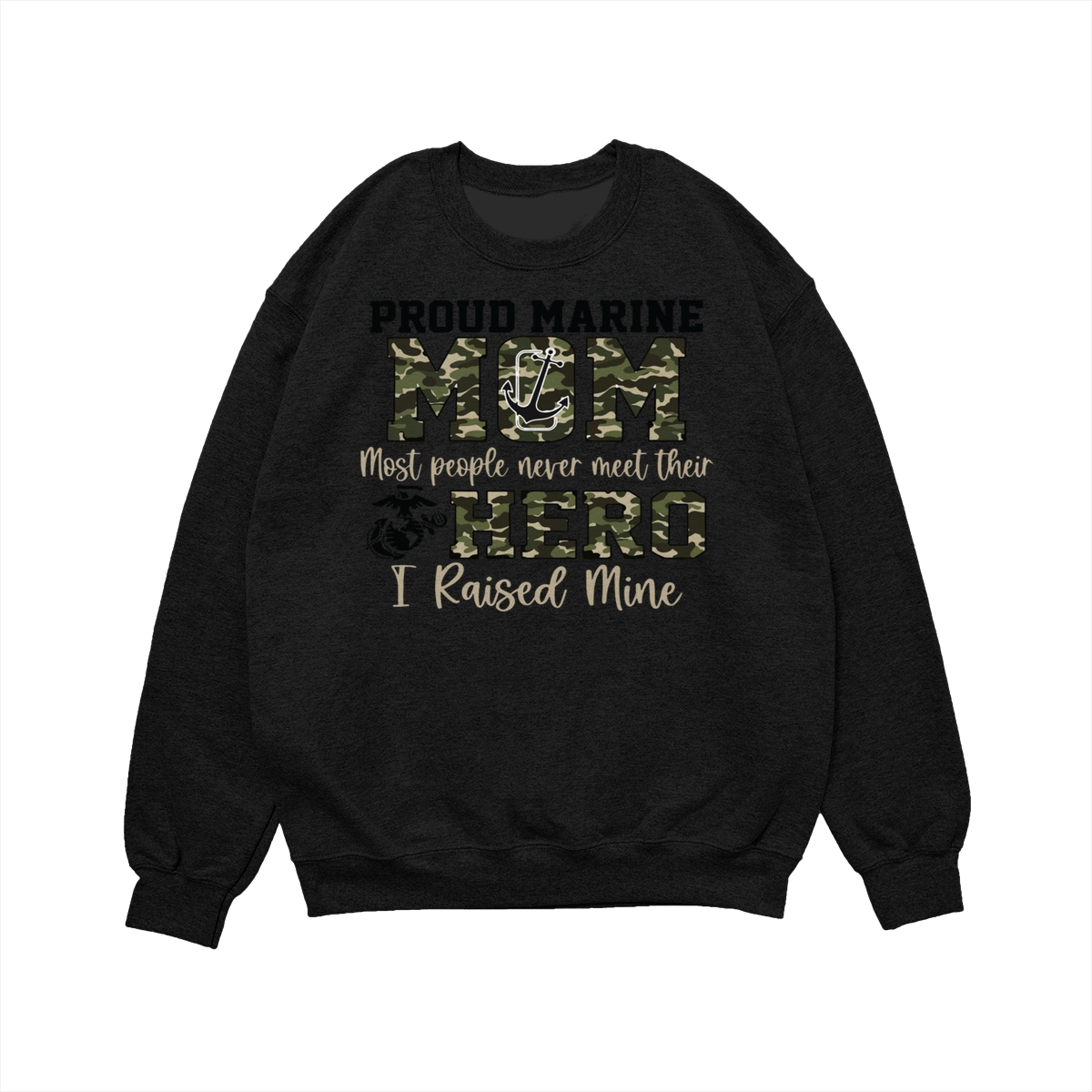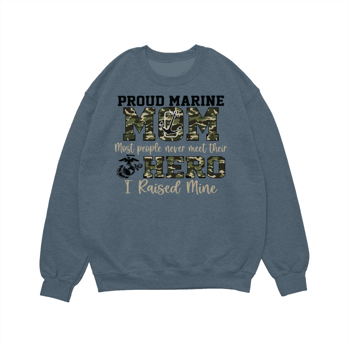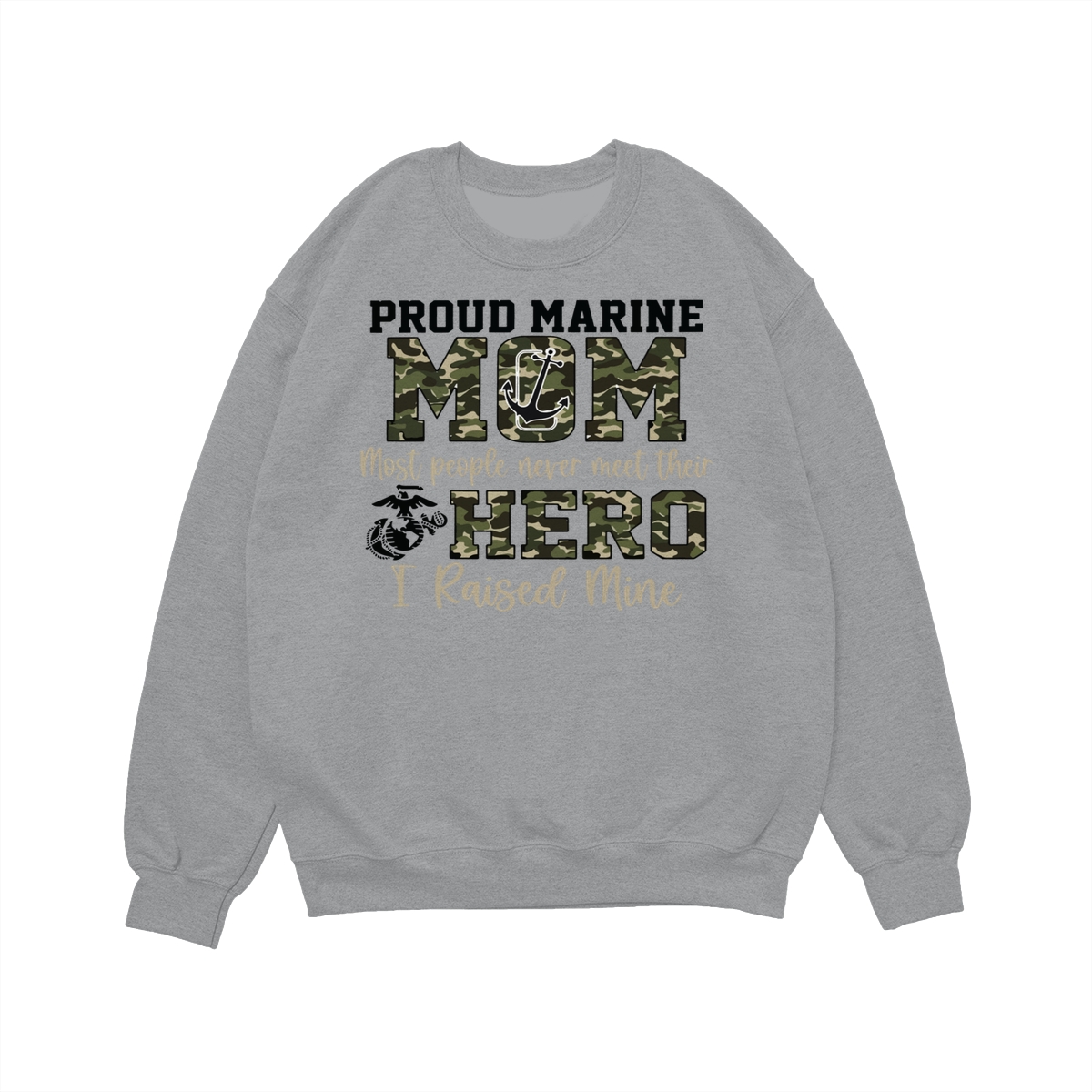 Proud Marine Mom Sweatshirt – Military Camo Letters And Patriotic Quote Design, Perfect Gift For Mothers Of Marines, Military Family Apparel, Hero Mom Pride Outfit, Veteran Support Tee Printed