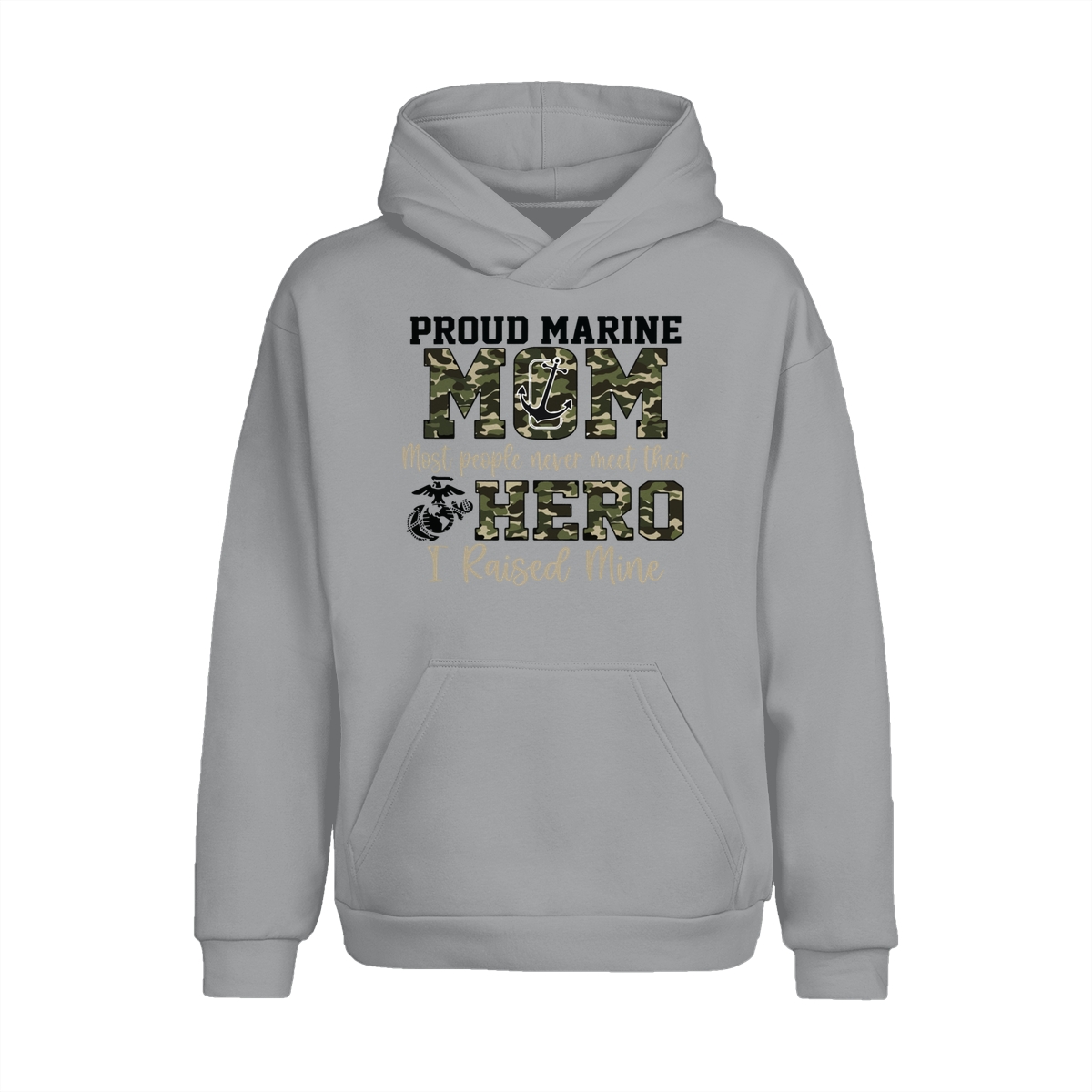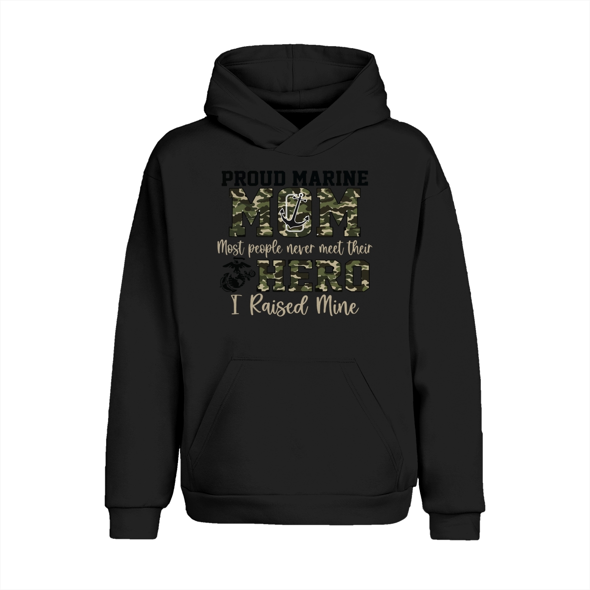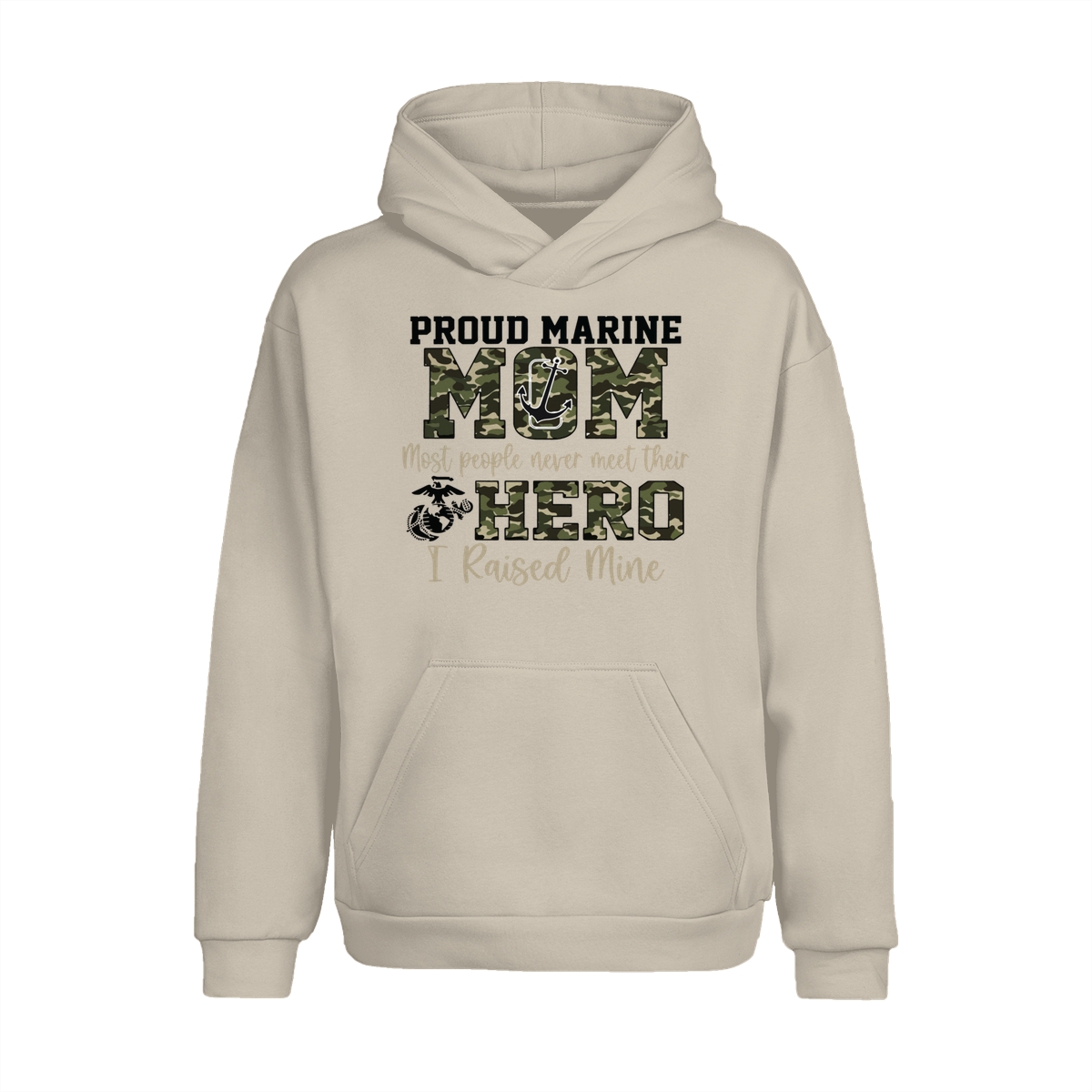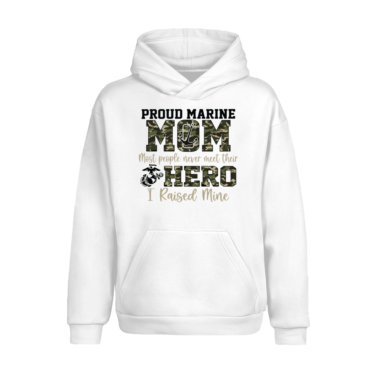 Proud Marine Mom Sweatshirt – Military Camo Letters And Patriotic Quote Design, Perfect Gift For Mothers Of Marines, Military Family Apparel, Hero Mom Pride Outfit, Veteran Support Tee Printed