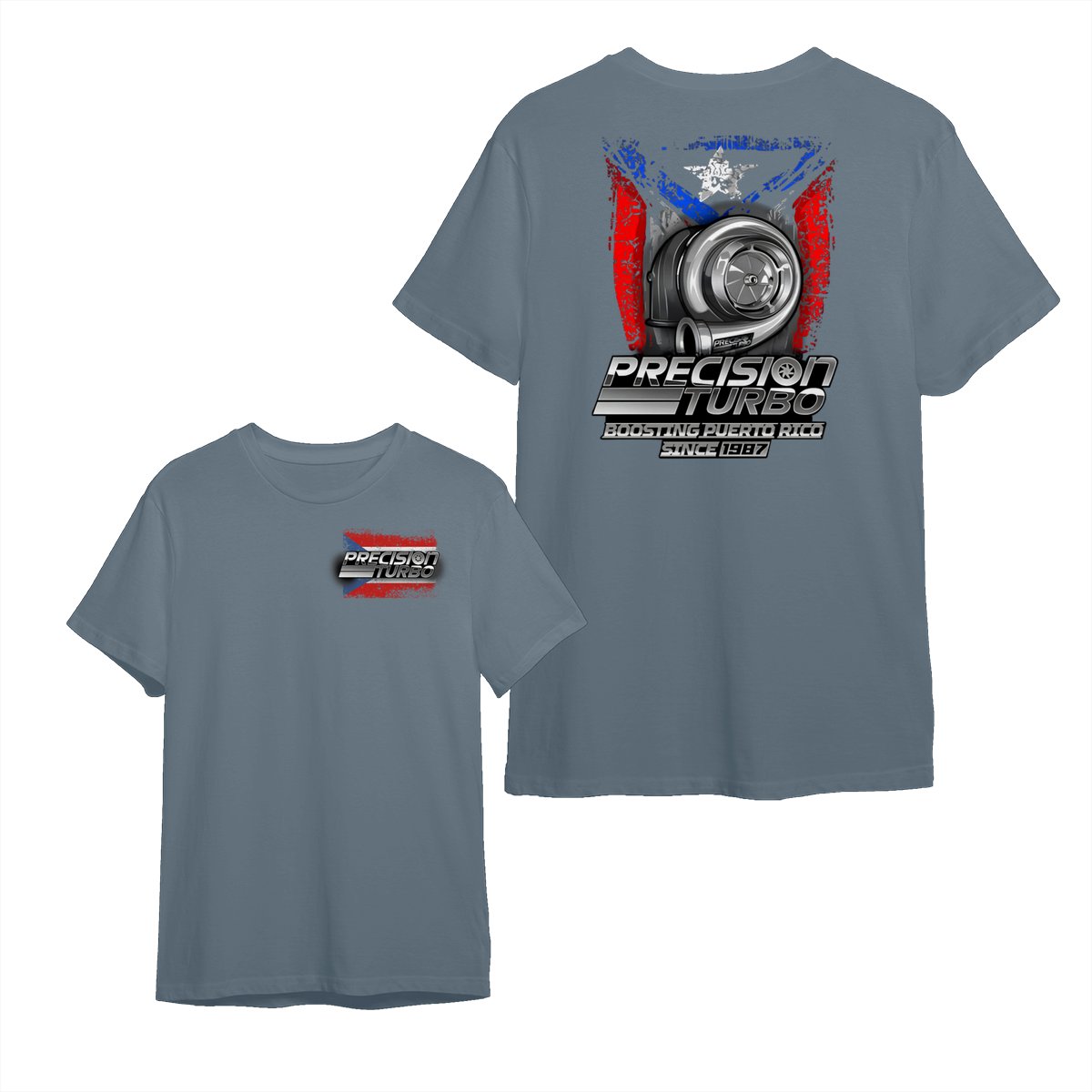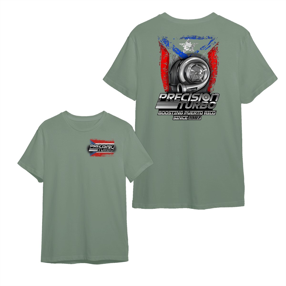 Puerto Rico Turbo Power TShirt – Grunge Flag Performance Tee for Car Guys, Boost Graphic TShirt for Street Racers, Racing Culture Apparel, Mechanic Gift Idea.