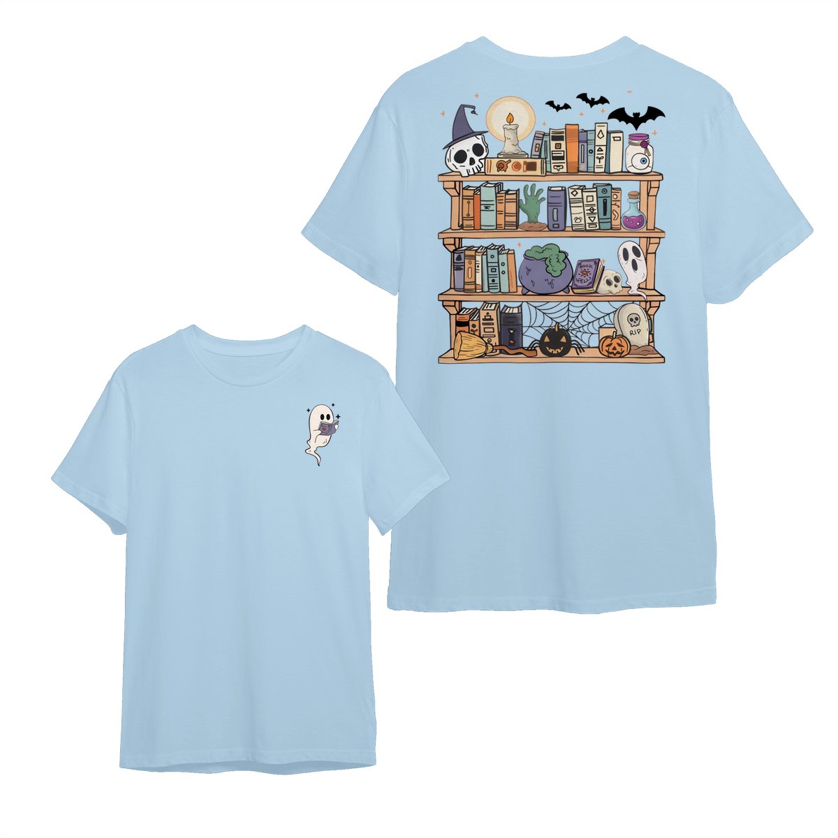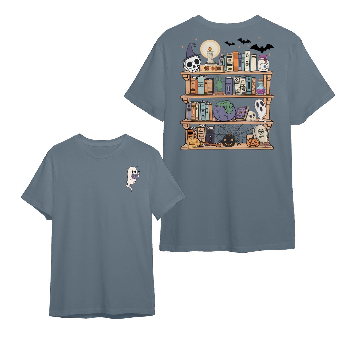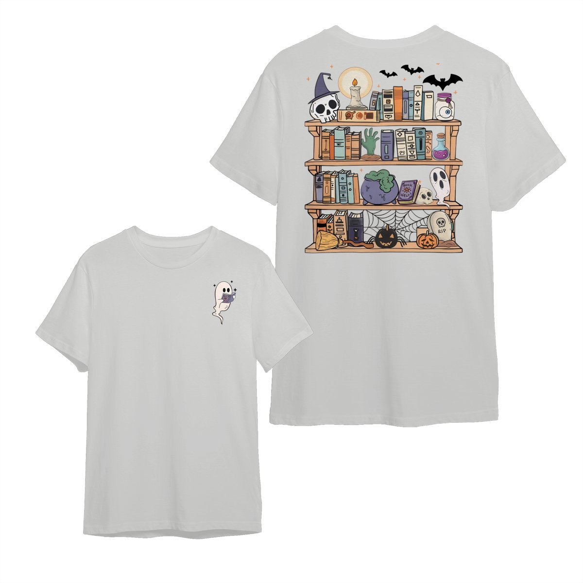 Reading Book Ghost T-Shirt, Halloween Teacher Shirt, Book Lover Halloween Shirt, Retro Halloween Shirt, Ghost Halloween Tee Streetwear Crewneck Menswear Top, Print Tee