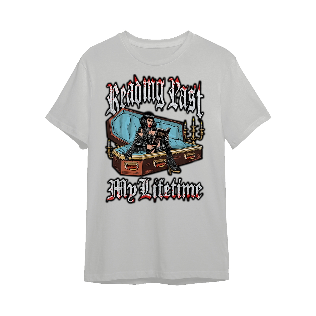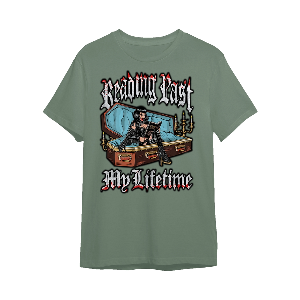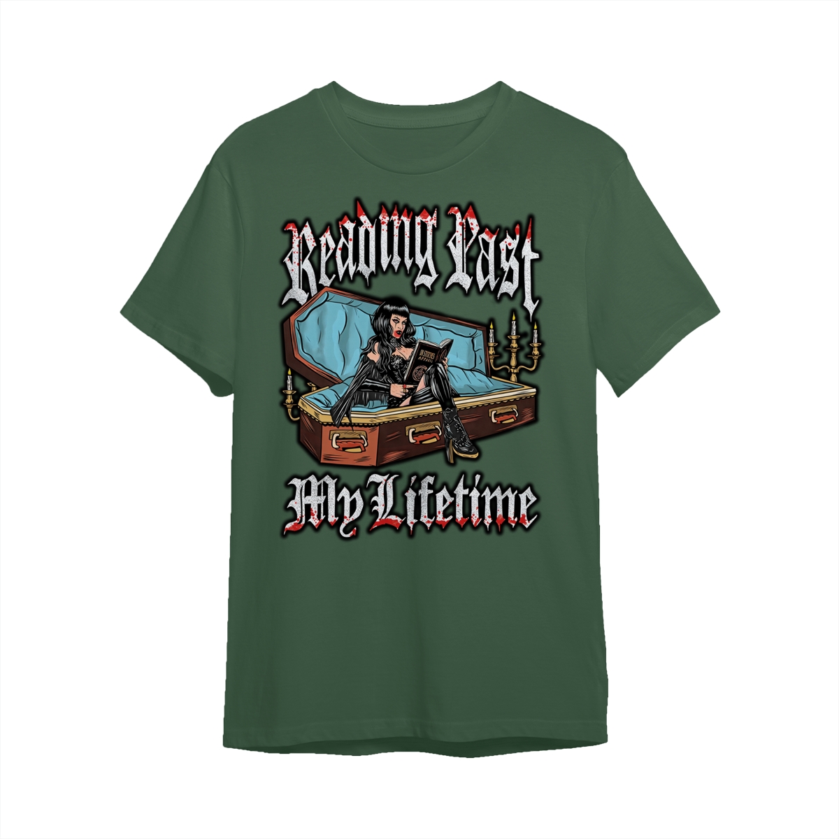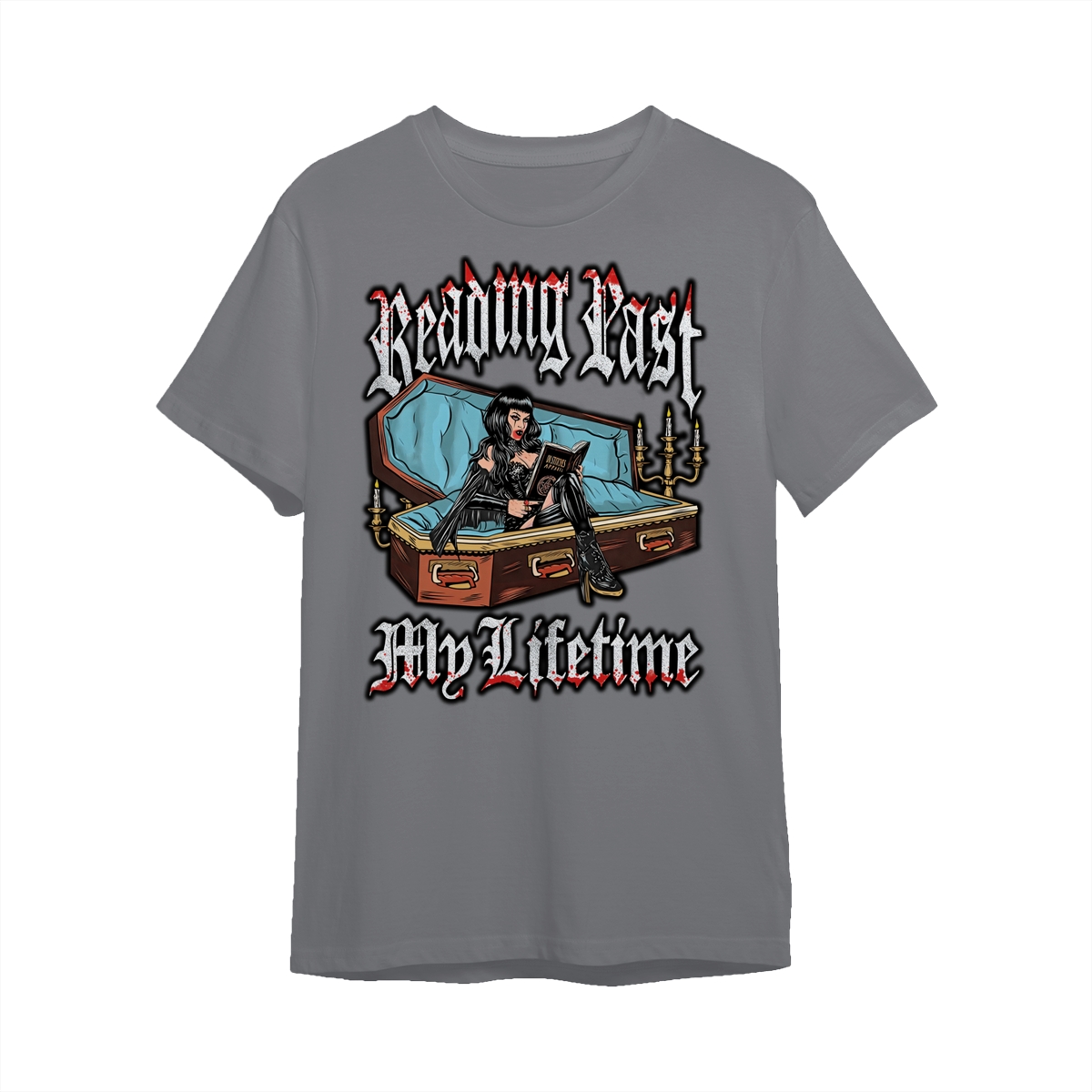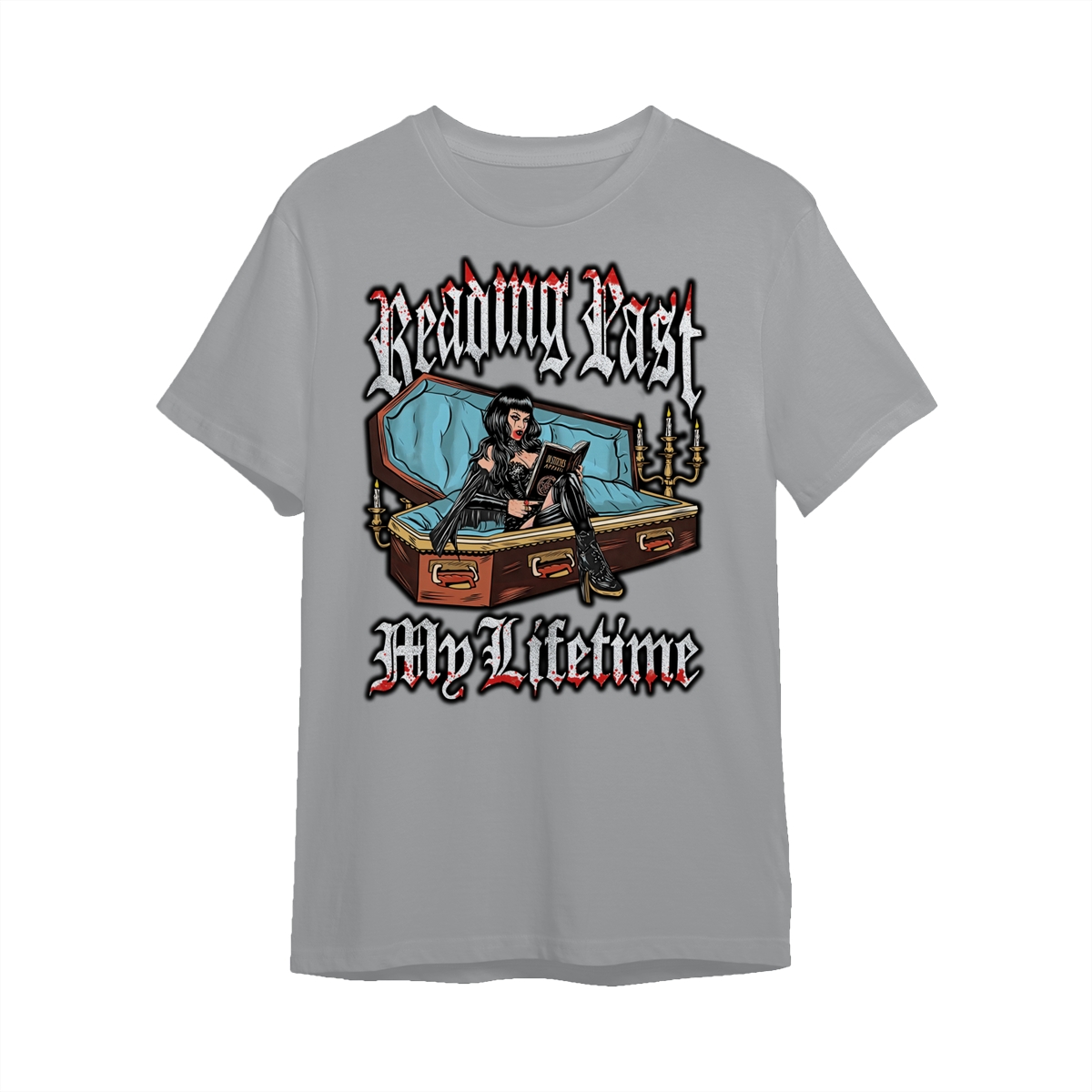 READING PAST MY LIFETIME Gothic Vampire Graphic Tee – Book Lover Booktok Alternative Unisex Gift T-Shirt