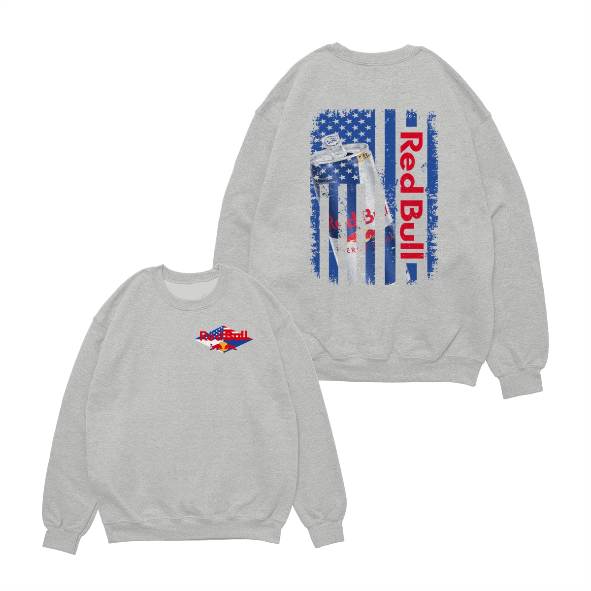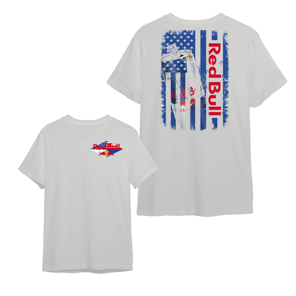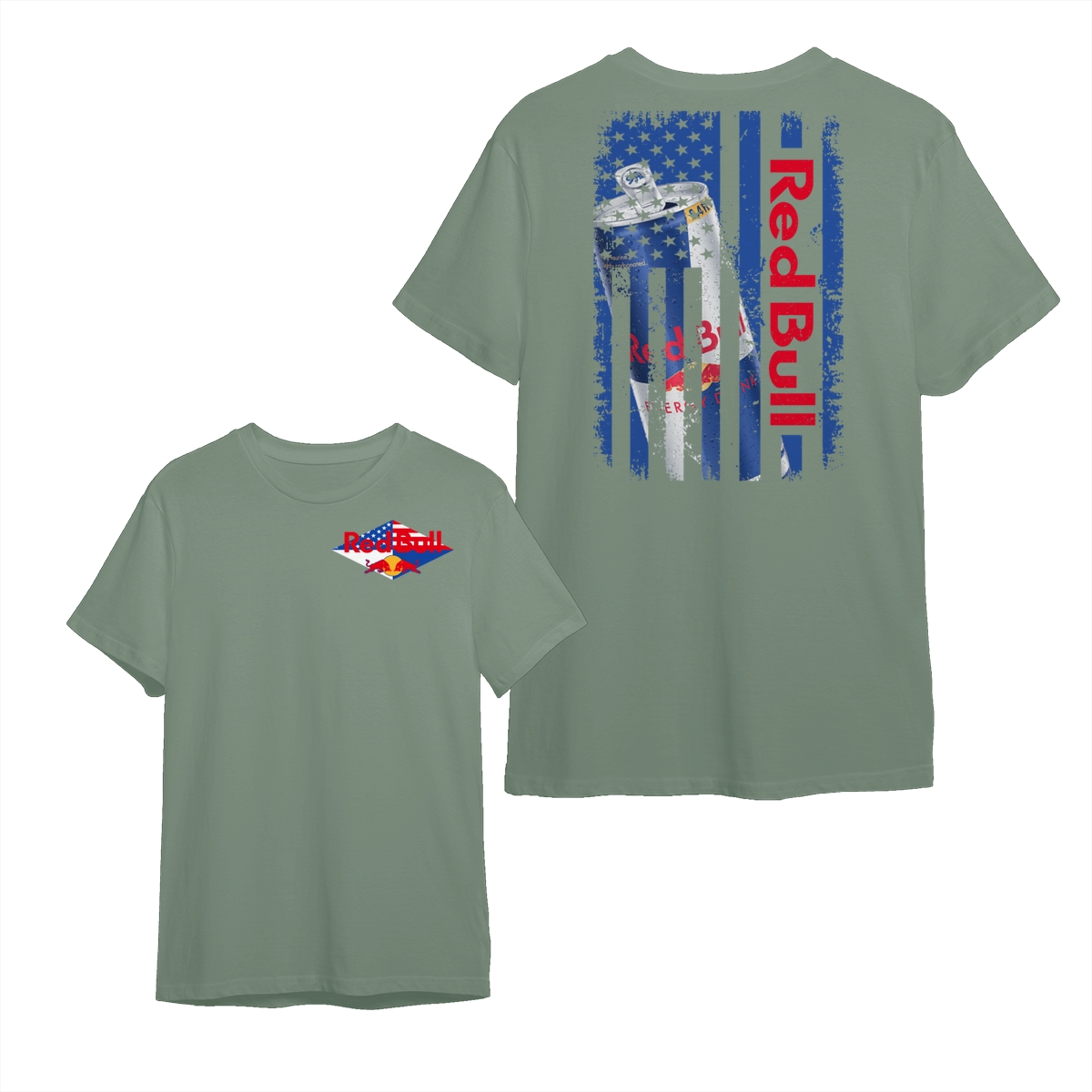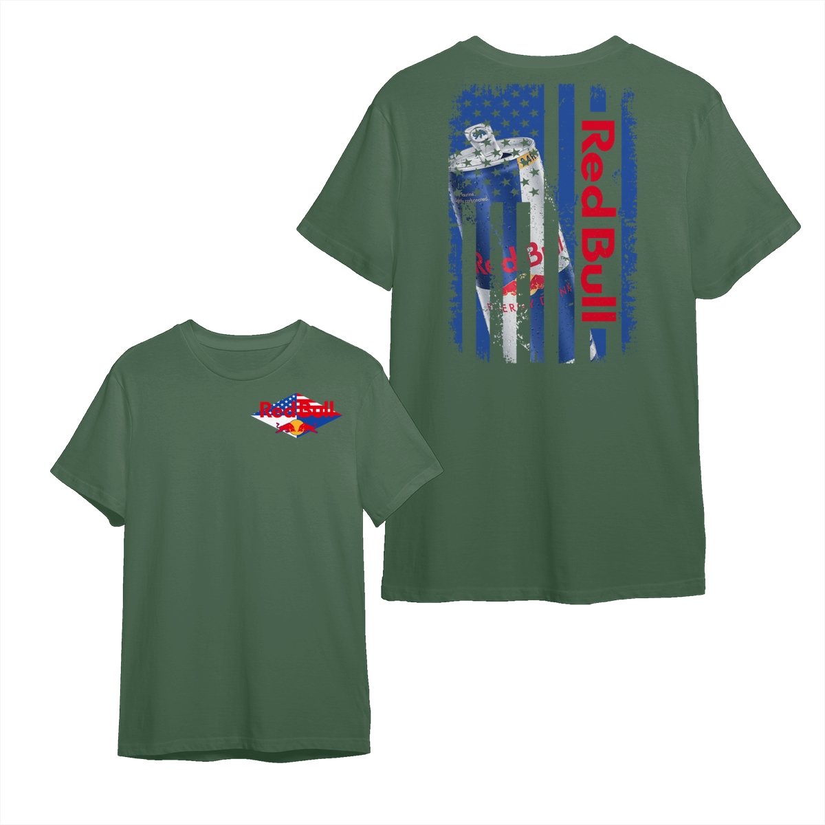 Red Bull US Flag T-Shirt For Unisex, Soda Summer Drinking 2 Sided Graphic Tees, USA Red Bull Sweatshirt,