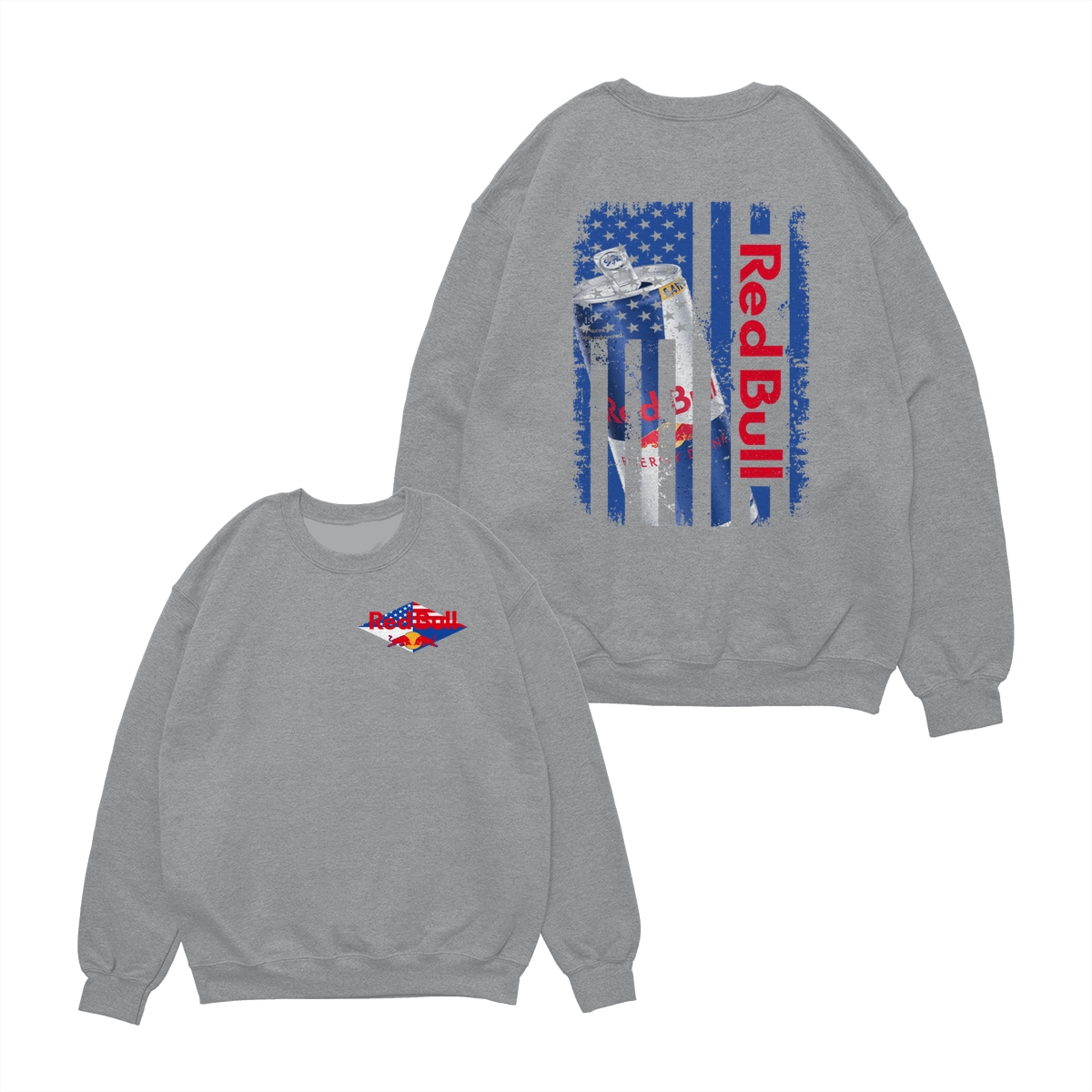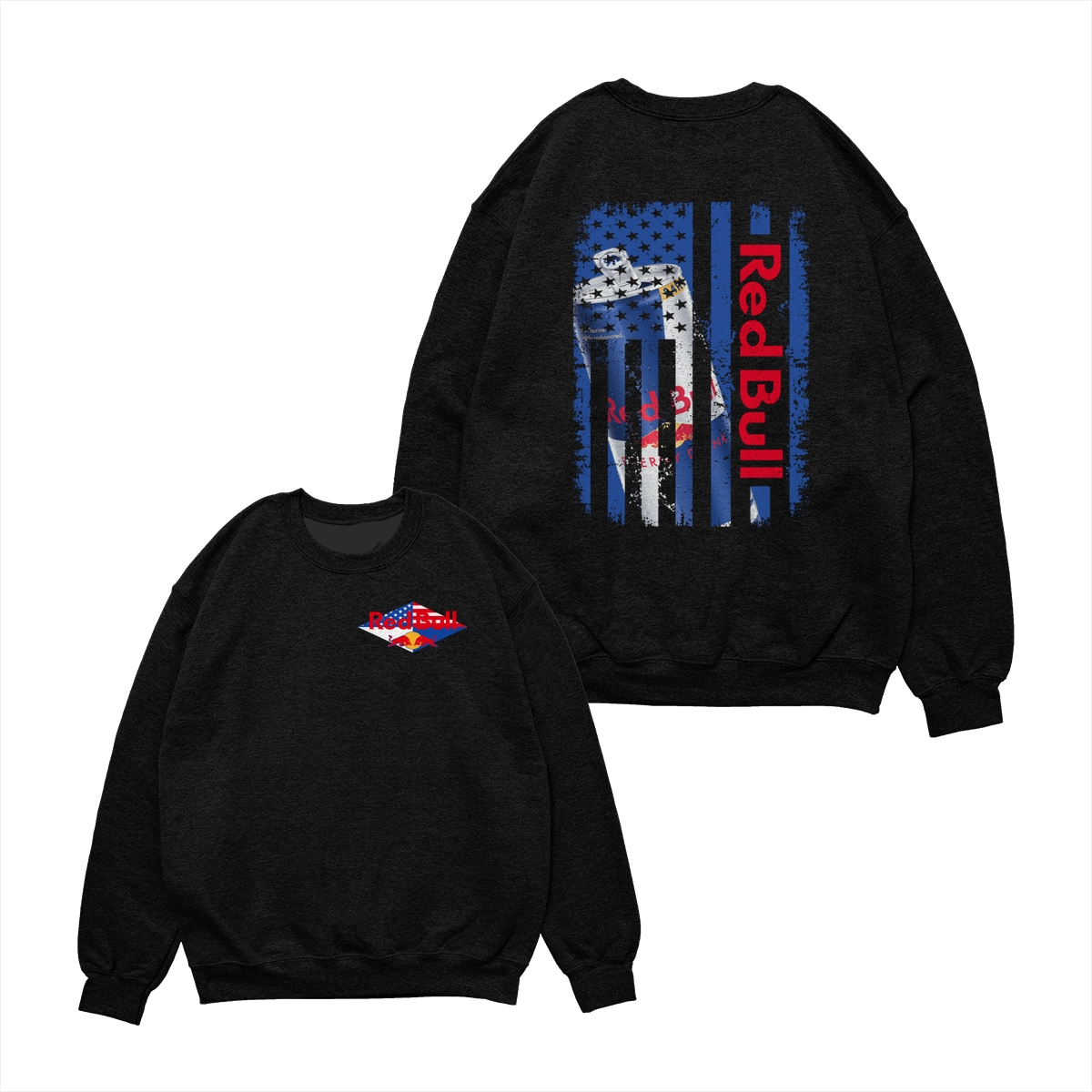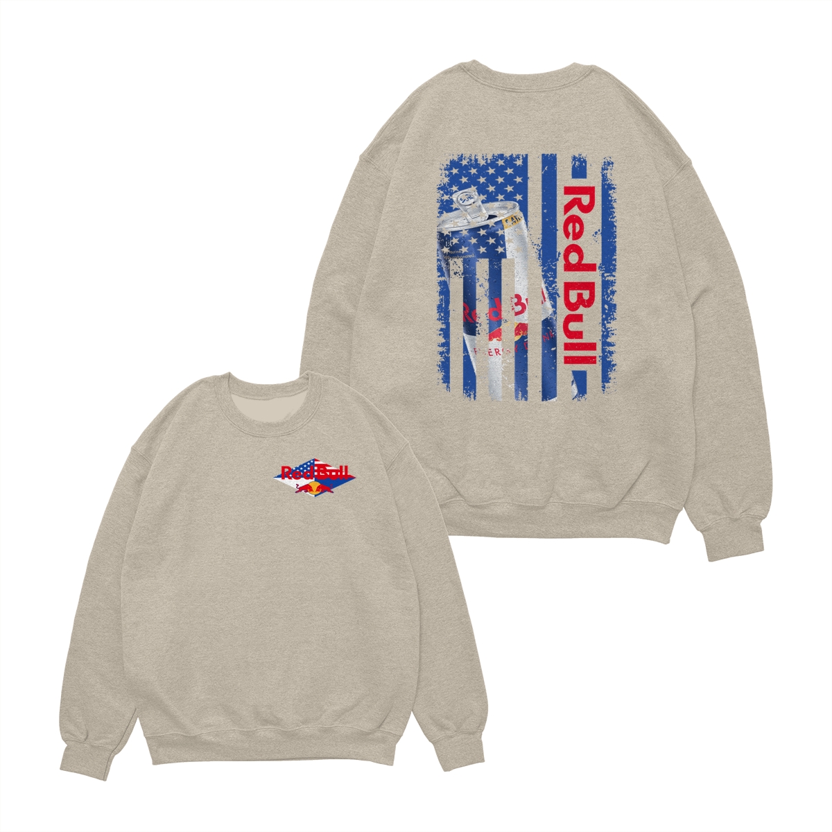 Red Bull US Flag T-Shirt For Unisex, Soda Summer Drinking 2 Sided Graphic Tees, USA Red Bull Sweatshirt,