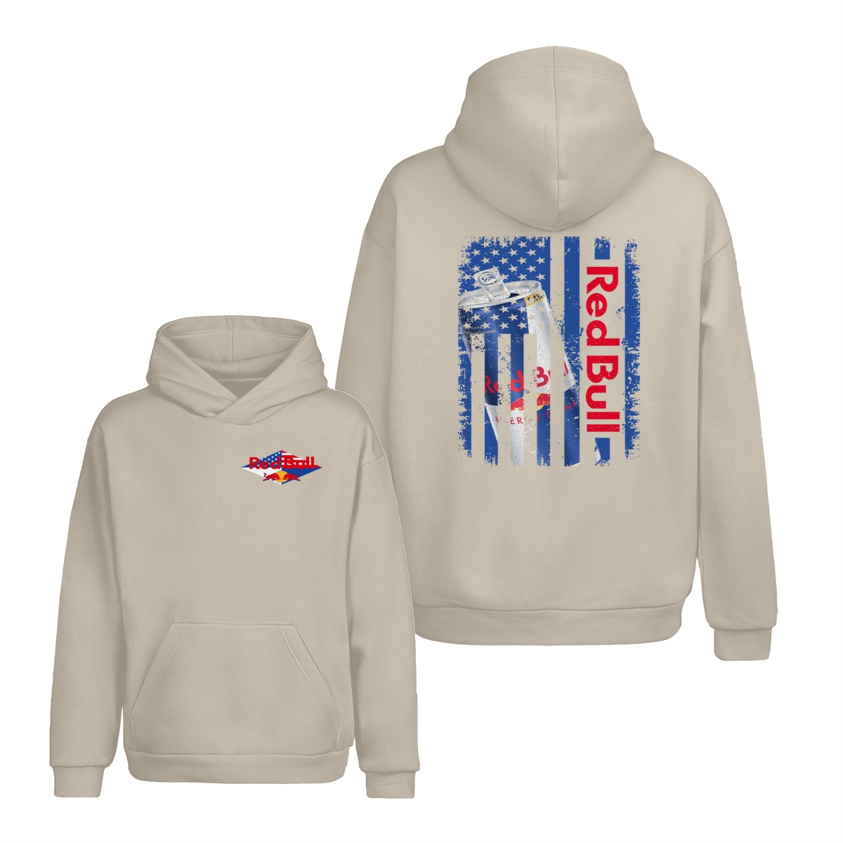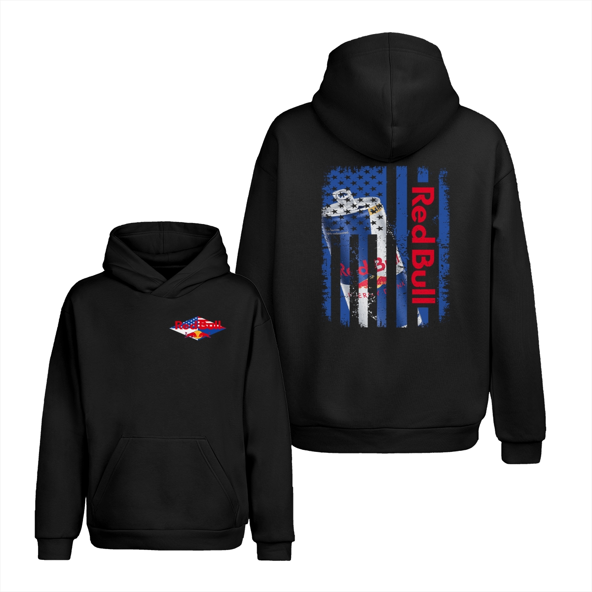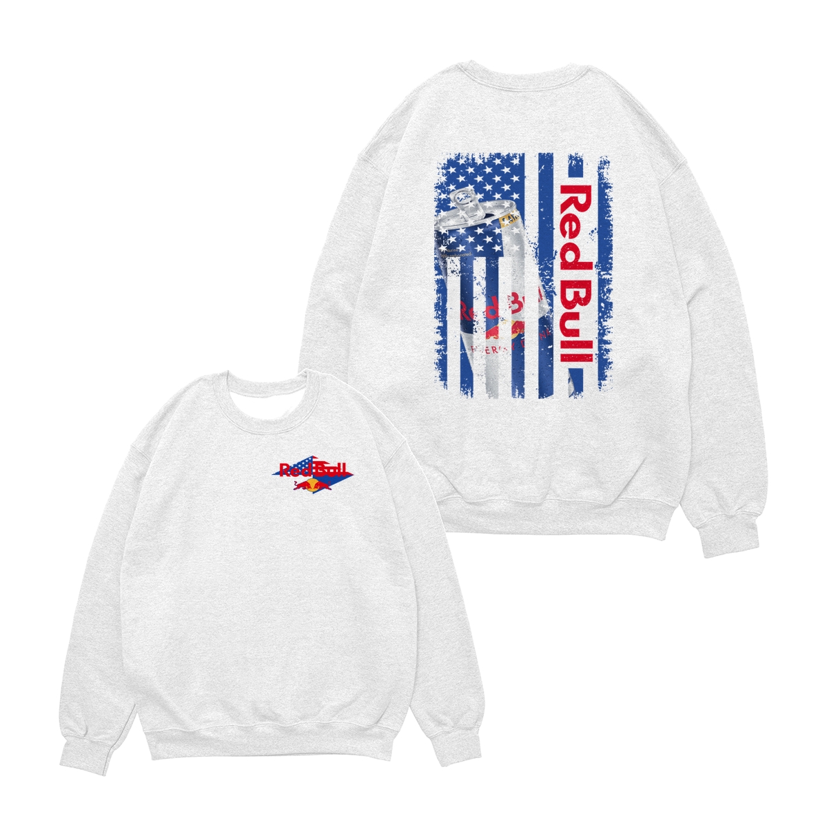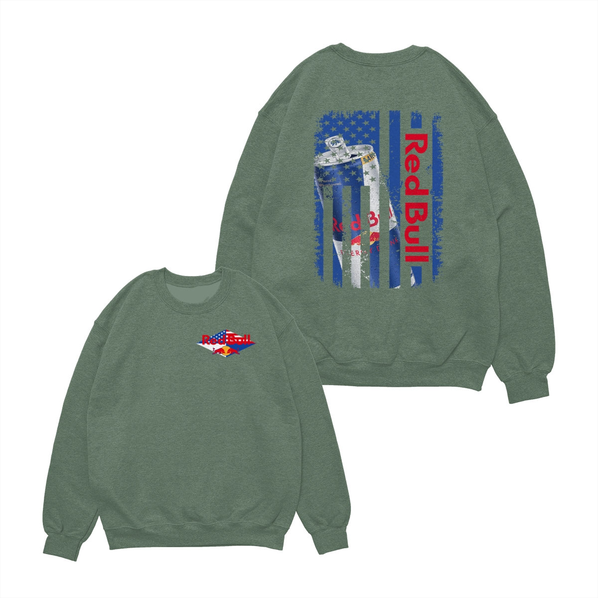 Red Bull US Flag T-Shirt For Unisex, Soda Summer Drinking 2 Sided Graphic Tees, USA Red Bull Sweatshirt,