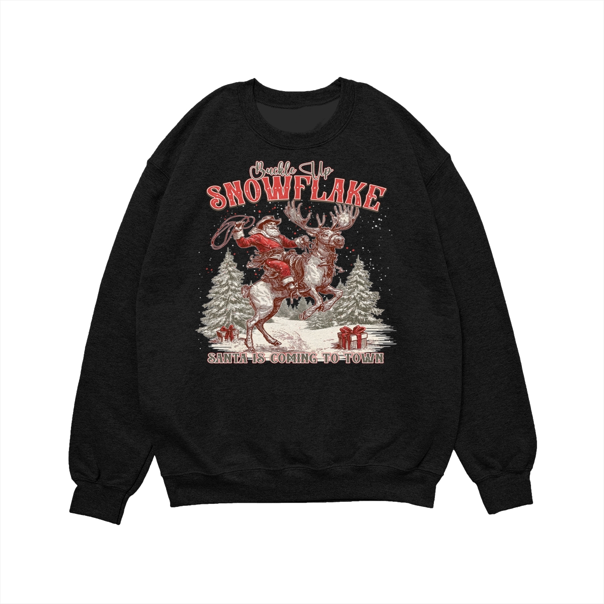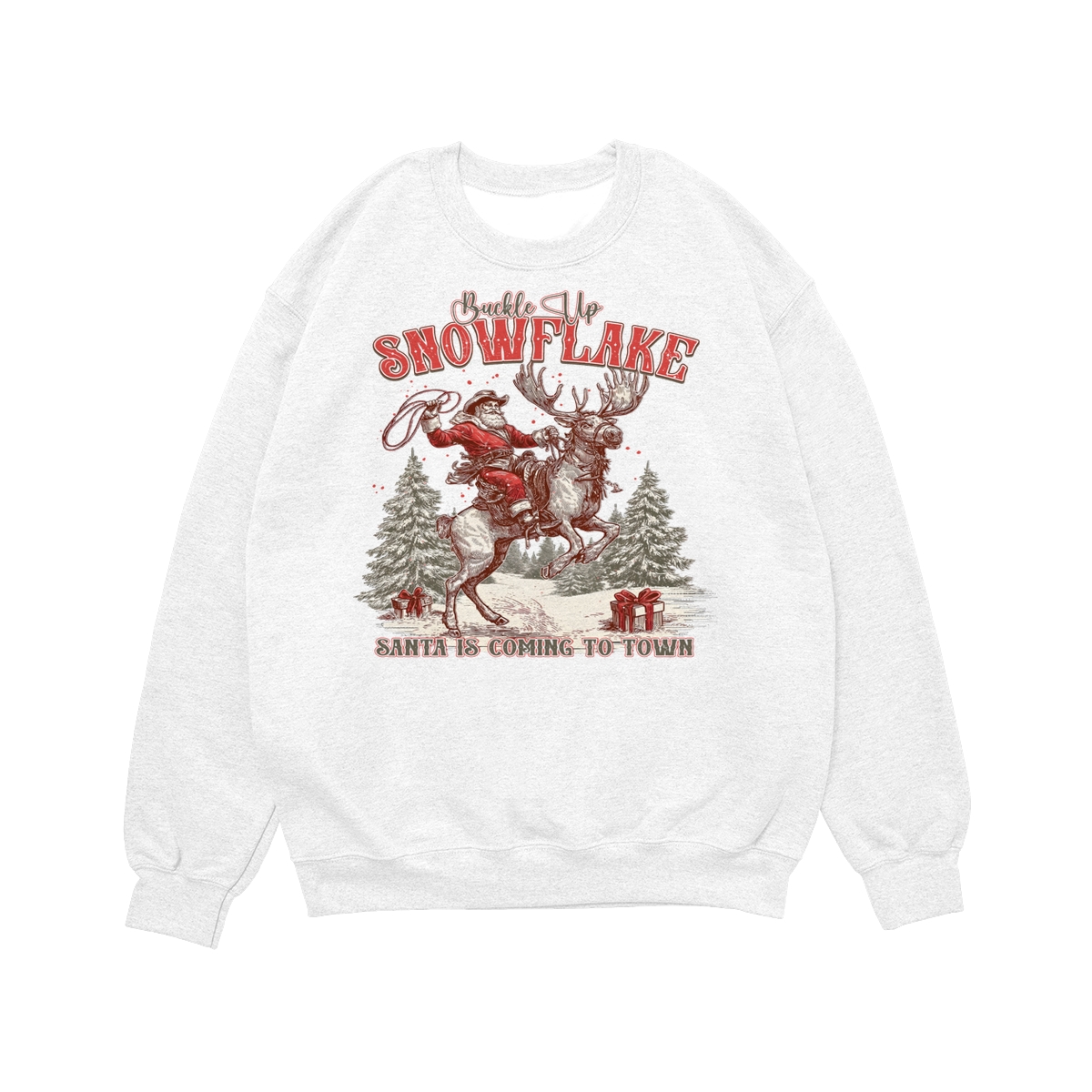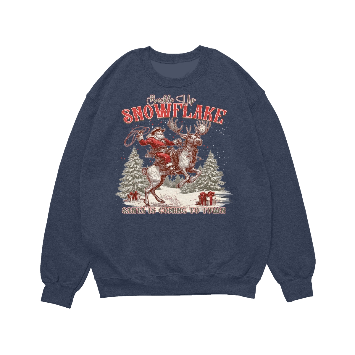 Retro Buckle Up Snowflake Sweatshirt, Trendy Christmas Cowboy Santa Shirt, Rodeo Christmas Shirt, Western Holiday Season .