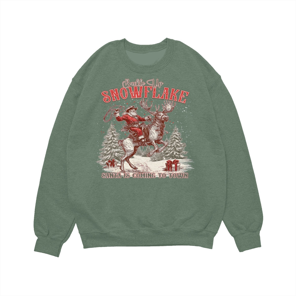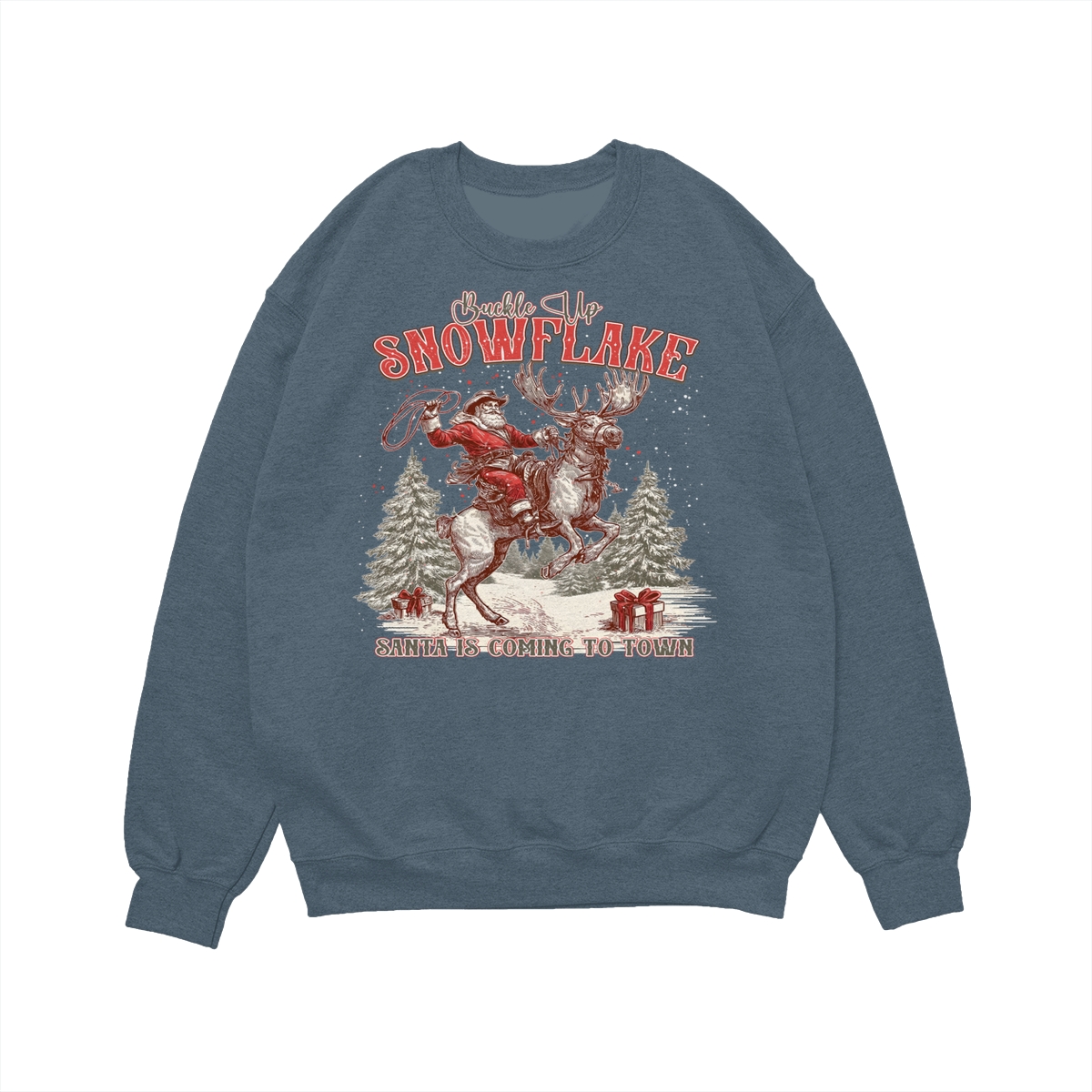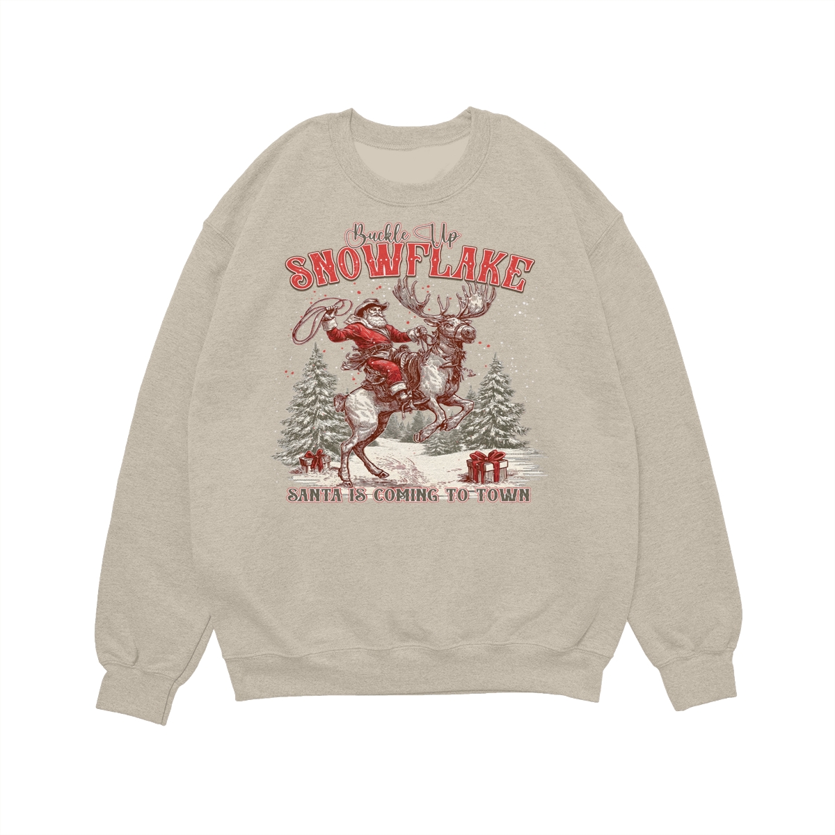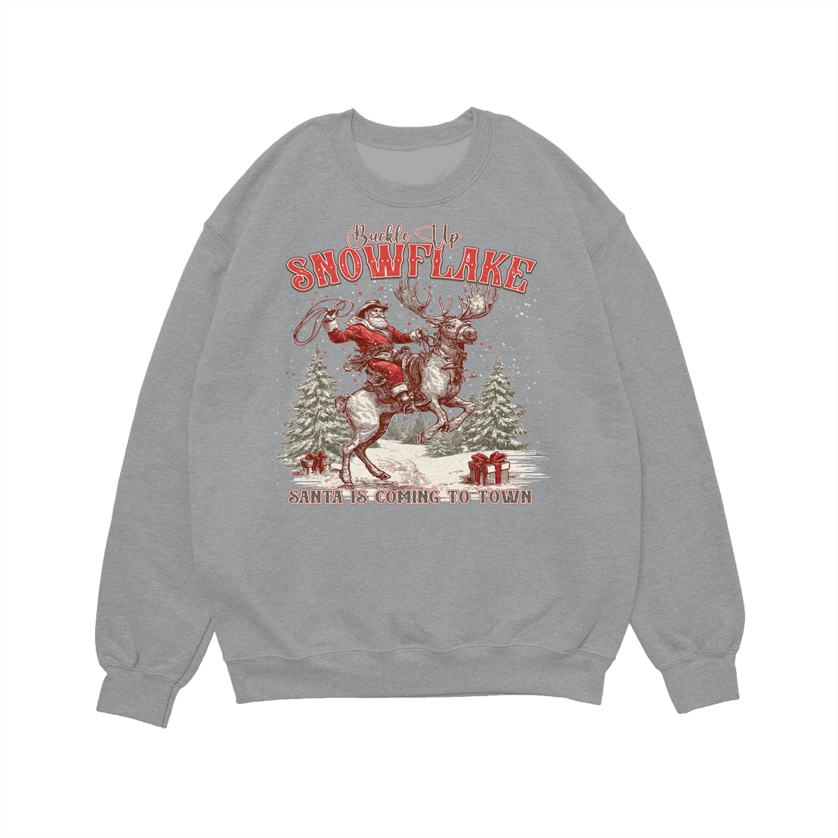 Retro Buckle Up Snowflake Sweatshirt, Trendy Christmas Cowboy Santa Shirt, Rodeo Christmas Shirt, Western Holiday Season .
