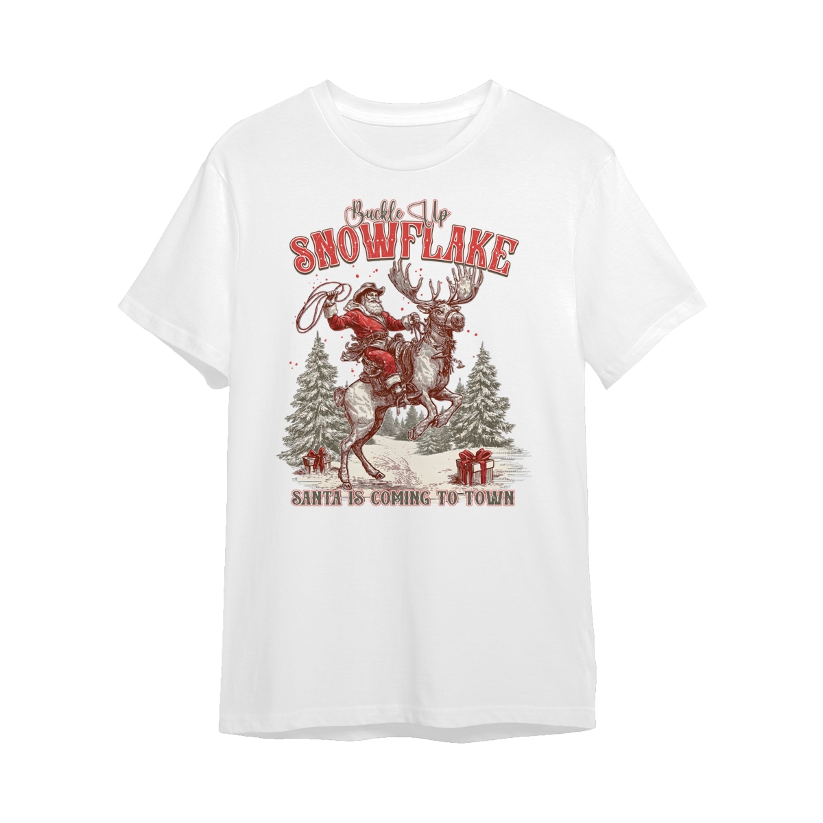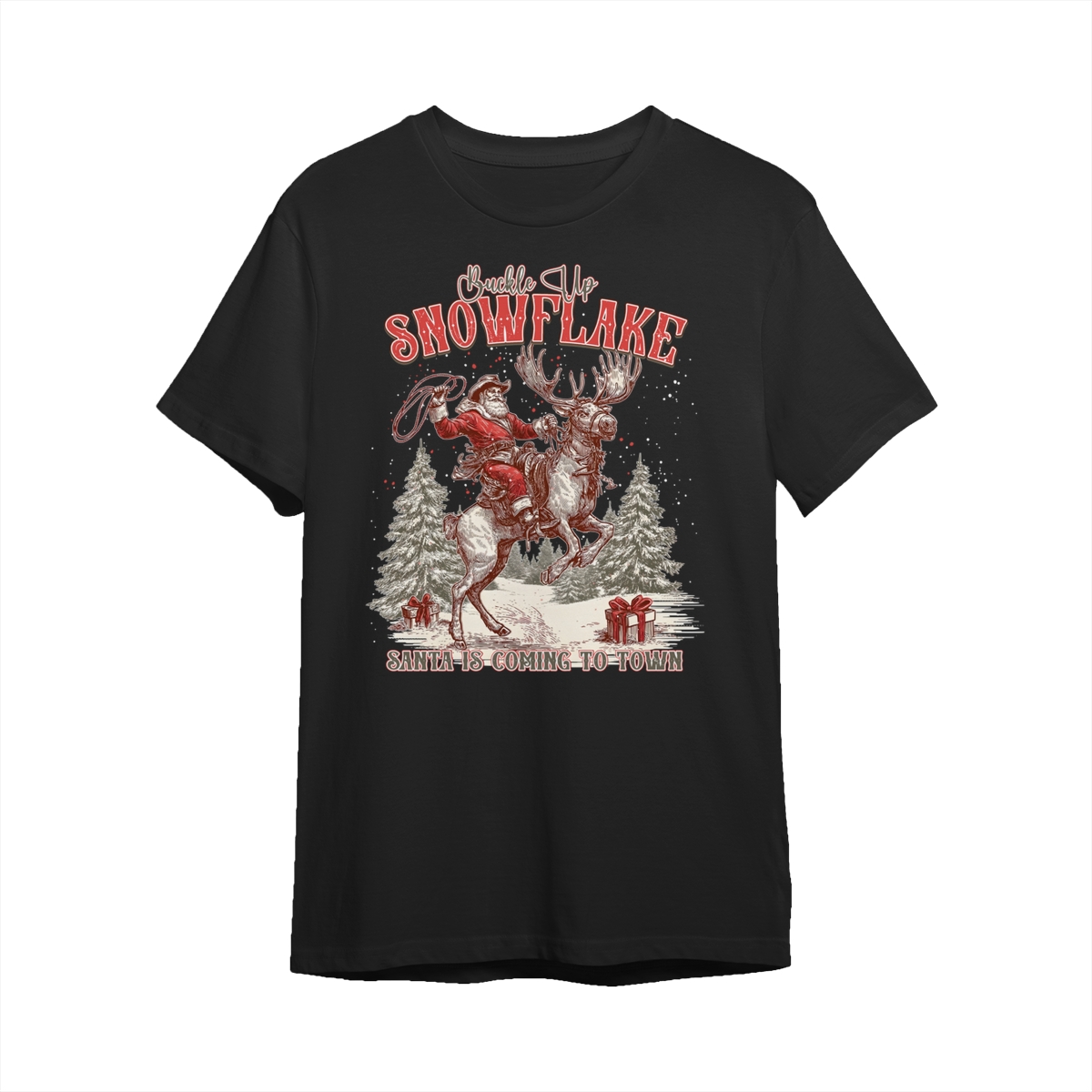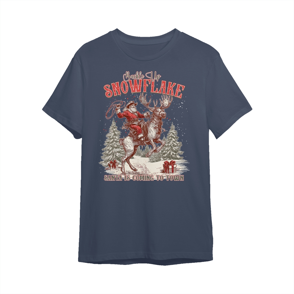 Retro Buckle Up Snowflake Sweatshirt, Trendy Christmas Cowboy Santa Shirt, Rodeo Christmas Shirt, Western Holiday Season .