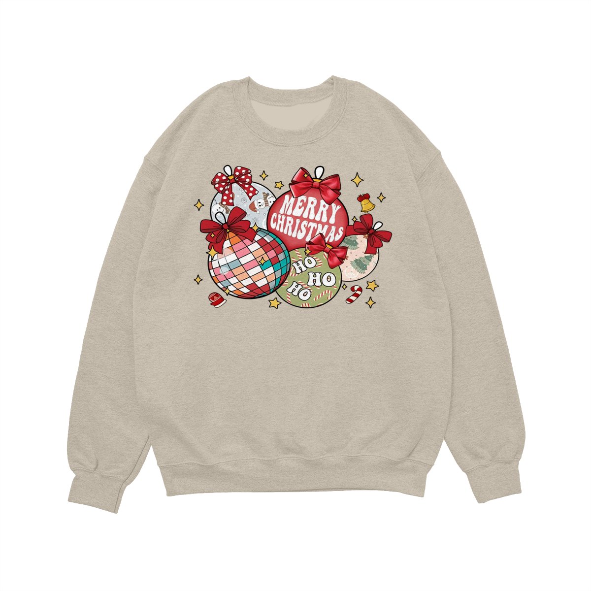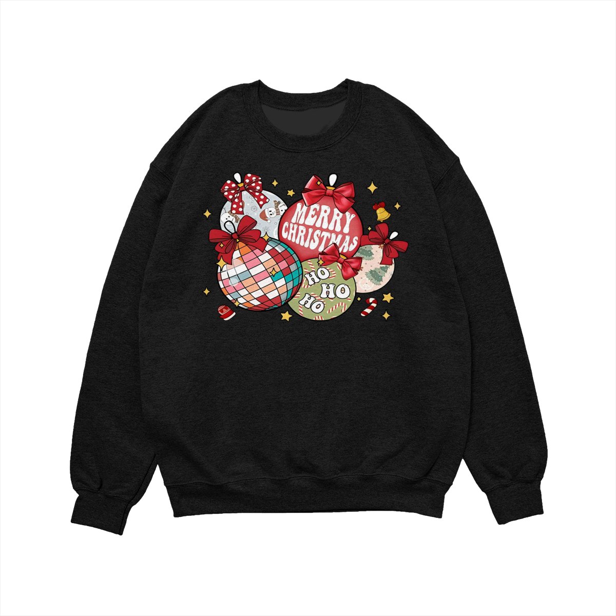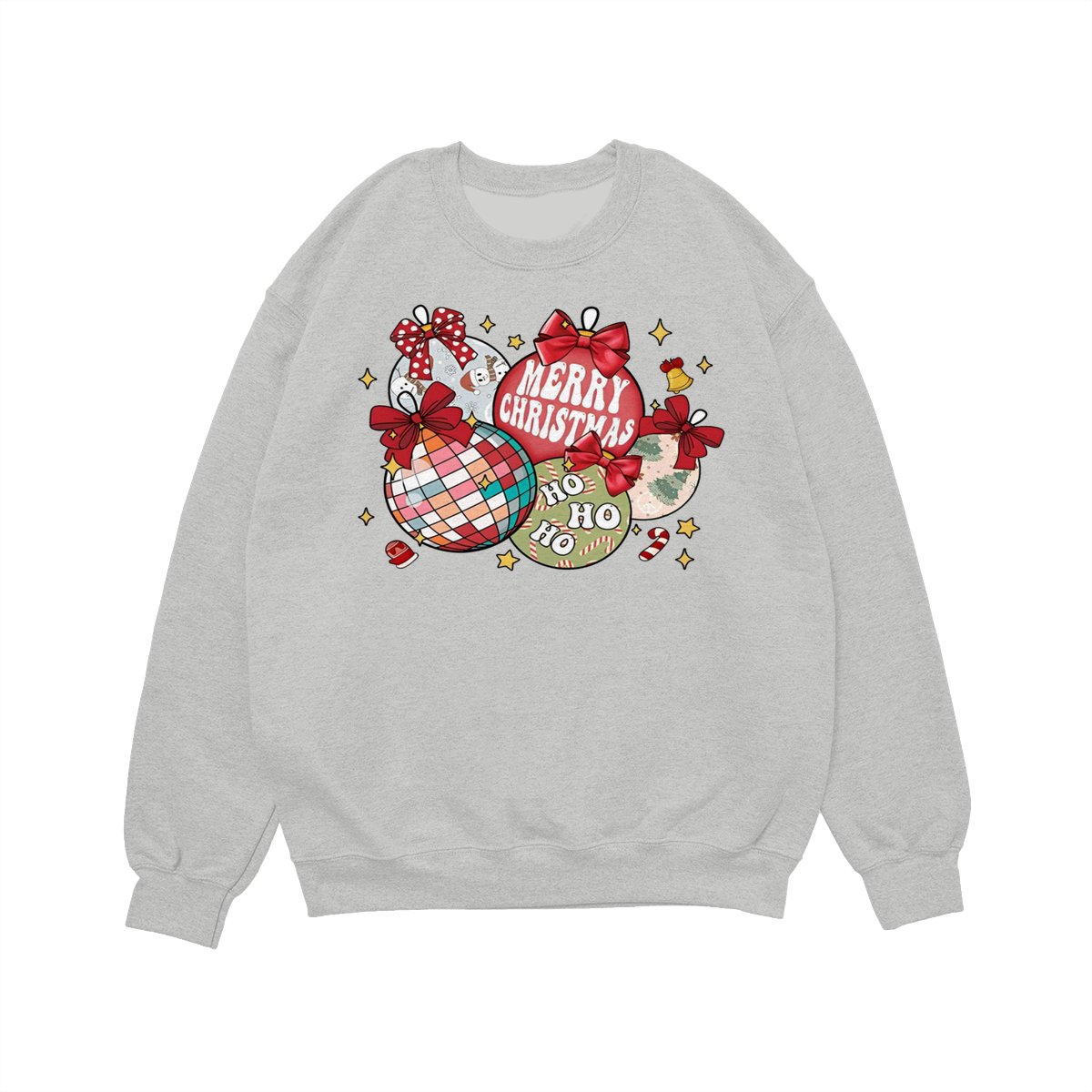 Retro Christmas Ornaments Sweatshirt/Hoodie/Tshirt, Christmas Coquette Bow, Retro Crewneck, Gift For Lovers, Cotton, Trendy Womenswear Top