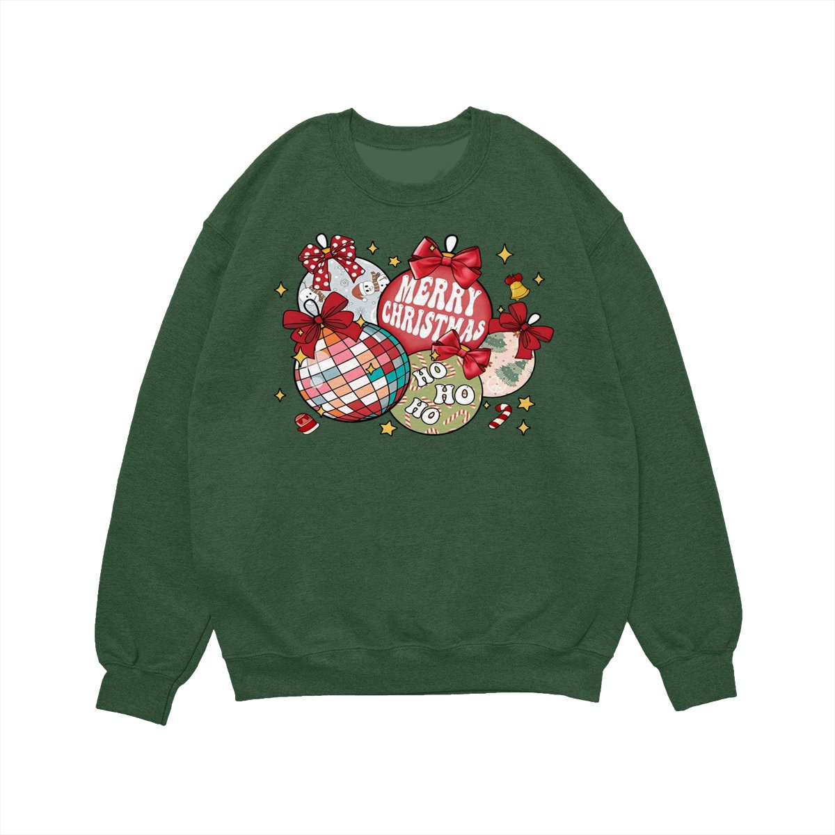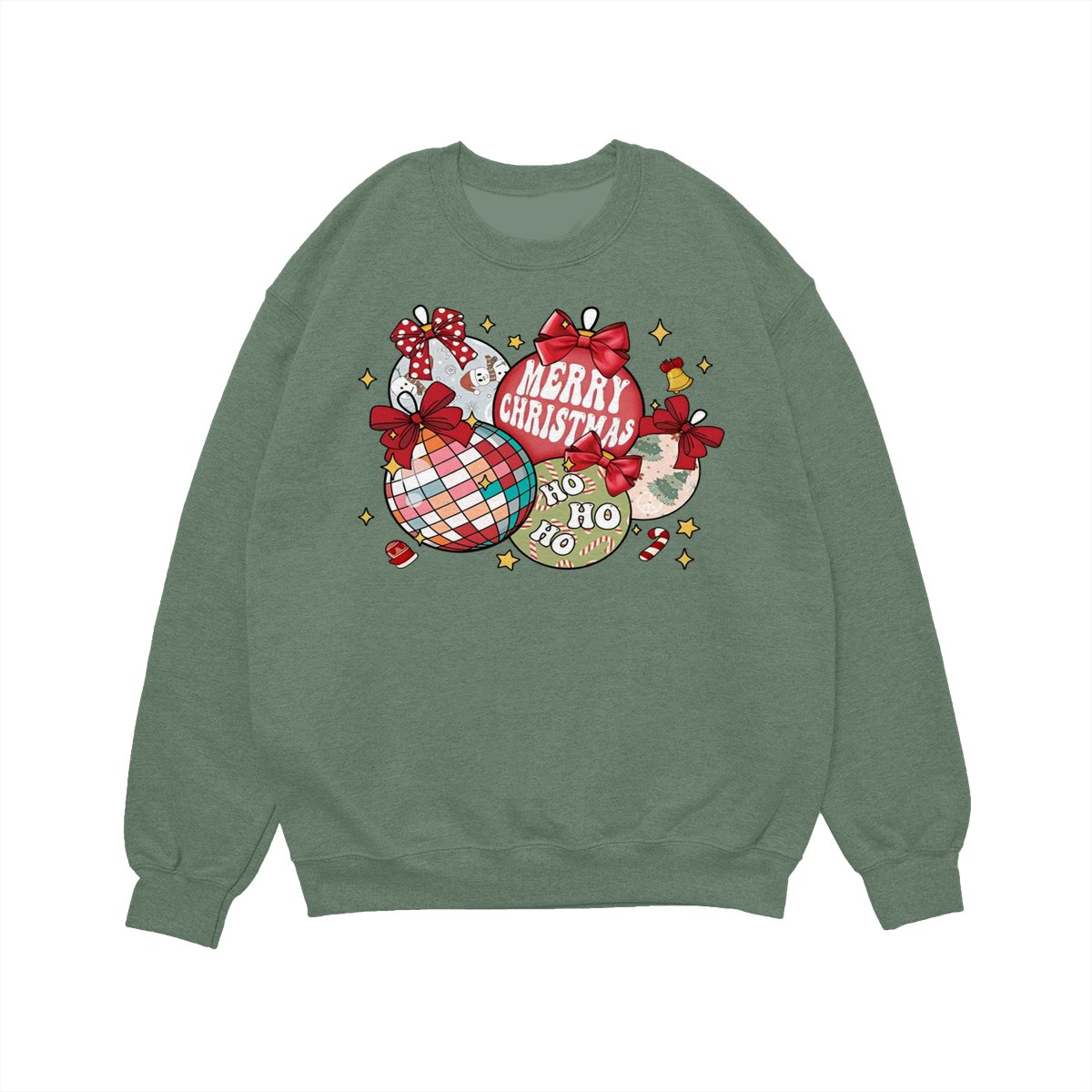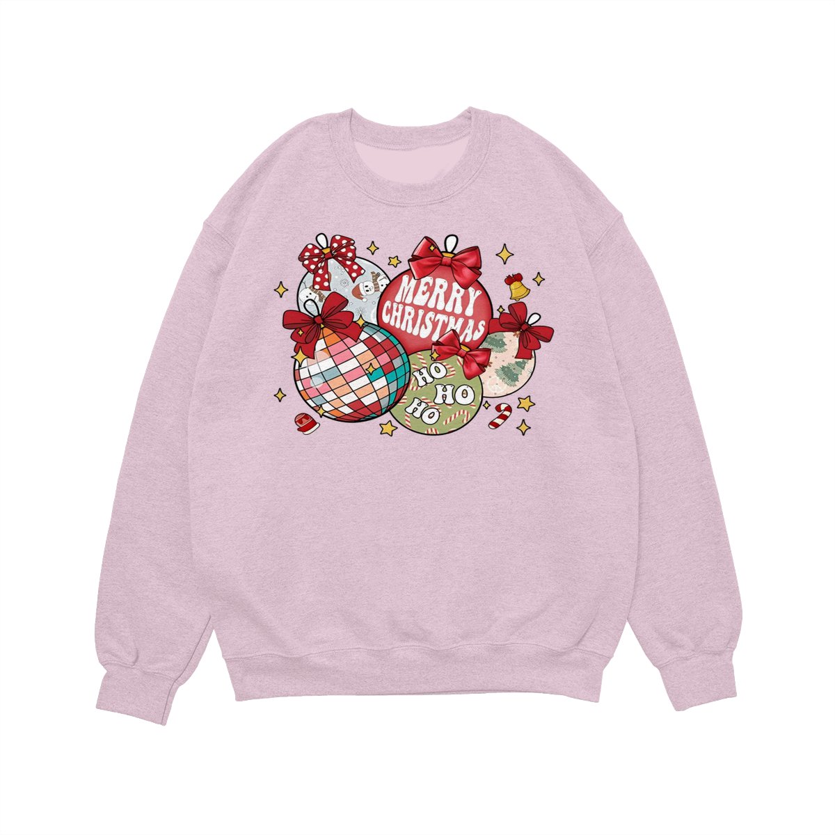 Retro Christmas Ornaments Sweatshirt/Hoodie/Tshirt, Christmas Coquette Bow, Retro Crewneck, Gift For Lovers, Cotton, Trendy Womenswear Top