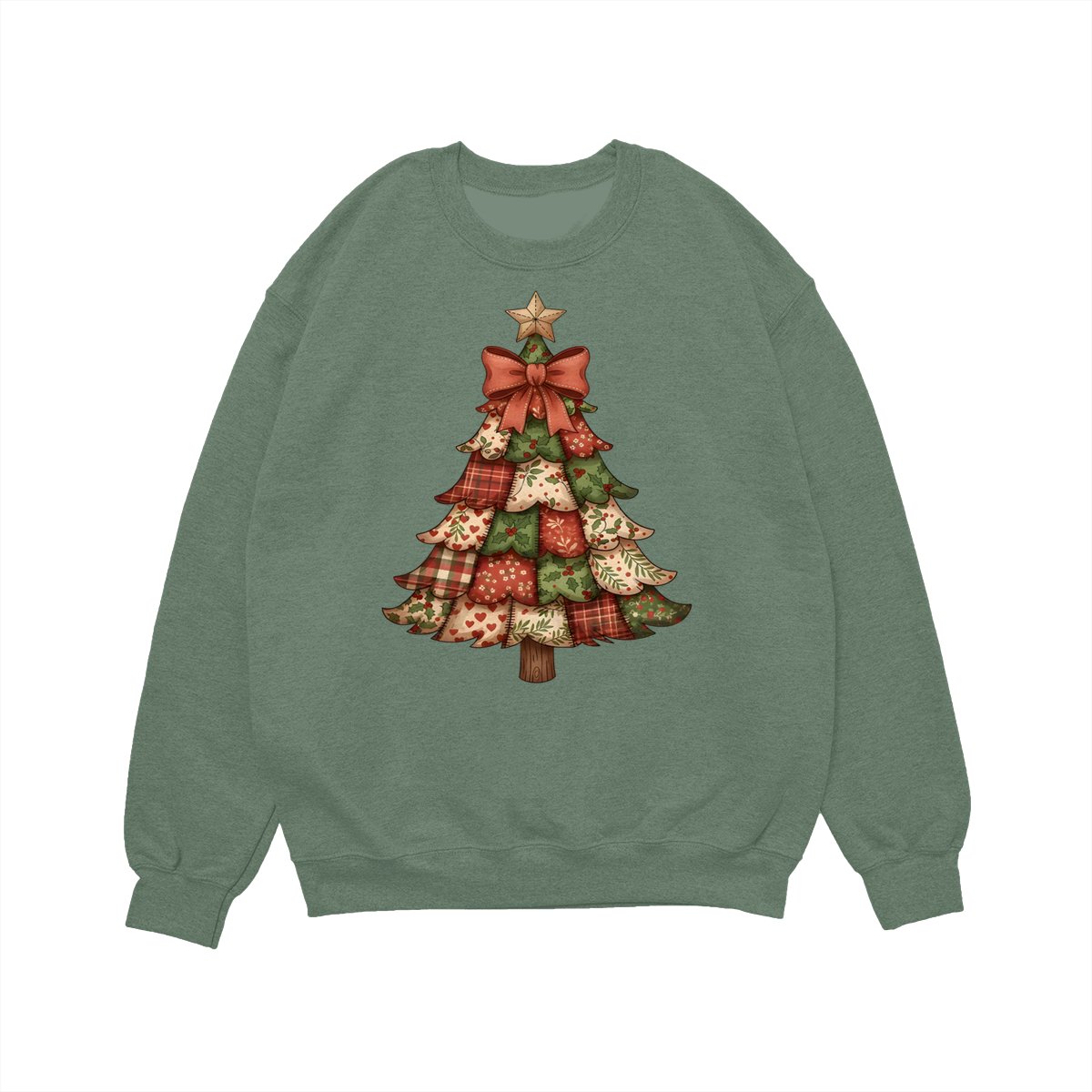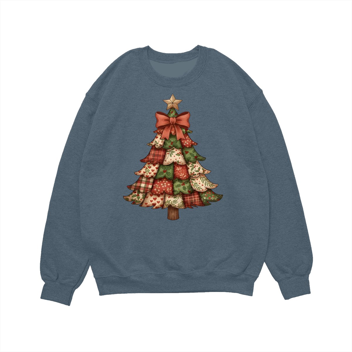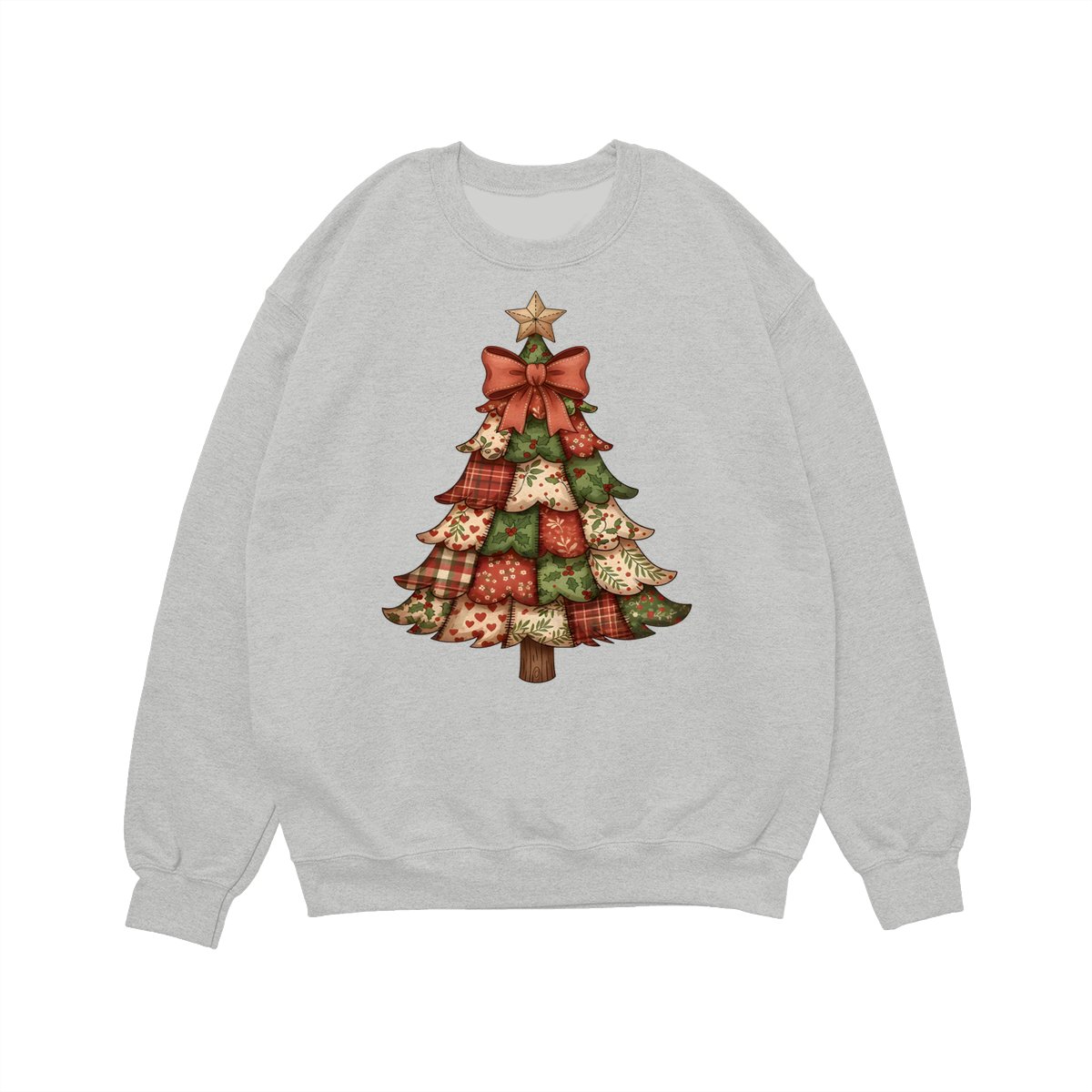 Retro Christmas Tree Sweatshirt, Vintage Merry Christmas Bow Crewneck, Rustic Country Holiday Pullover, 100% Cotton, Made in USA