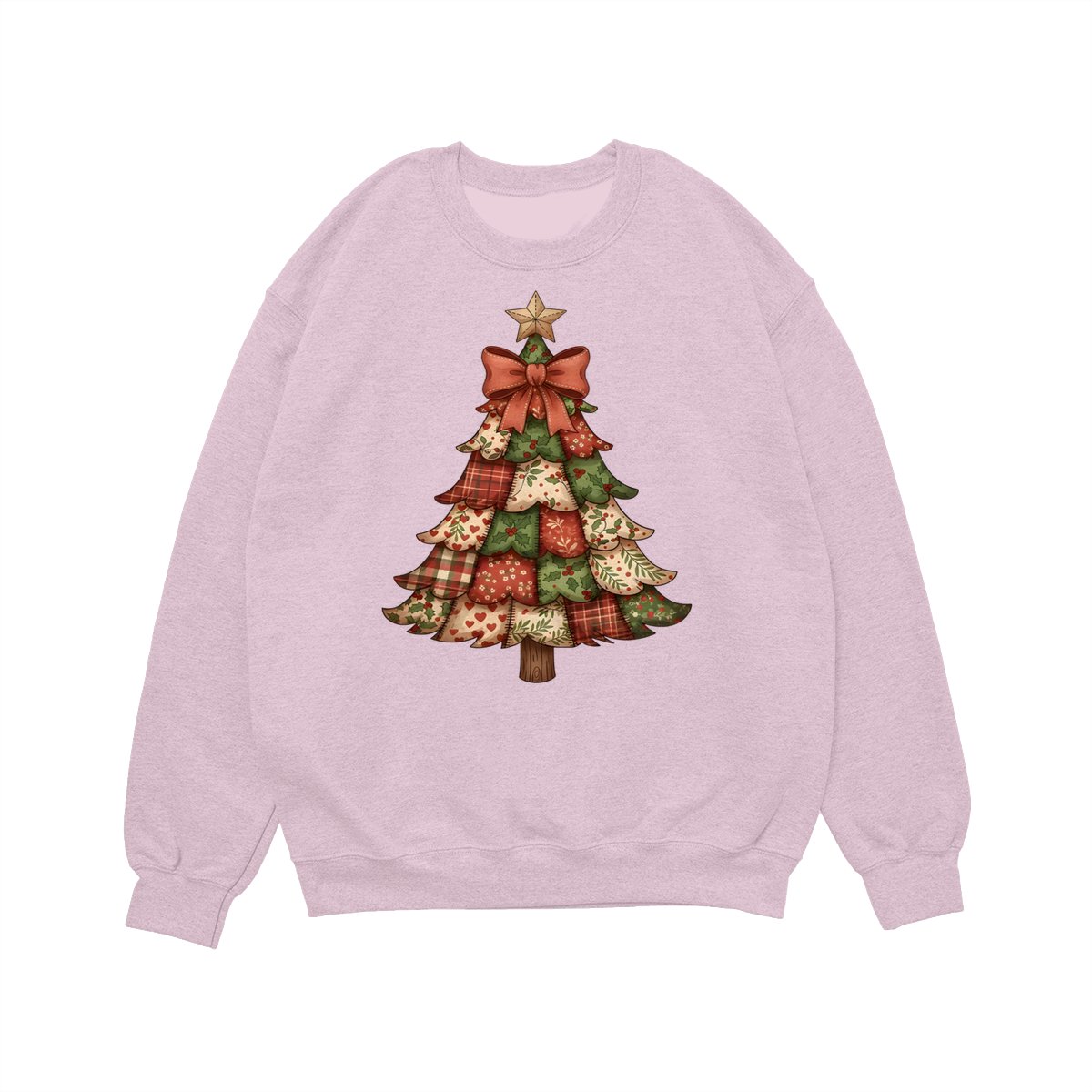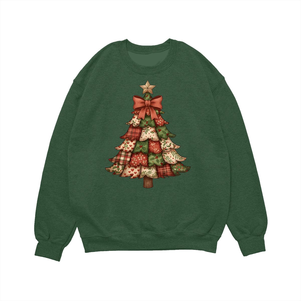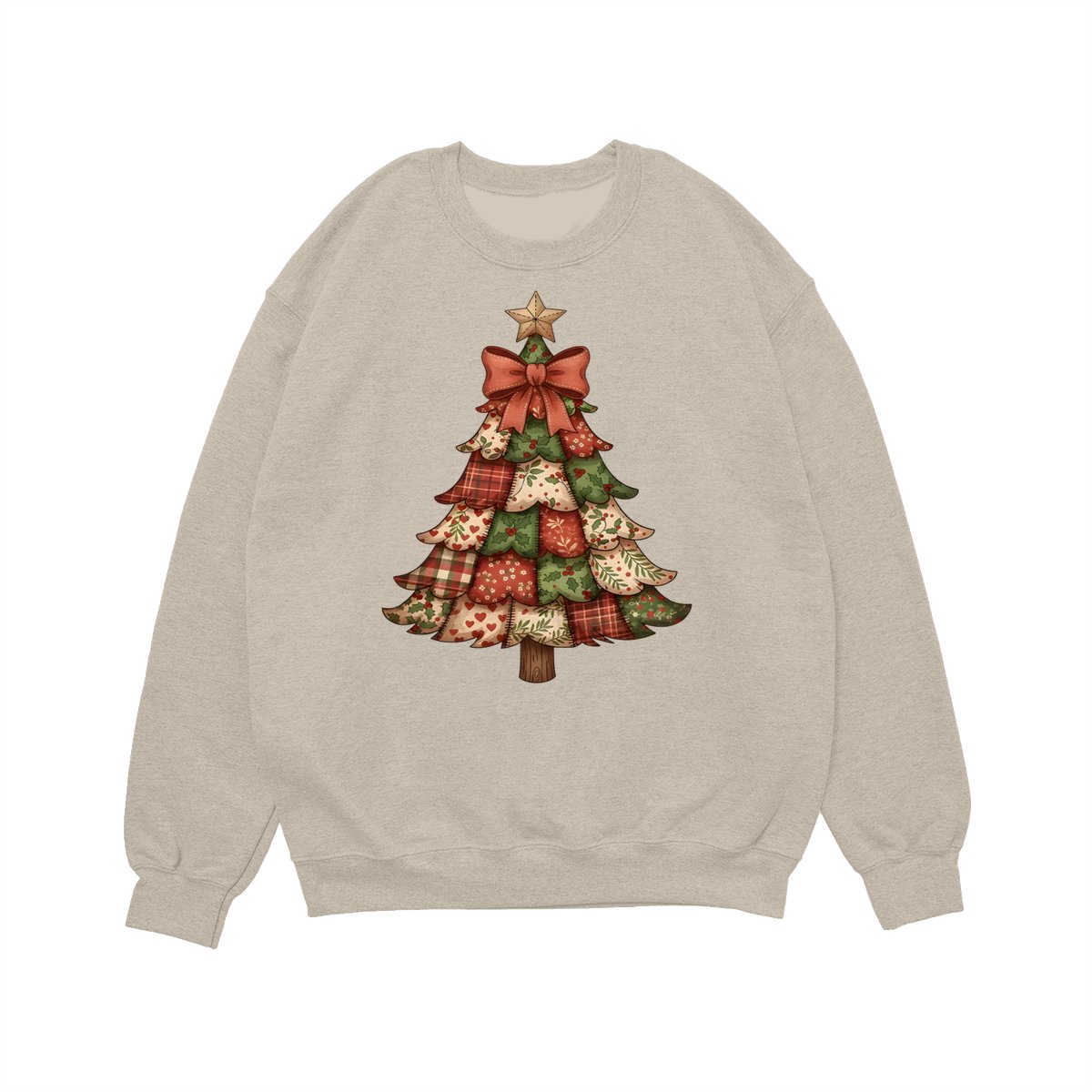 Retro Christmas Tree Sweatshirt, Vintage Merry Christmas Bow Crewneck, Rustic Country Holiday Pullover, 100% Cotton, Made in USA