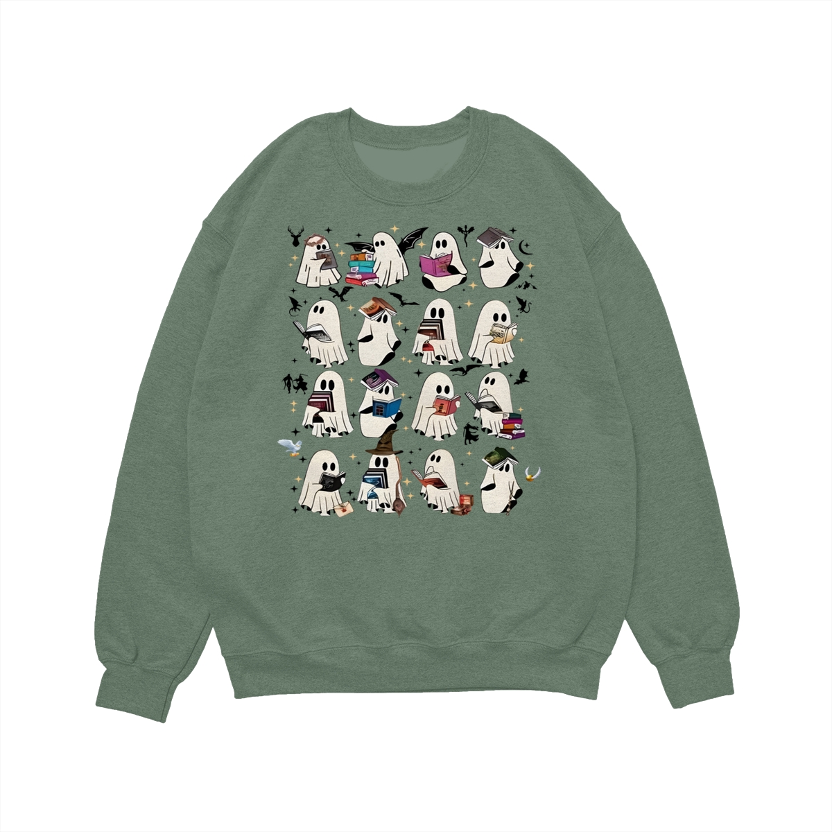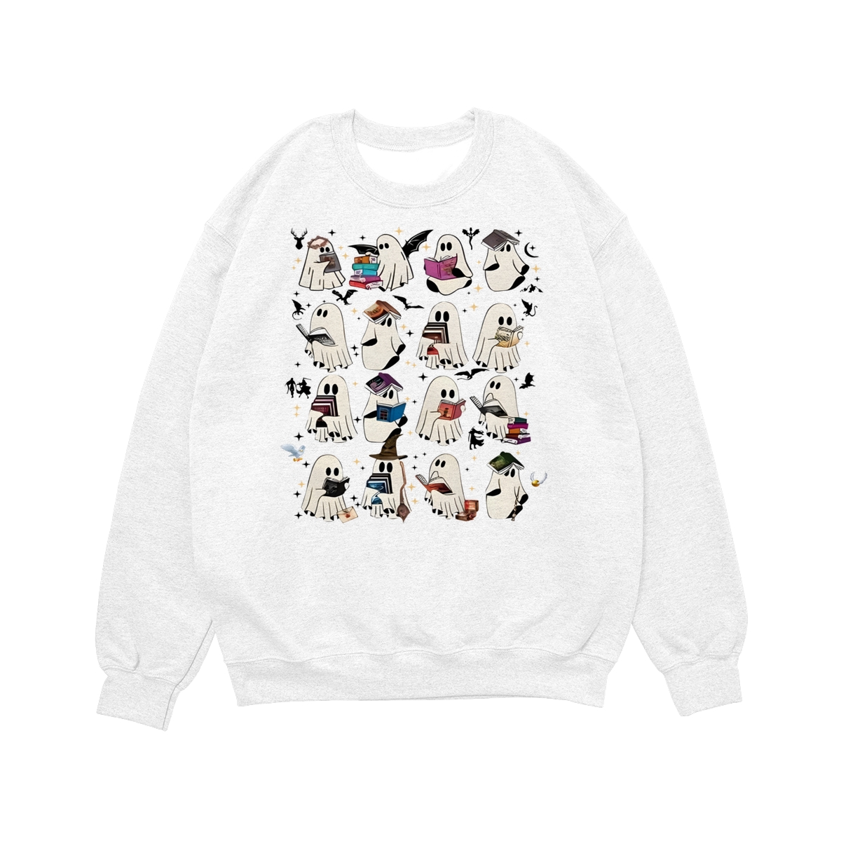 Retro Ghost Book Fantasy Shirt, Halloween Book Shirt, Bookish Ghost Sweatshirt, Fourth Wing, Acotar, Throne Of Glass, HP, Halloween Gift For Book Lover