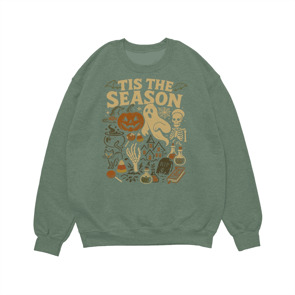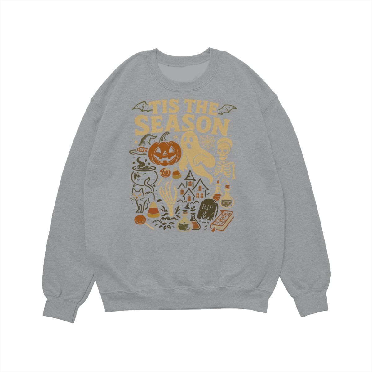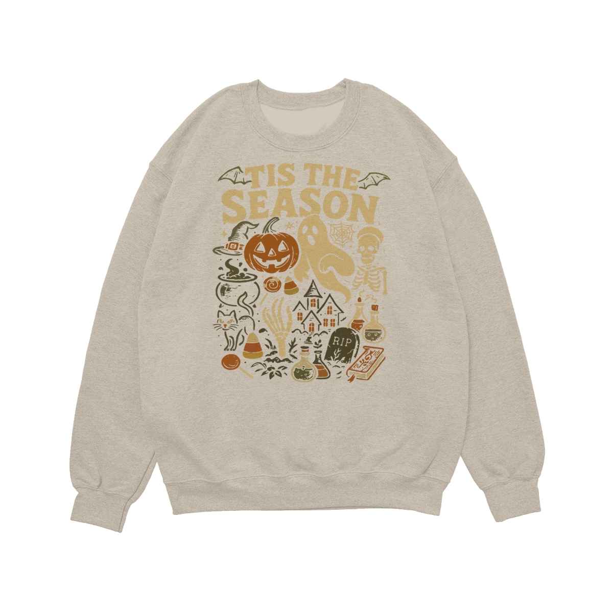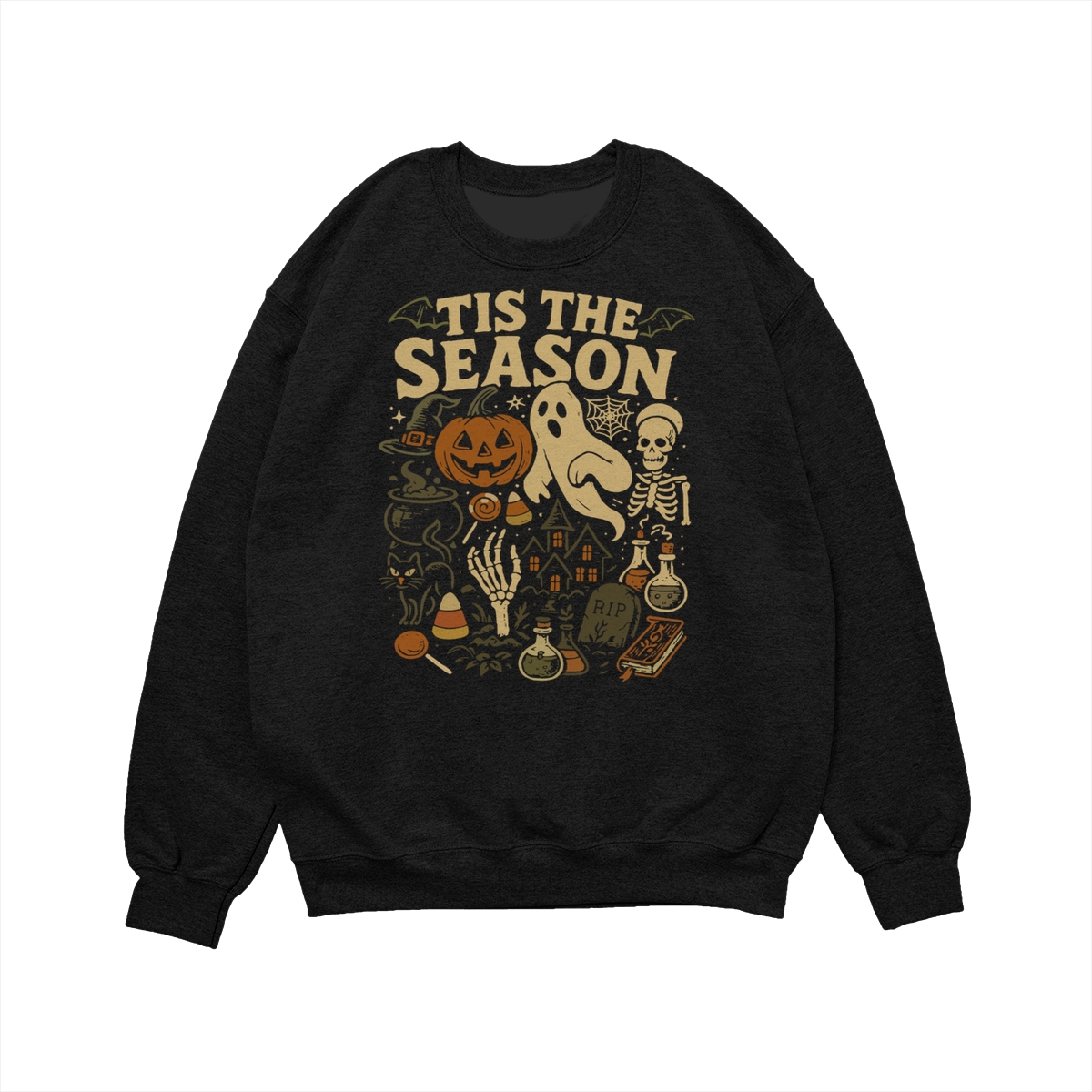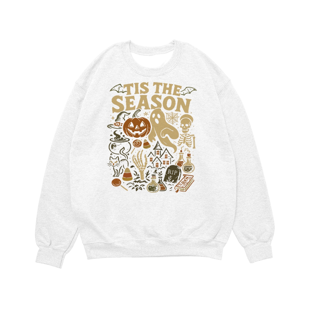 Retro Halloween Shirt, Tis’ the Season, Vintage Halloween Aesthetic, Womens, Pumpkin Ghost Oversized Sweatshirt