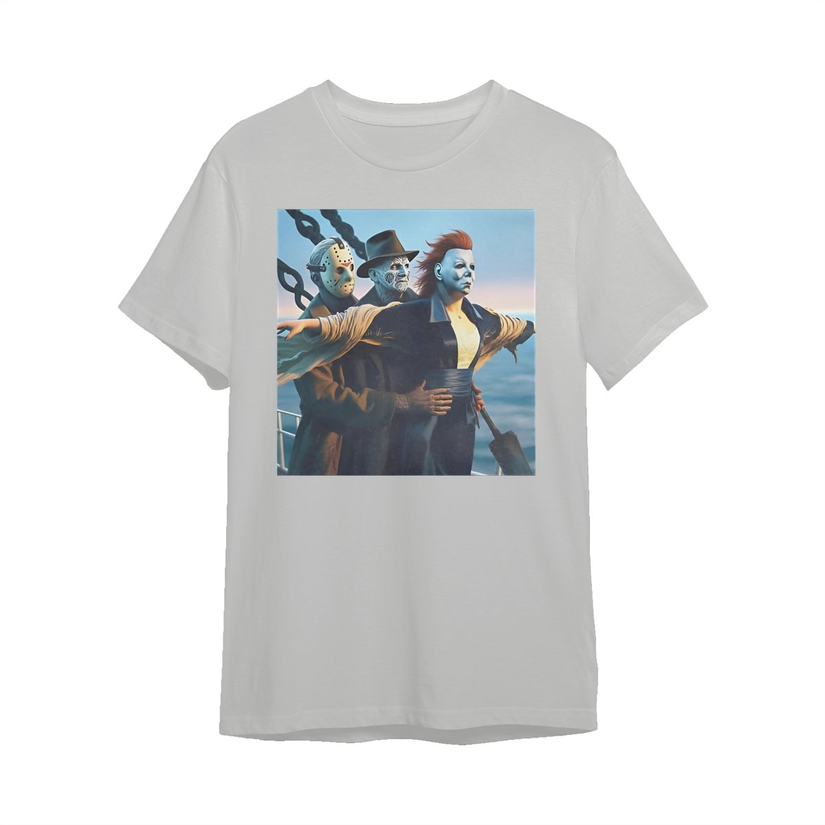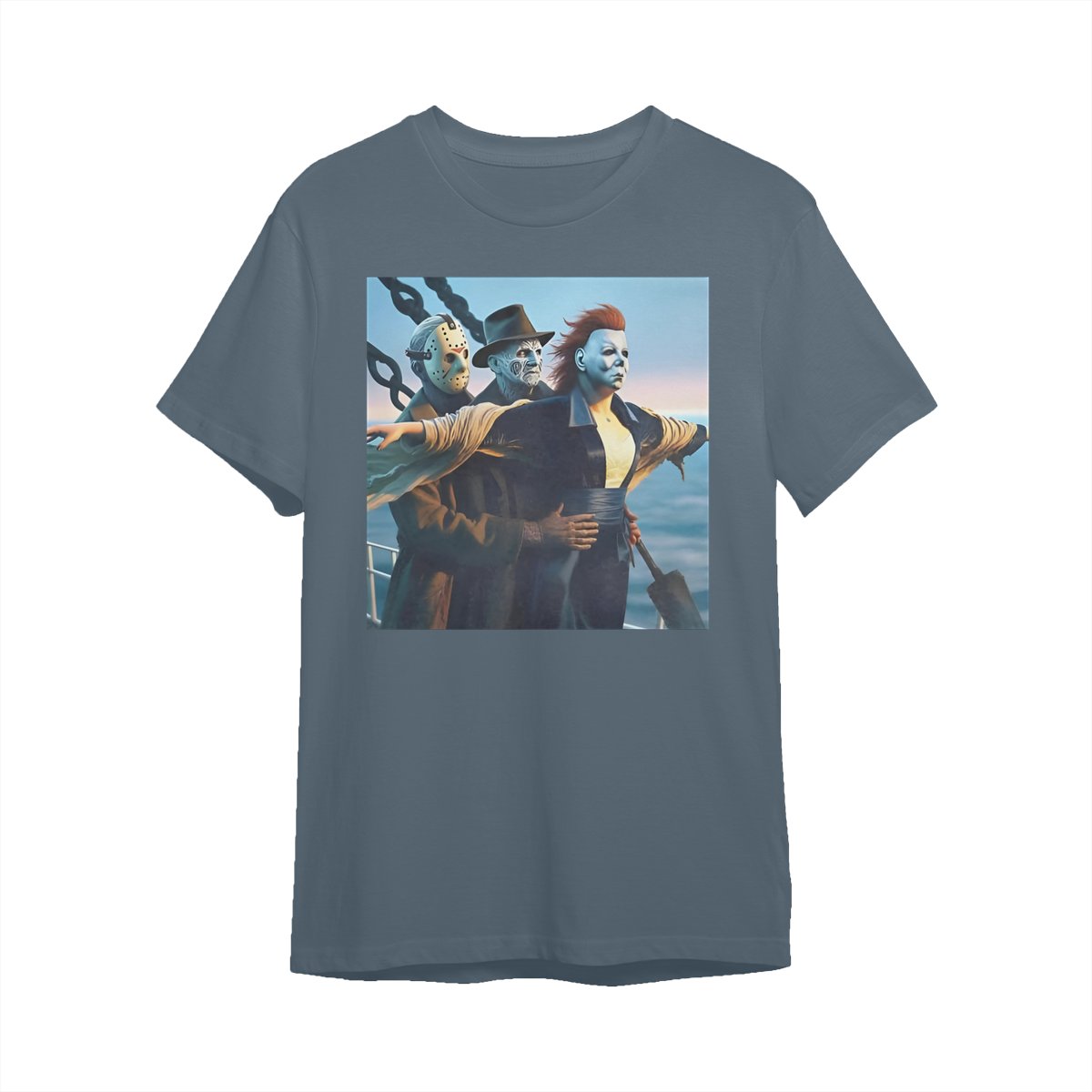 Retro Horror Icons Tee – Vintage Halloween Shirt for Men & Women, Funny Scary Movie Graphic, Spooky Streetwear Aesthetic