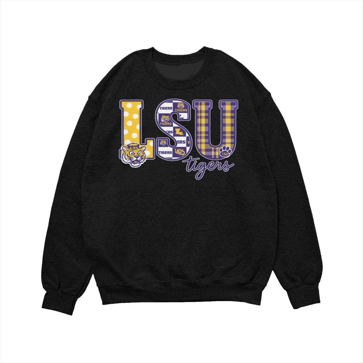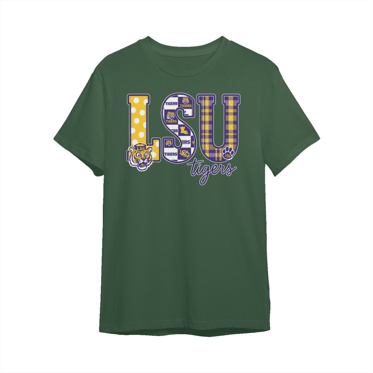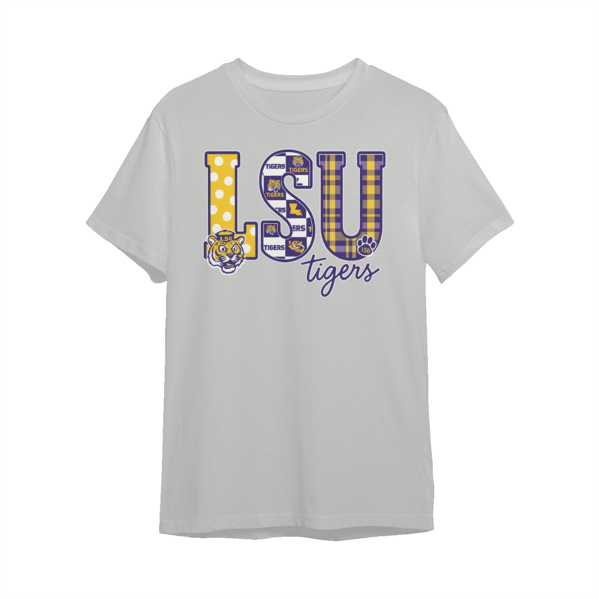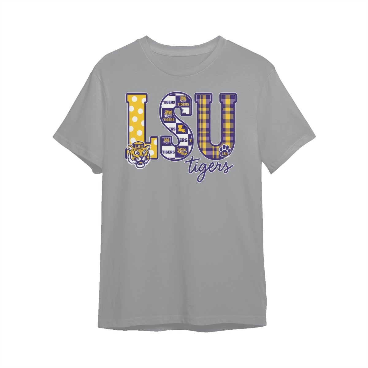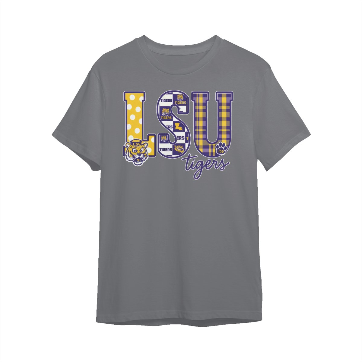 Retro LSU Tigers Letter Print T-Shirt, Colorful Game Day Fan Tee, Cute Sports Supporter Gift for Her Top