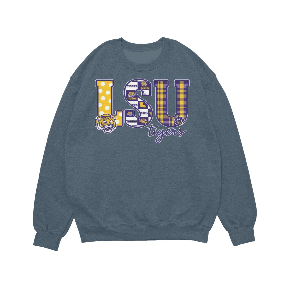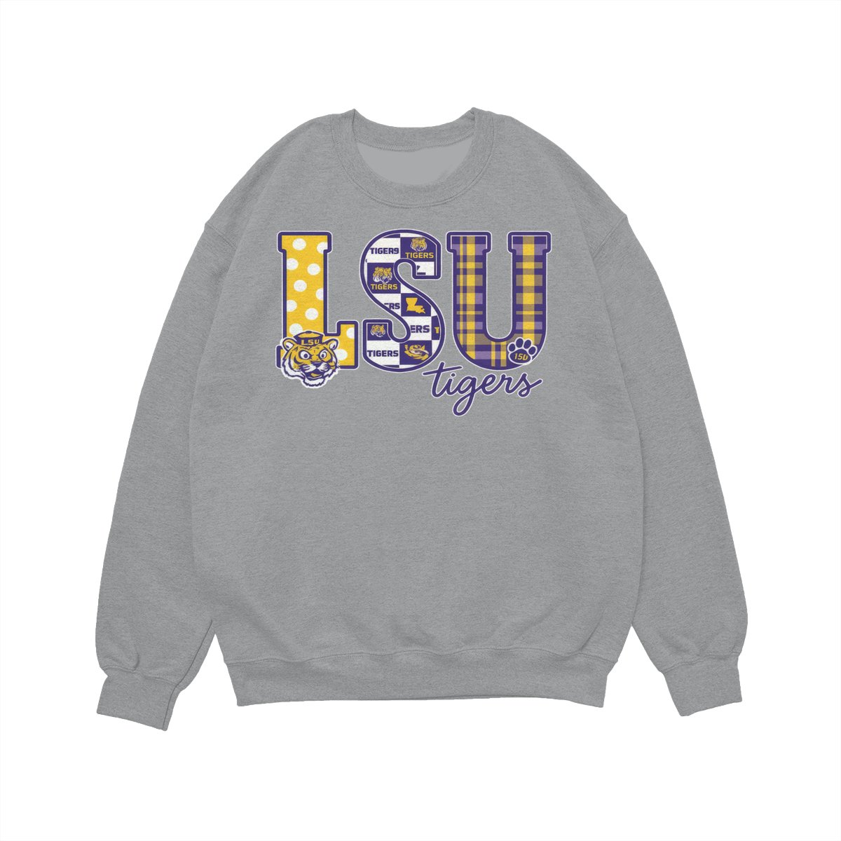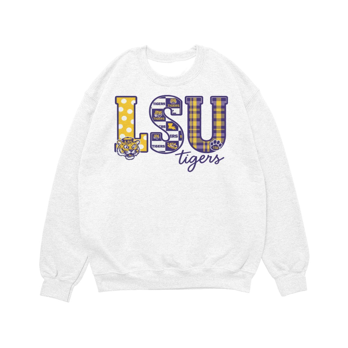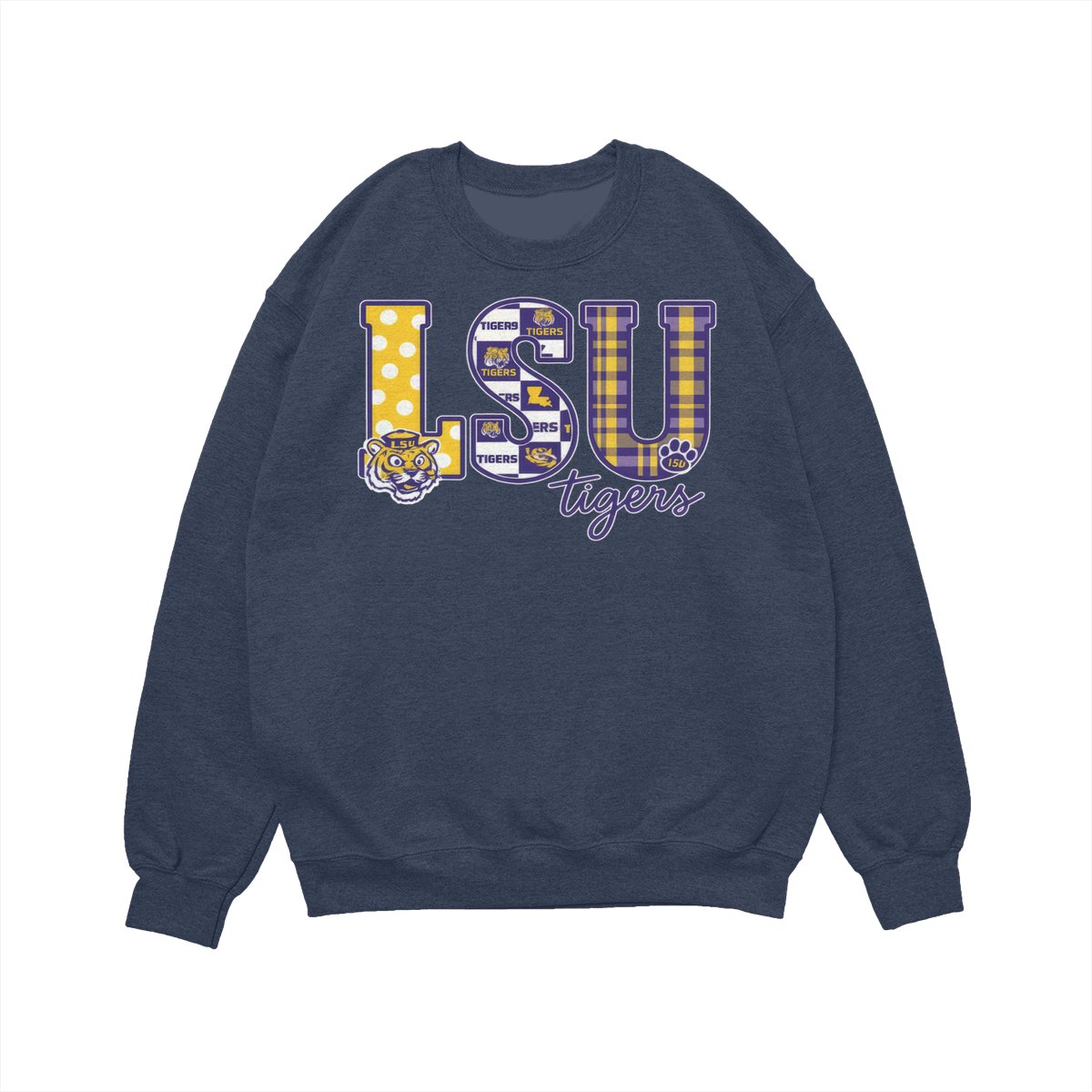 Retro LSU Tigers Letter Print T-Shirt, Colorful Game Day Fan Tee, Cute Sports Supporter Gift for Her Top