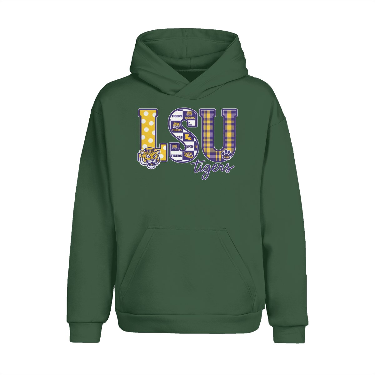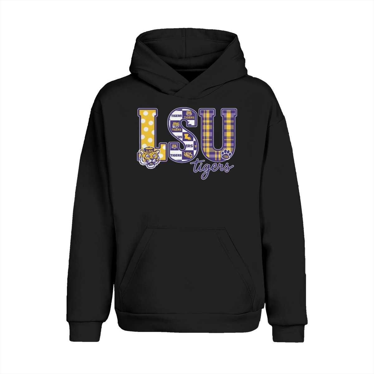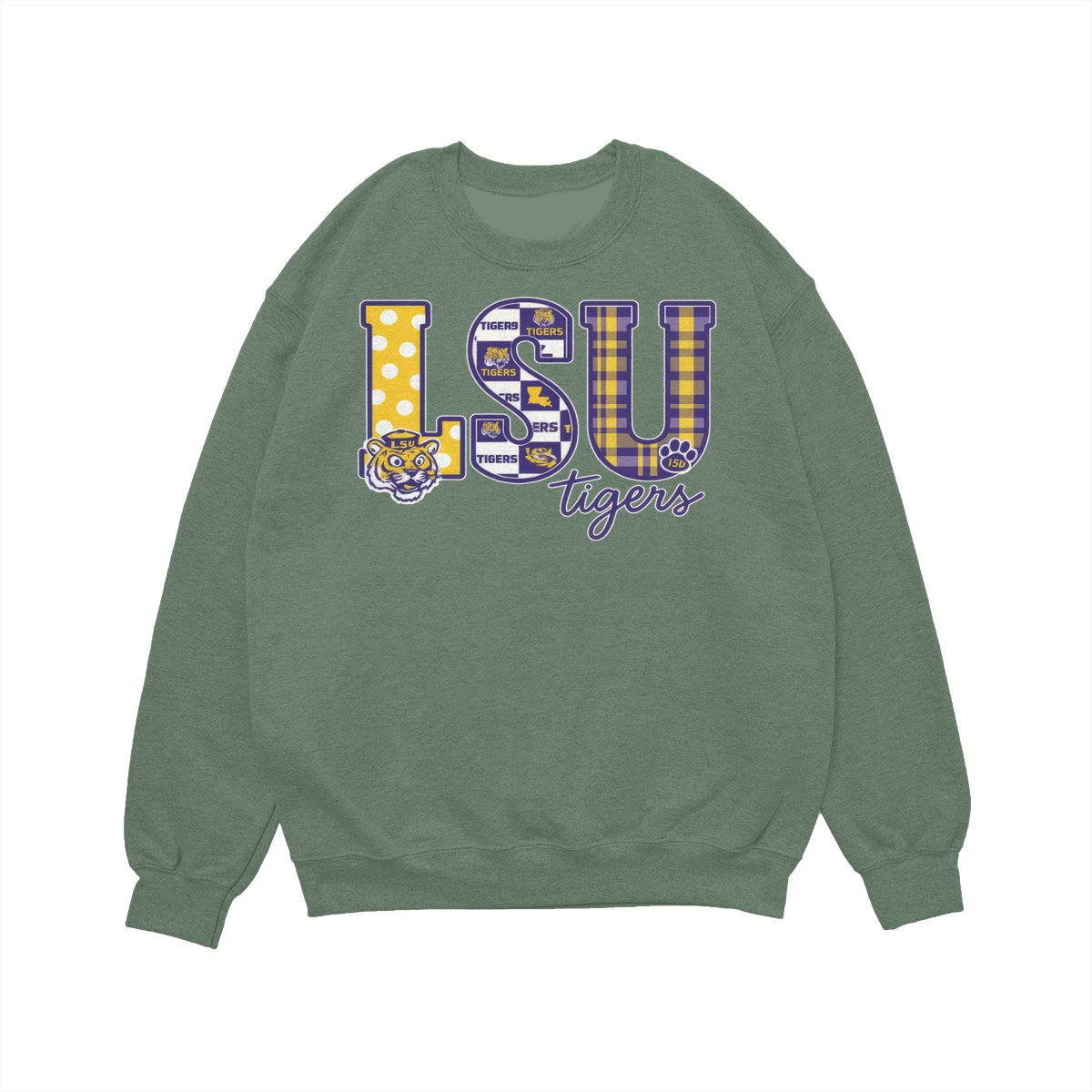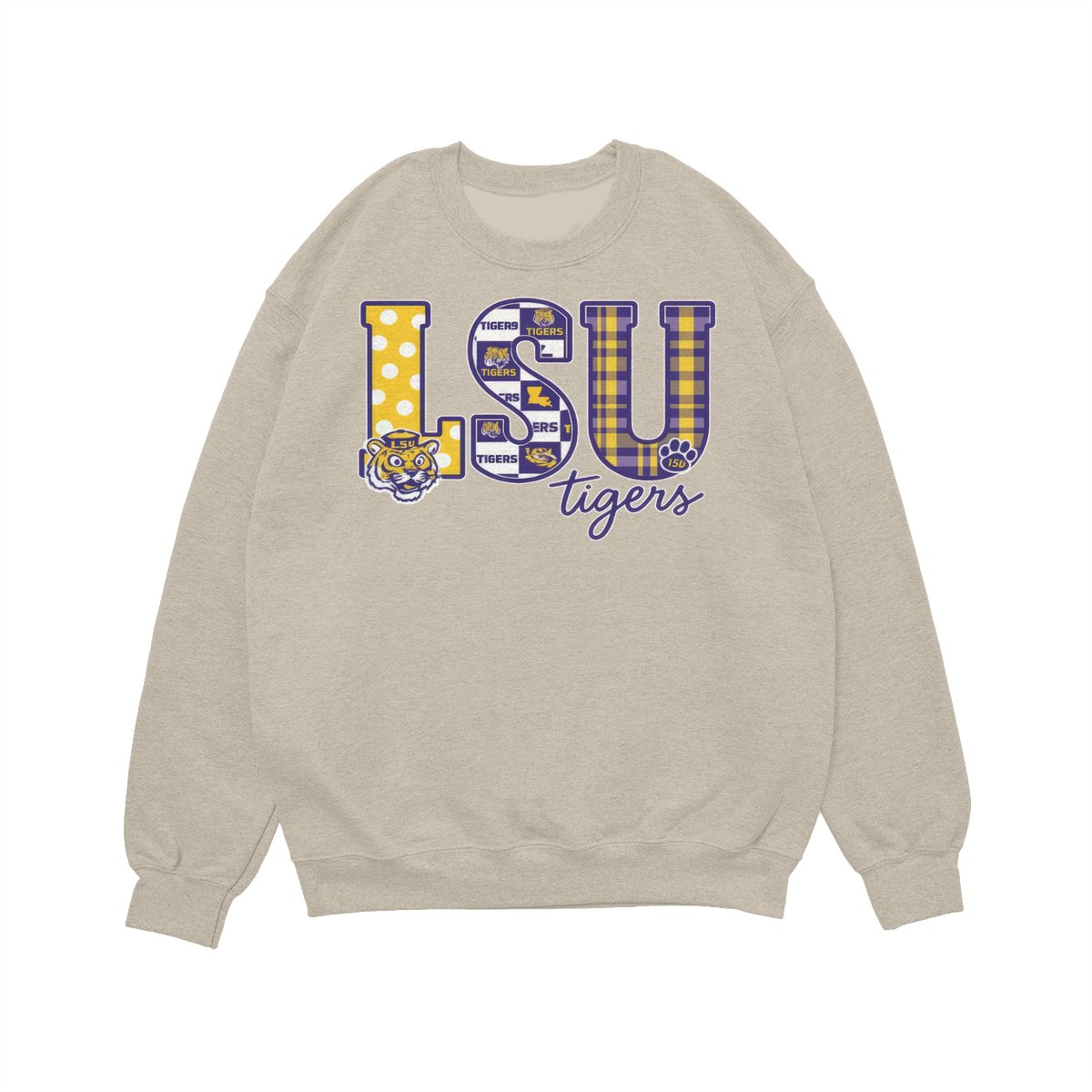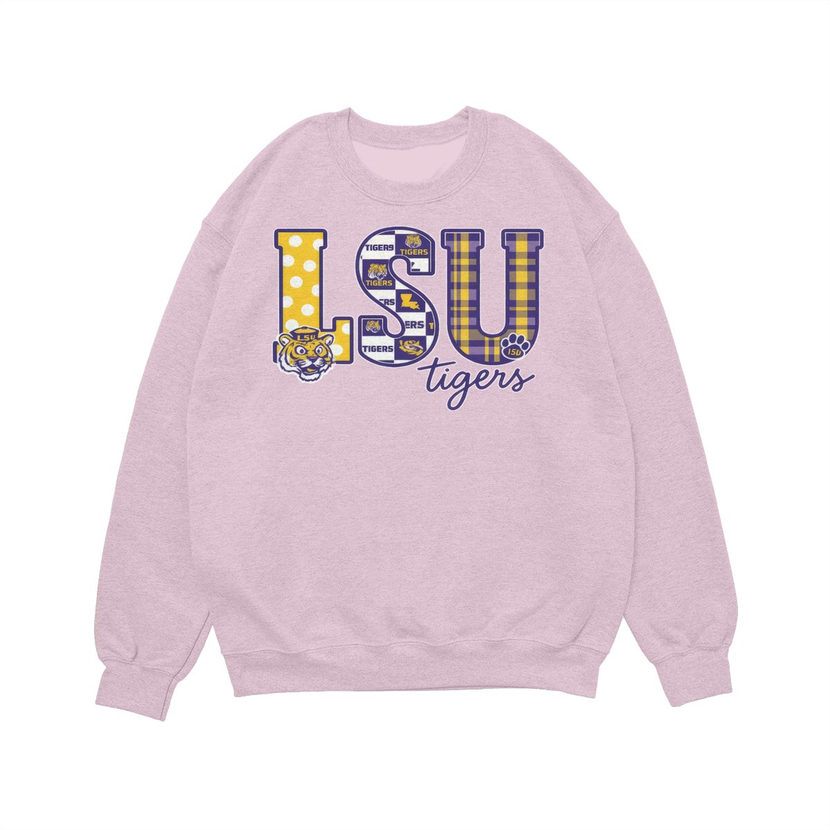 Retro LSU Tigers Letter Print T-Shirt, Colorful Game Day Fan Tee, Cute Sports Supporter Gift for Her Top