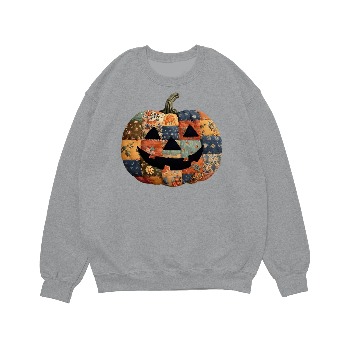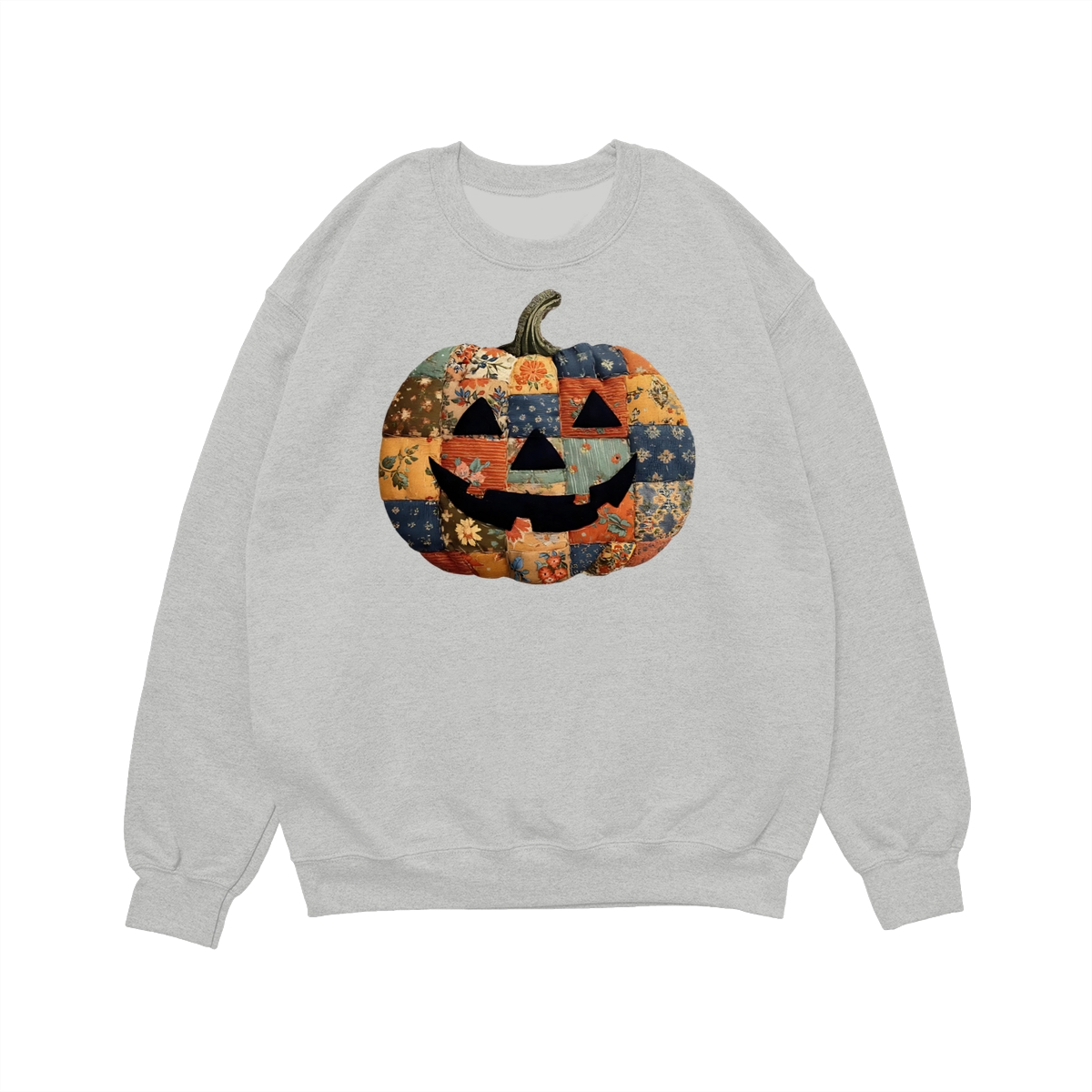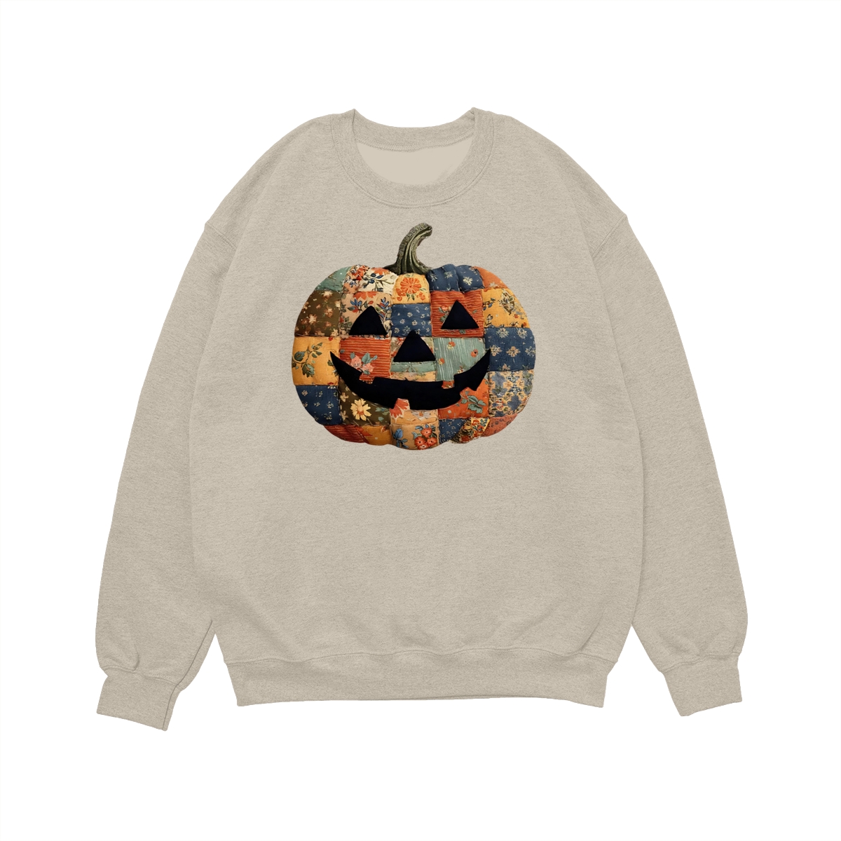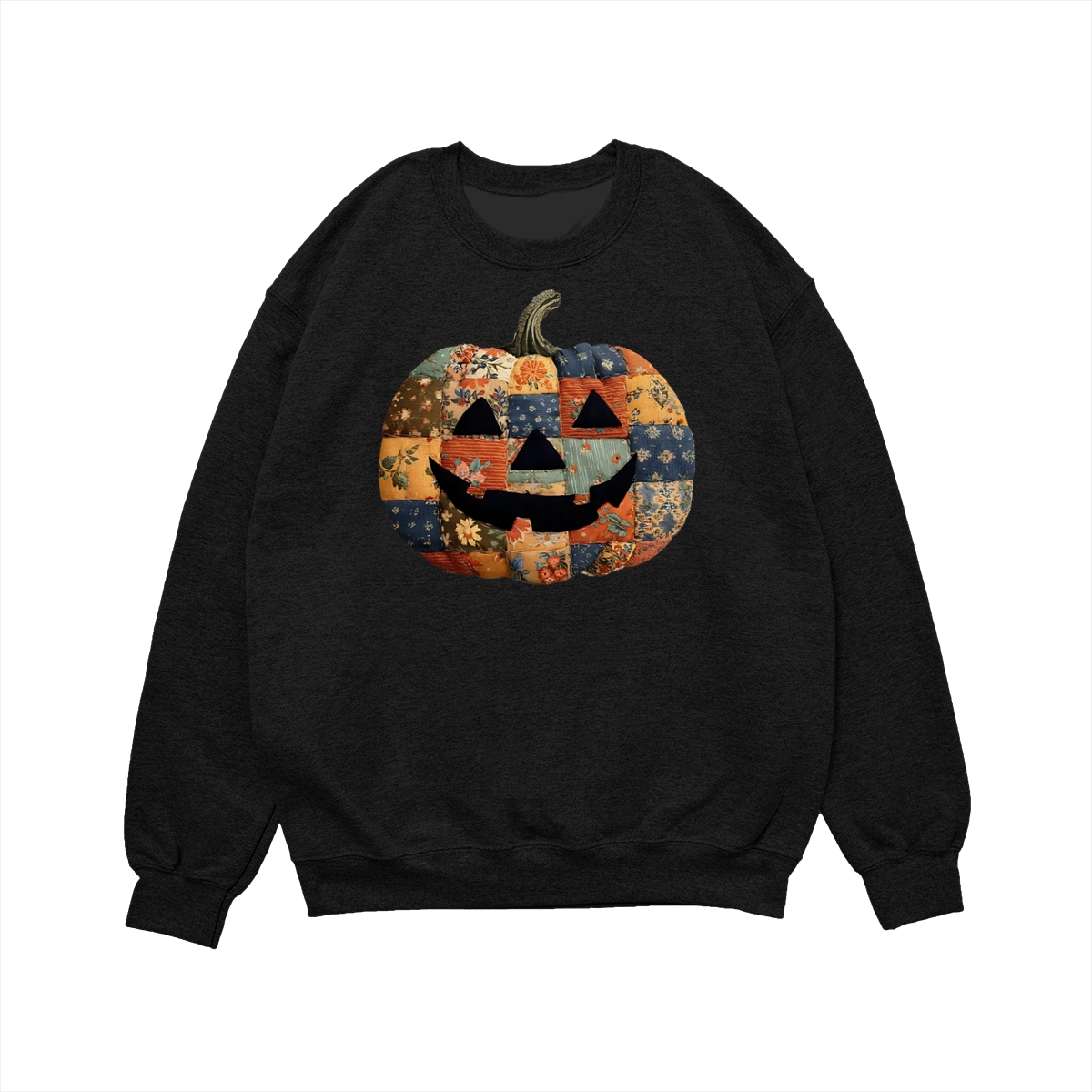 Retro Patchwork Halloween Pumpkin Sweatshirt, Spooky Season Sweater, Halloween Cute Women Outfit, Halloween Gift