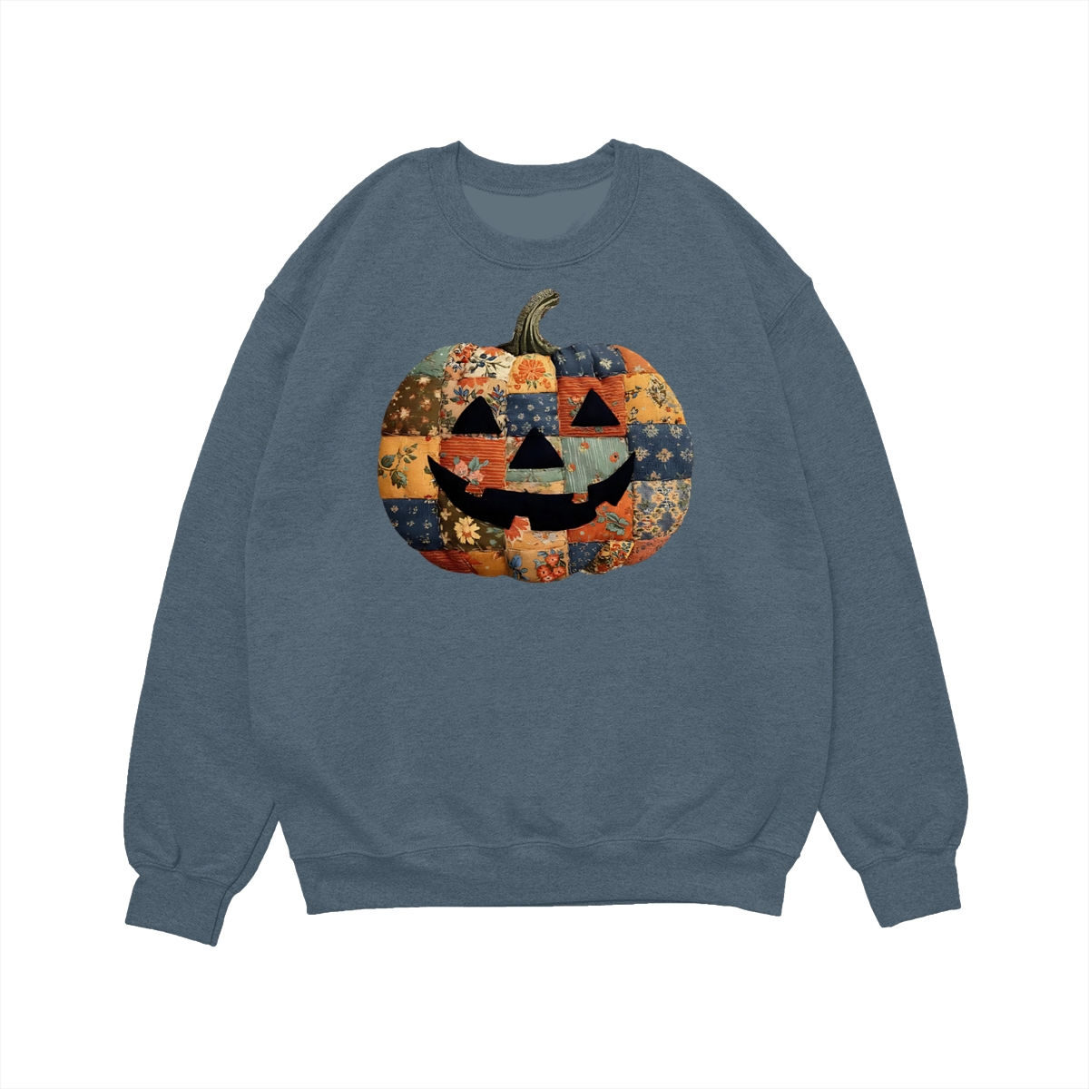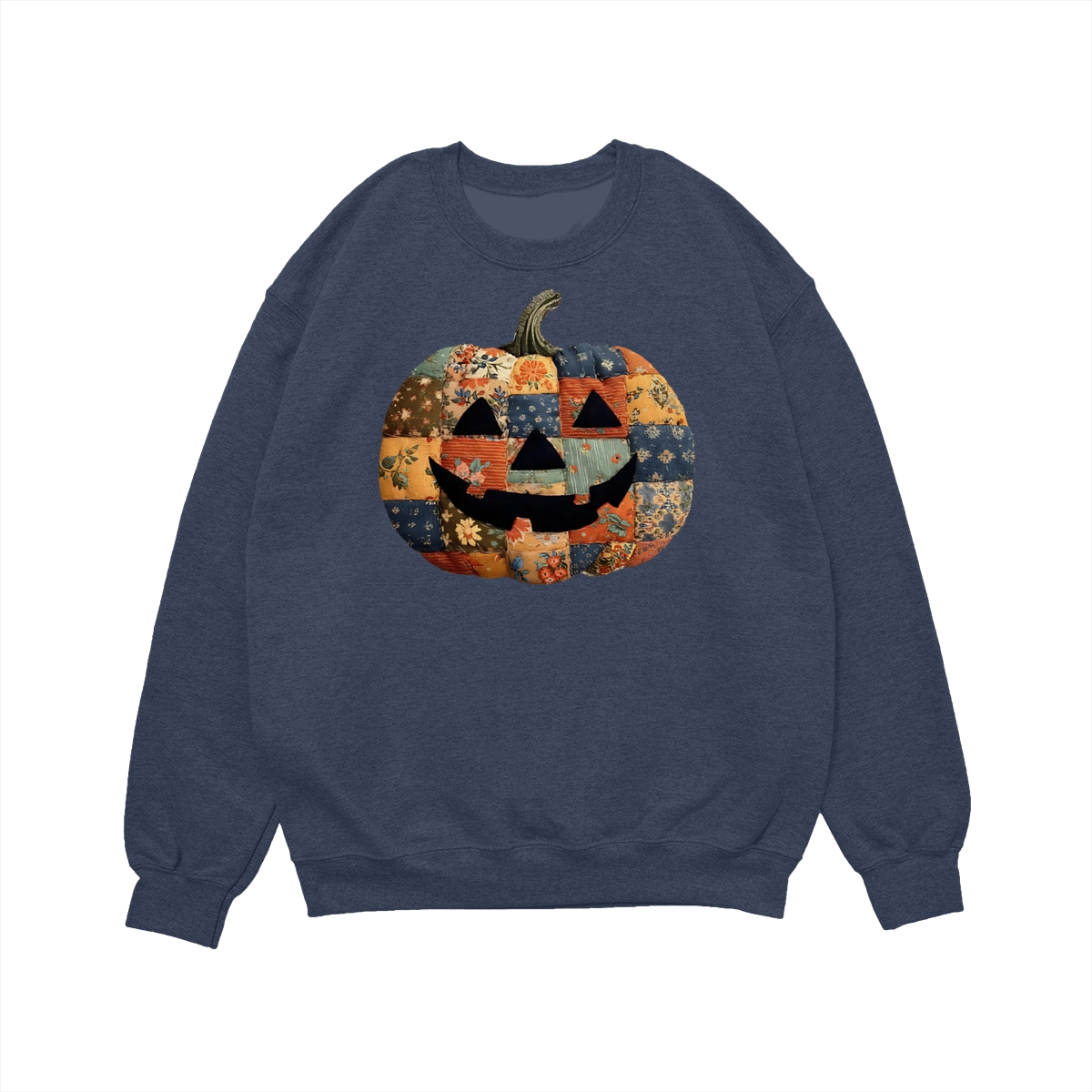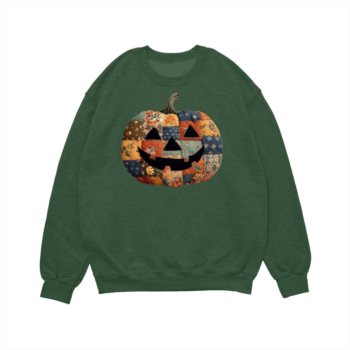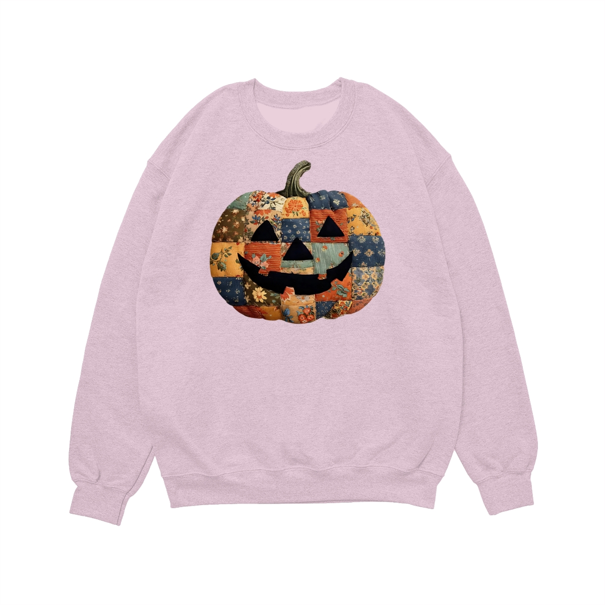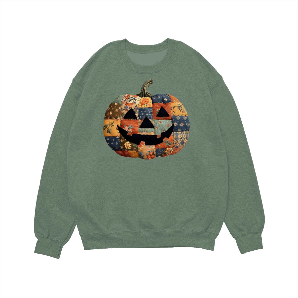 Retro Patchwork Halloween Pumpkin Sweatshirt, Spooky Season Sweater, Halloween Cute Women Outfit, Halloween Gift