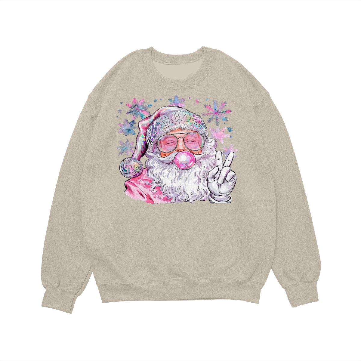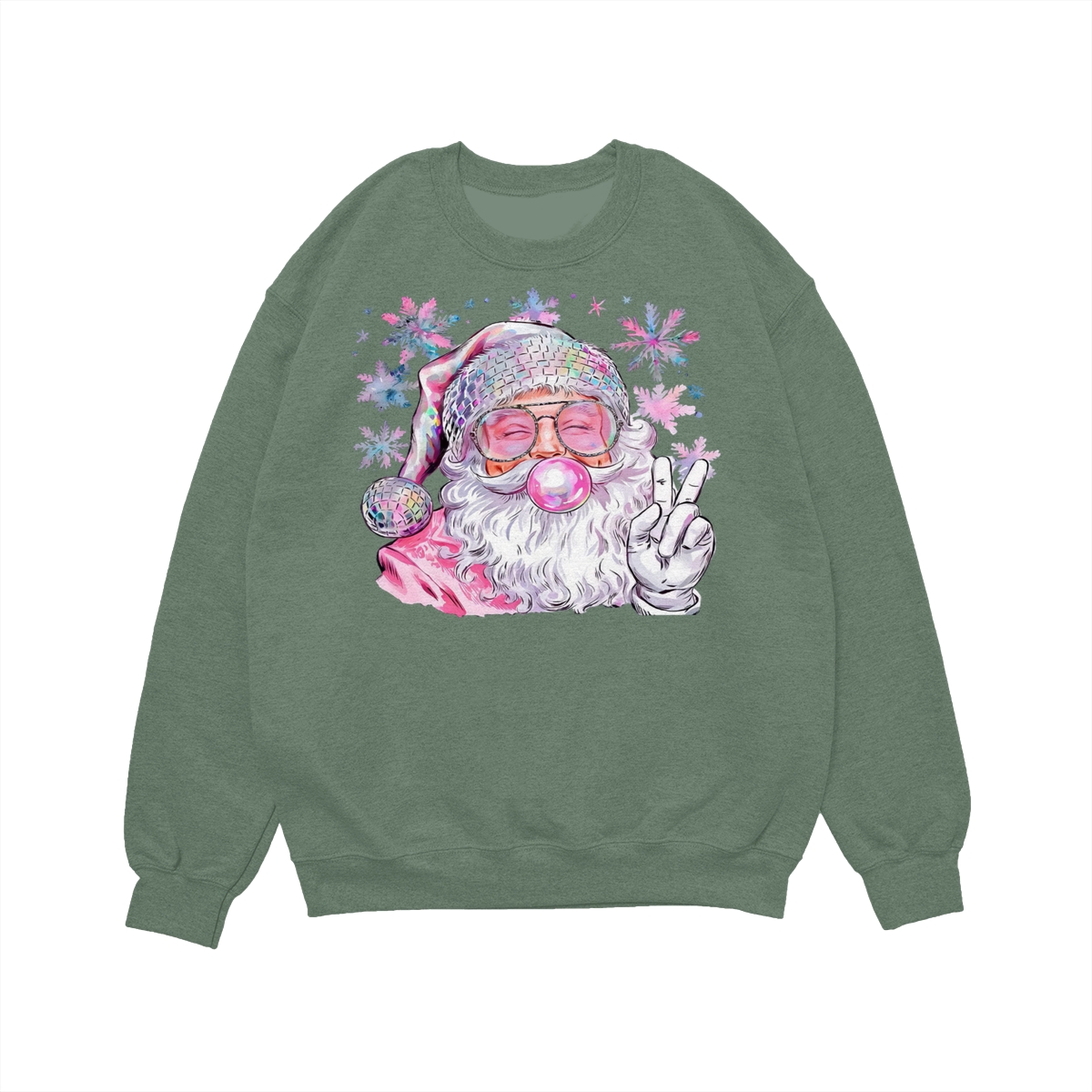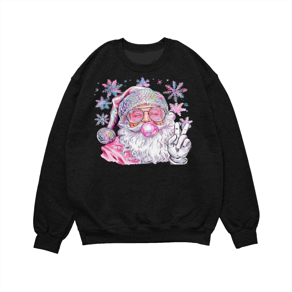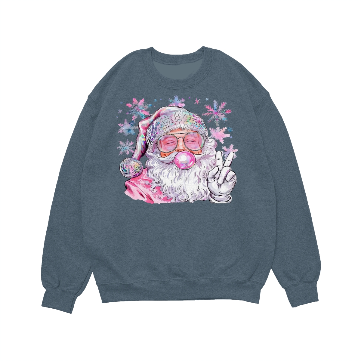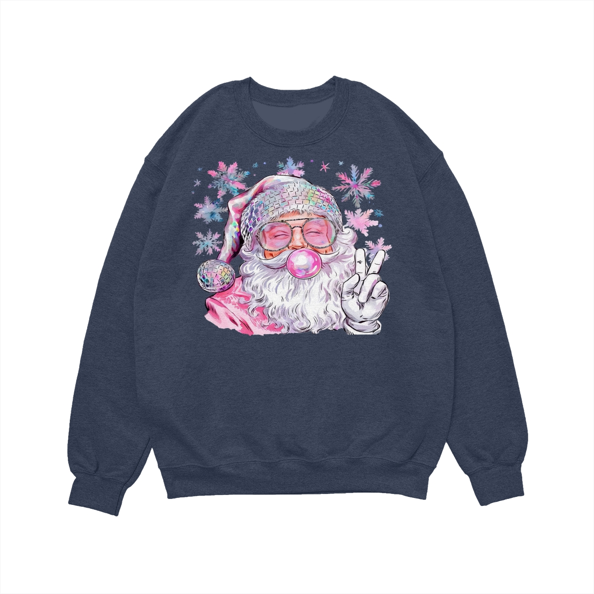 Retro Santa Blowing Bubble Christmas Sweatshirt, Funny Vintage Santa Pullover, Holiday Outfit Gift for Christmas, 100% Cotton, Made in USA