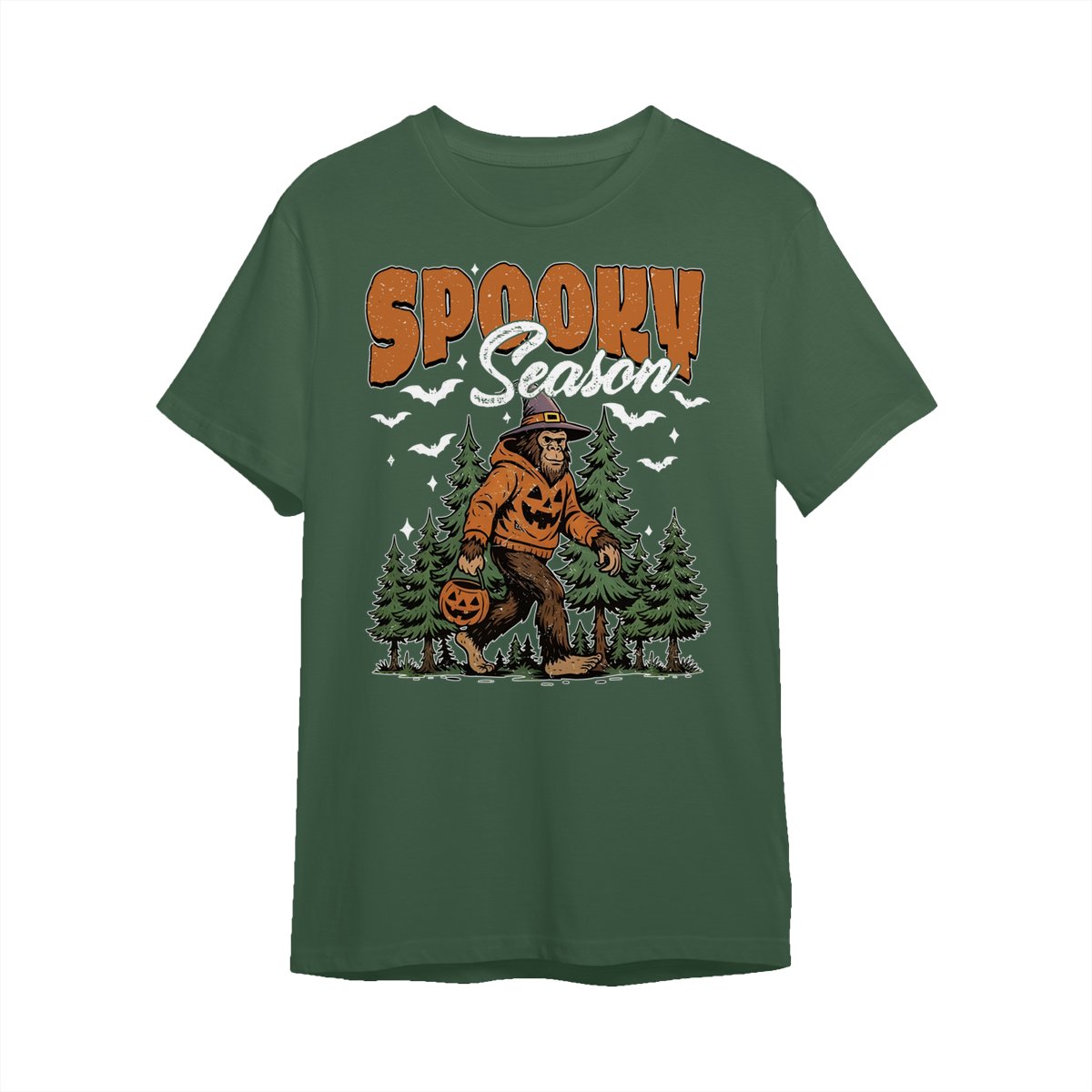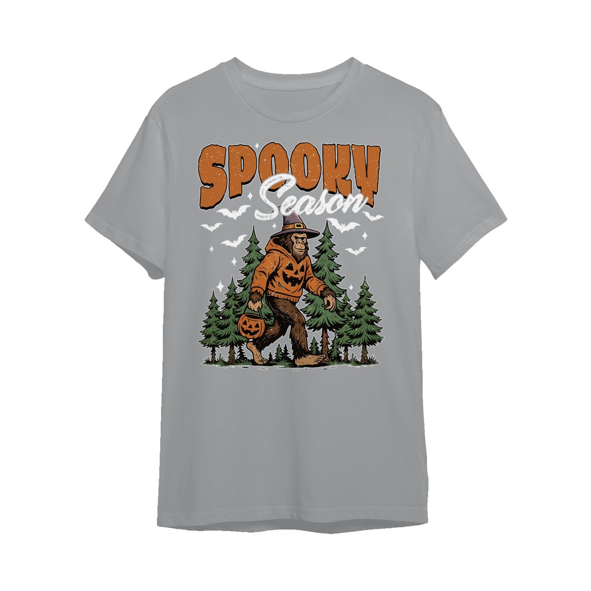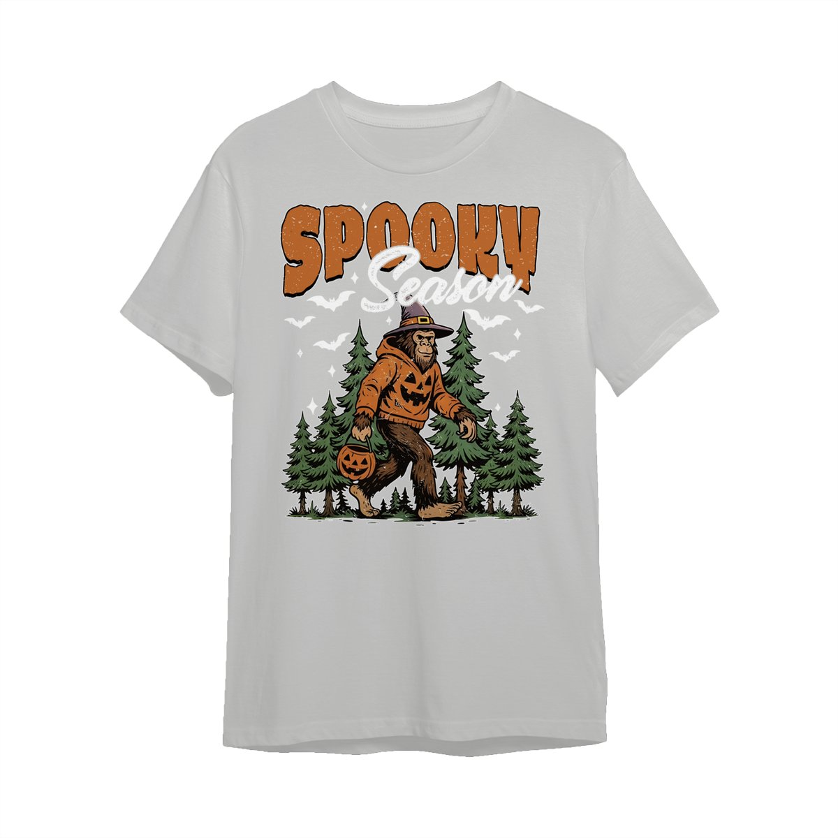 Retro Spooky Bigfoot Halloween T-Shirt, Funny Cryptid Pumpkin Graphic Tee, Vintage Bigfoot Fall Sublimation Look Shirt, Unisex Cotton Tee for Men and Women, Autumn Gift