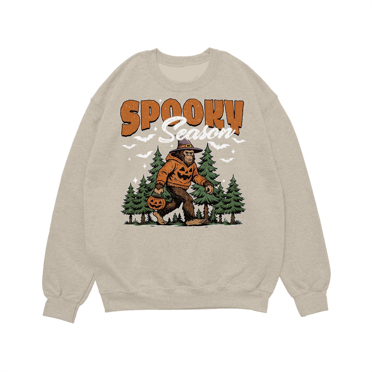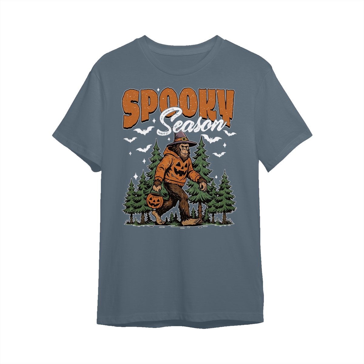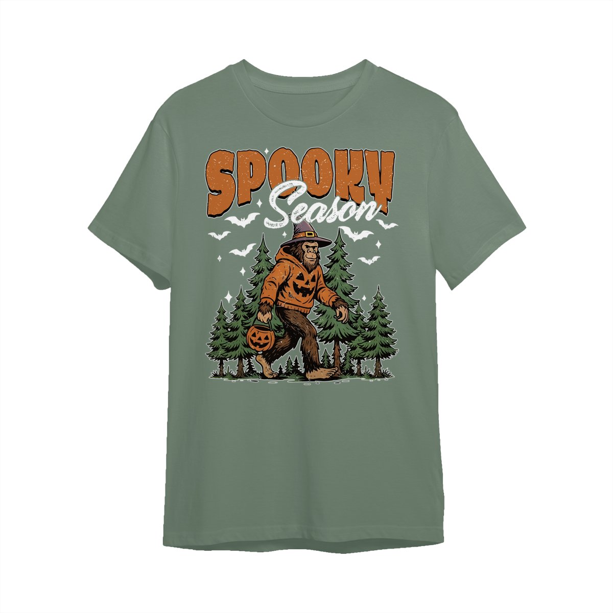 Retro Spooky Bigfoot Halloween T-Shirt, Funny Cryptid Pumpkin Graphic Tee, Vintage Bigfoot Fall Sublimation Look Shirt, Unisex Cotton Tee for Men and Women, Autumn Gift