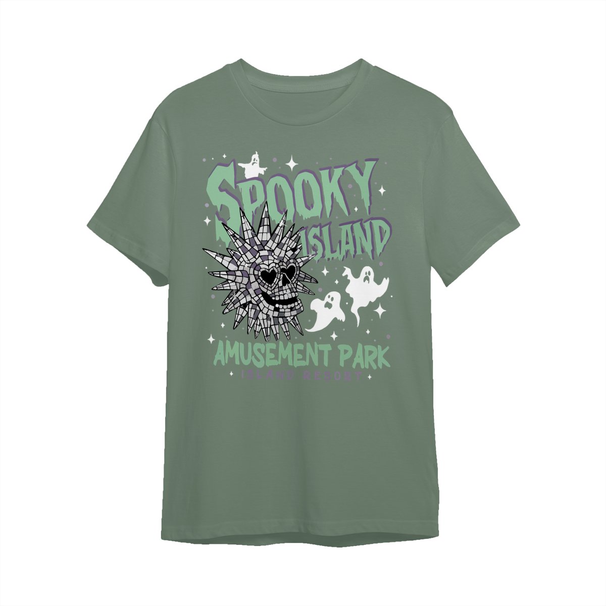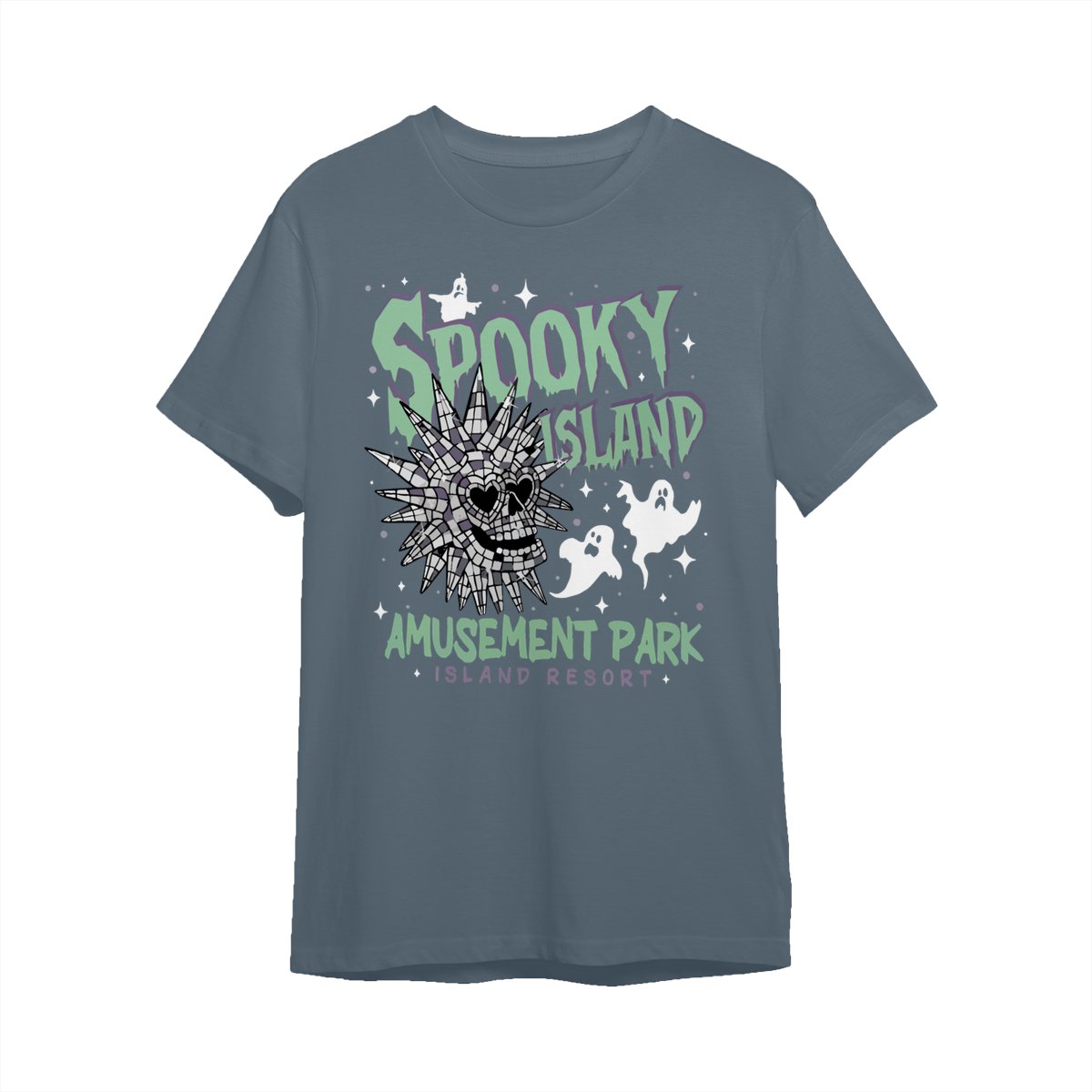 Retro Spooky Island Amusement Park Shirt, Disco Skull Boos Halloween Movie T Shirt, The 90s Halloween Skeleton Gift Cotton Womenswe