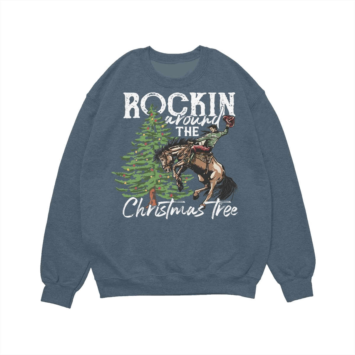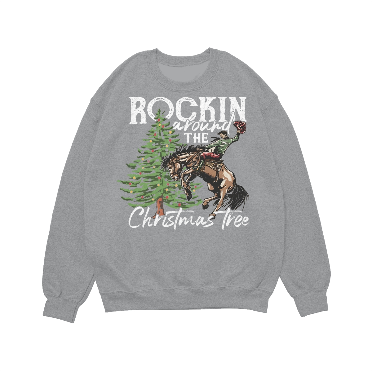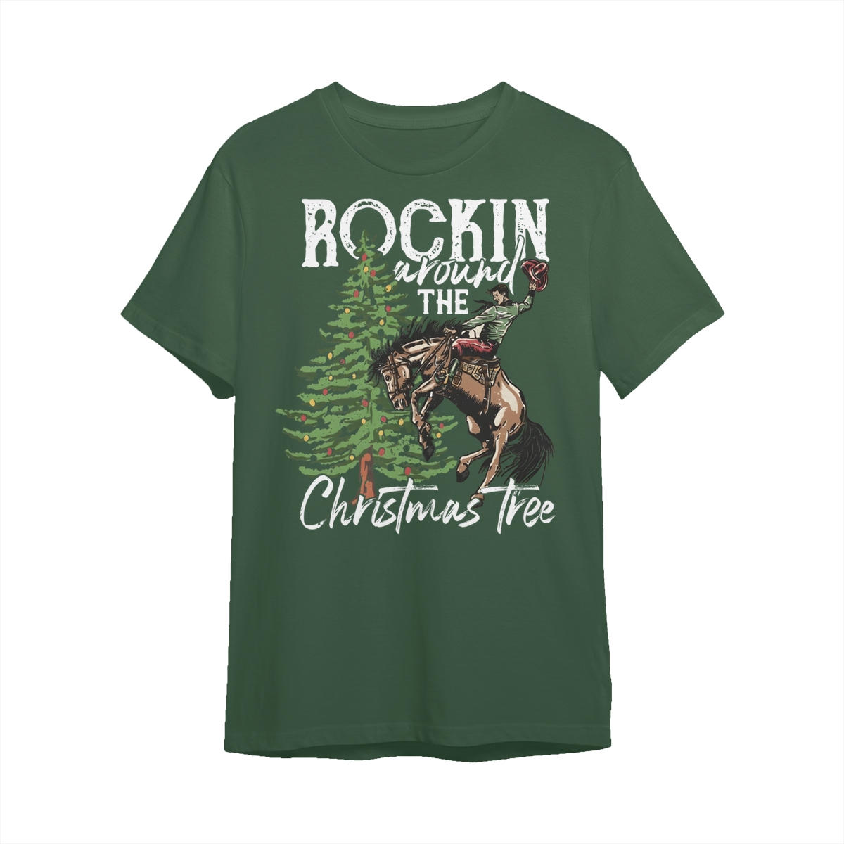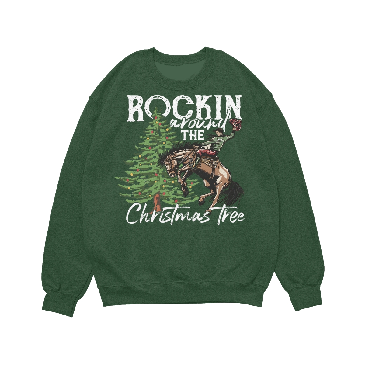 Rocking Around The Christmas Tree Shirt, Retro Christmas Western T-Shirt, cowboy sweatshirt,yee haw howdy christmas, women’s