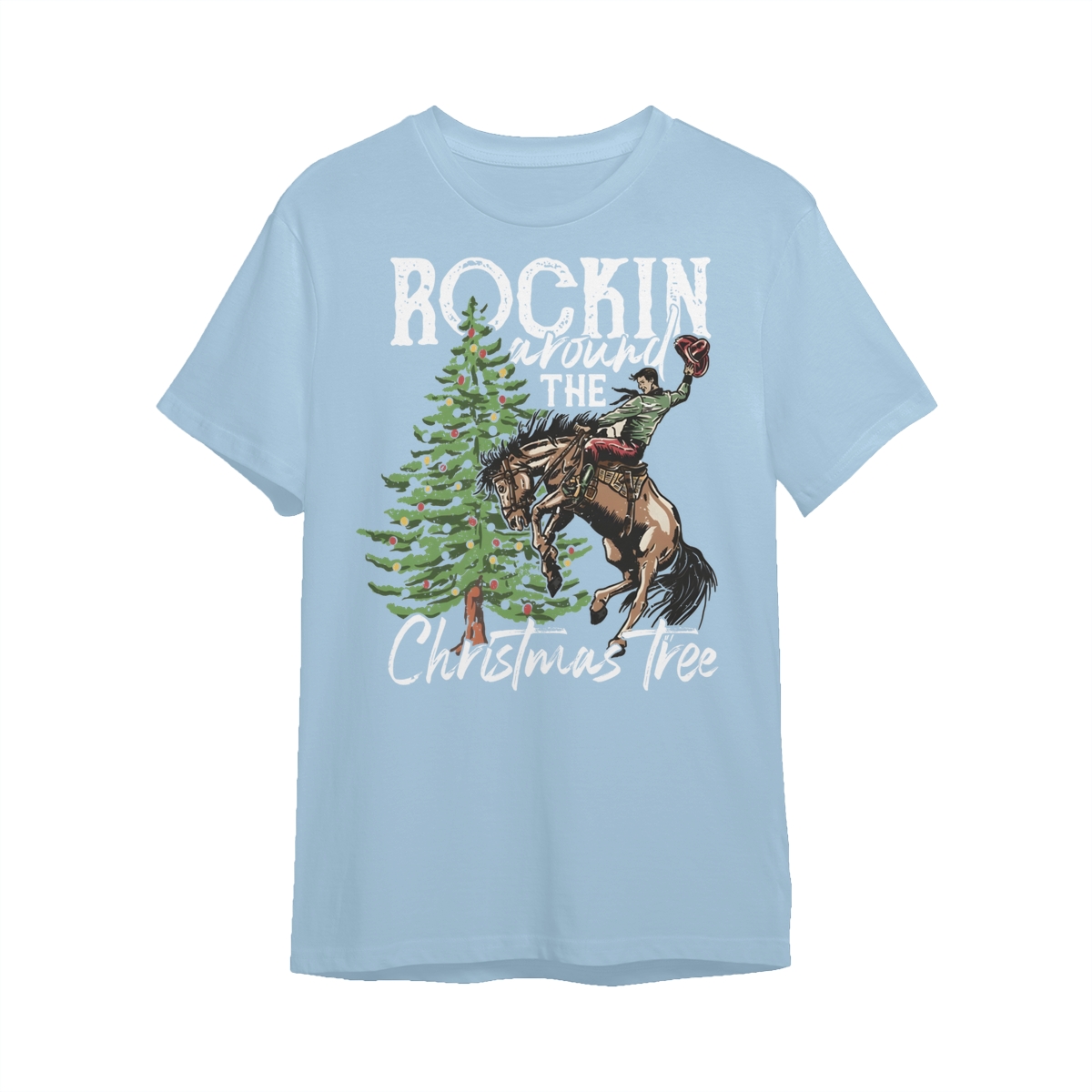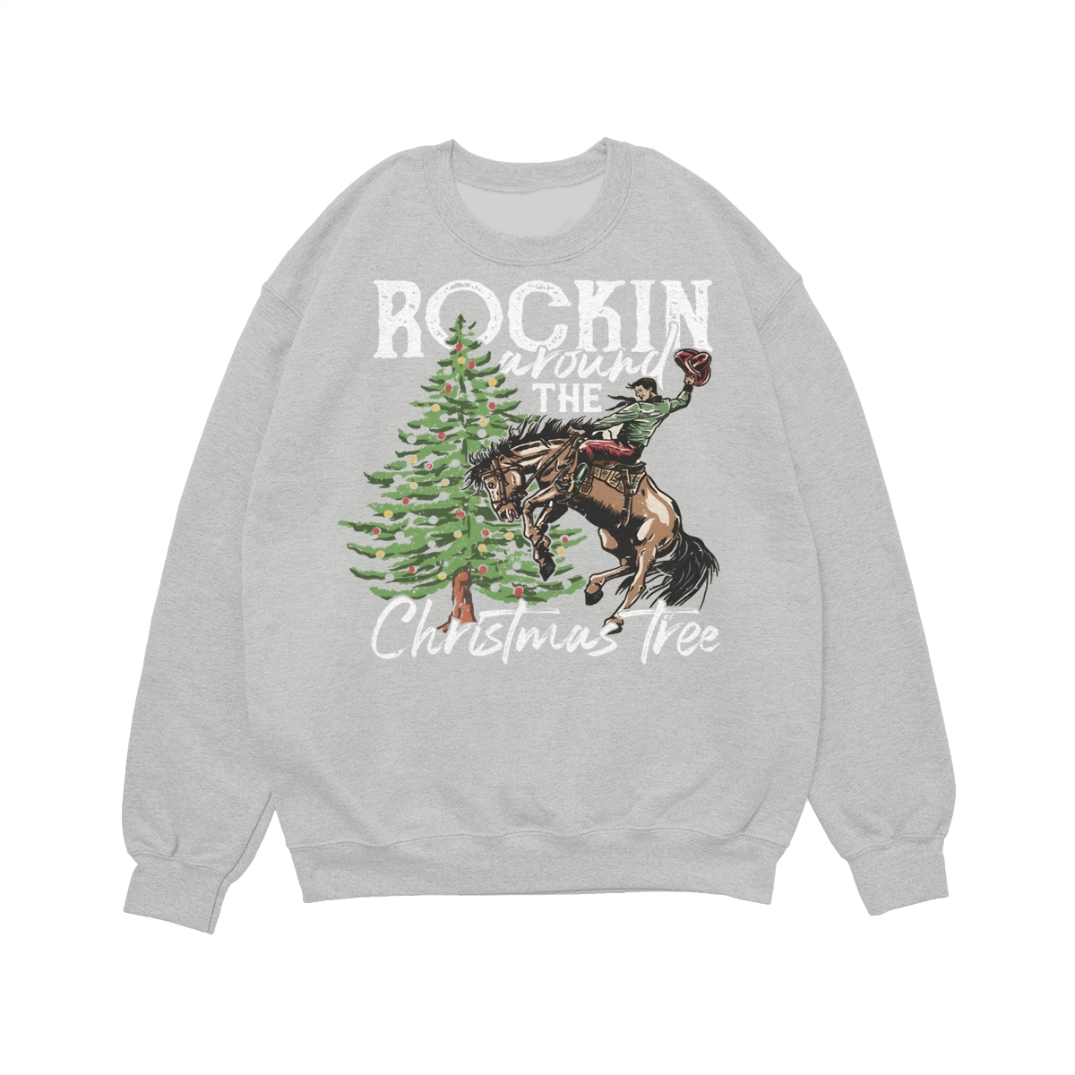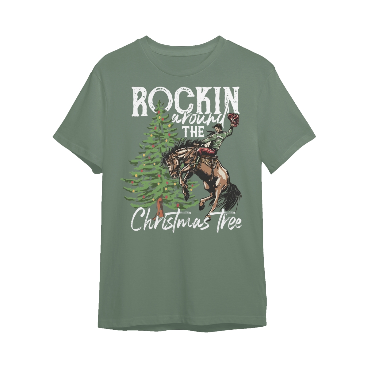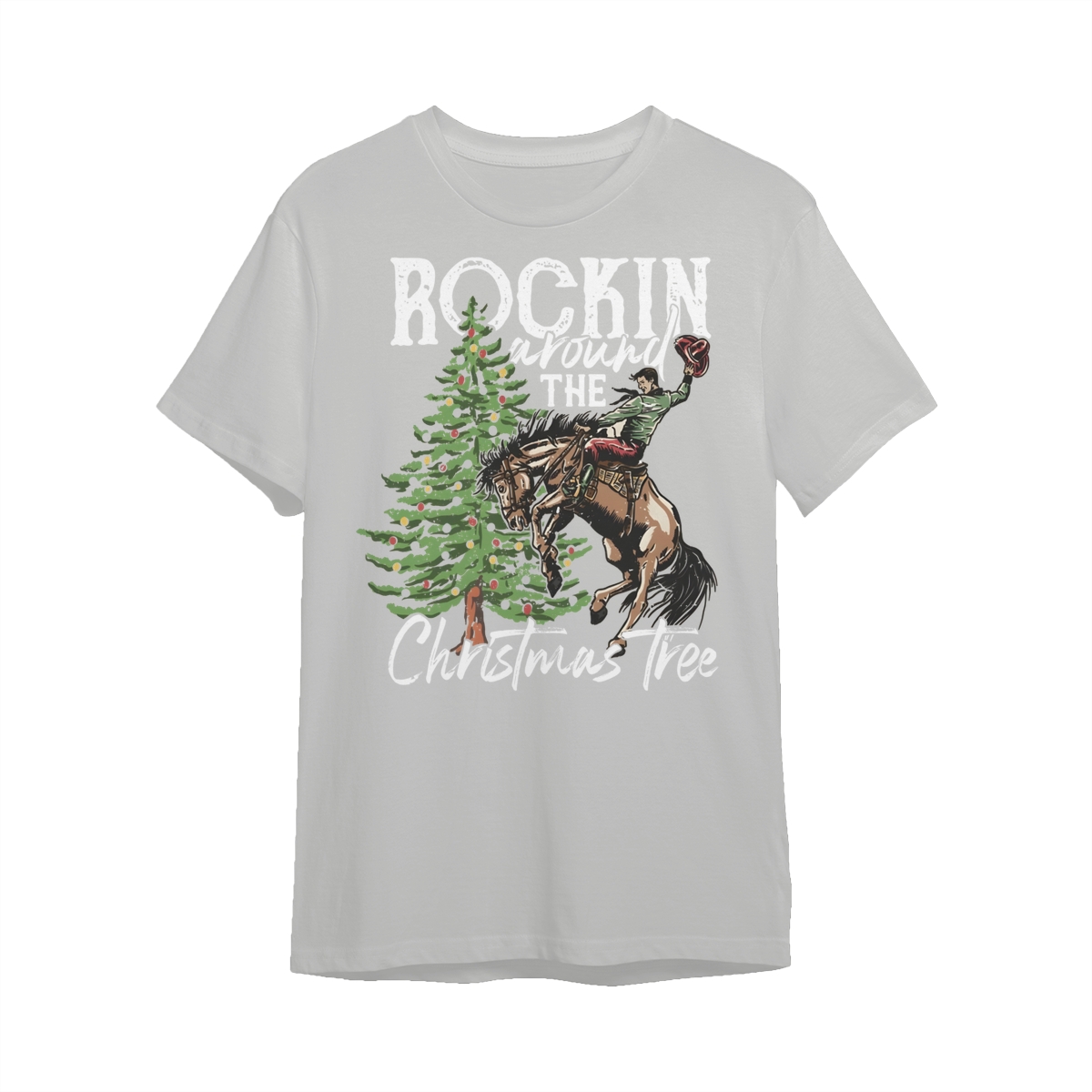 Rocking Around The Christmas Tree Shirt, Retro Christmas Western T-Shirt, cowboy sweatshirt,yee haw howdy christmas, women’s