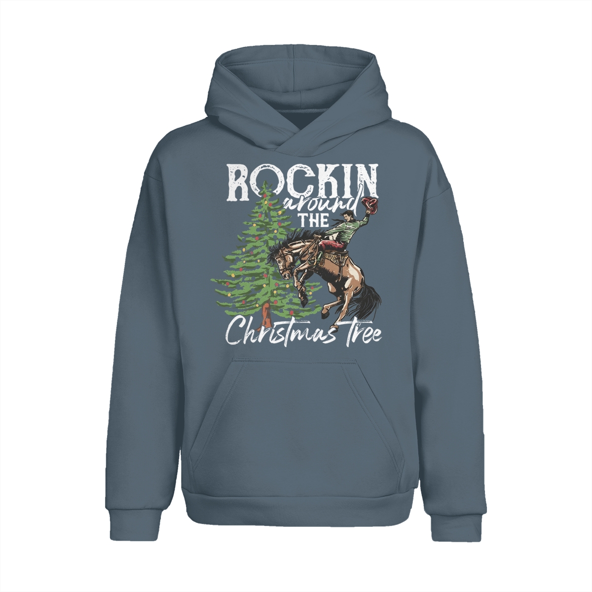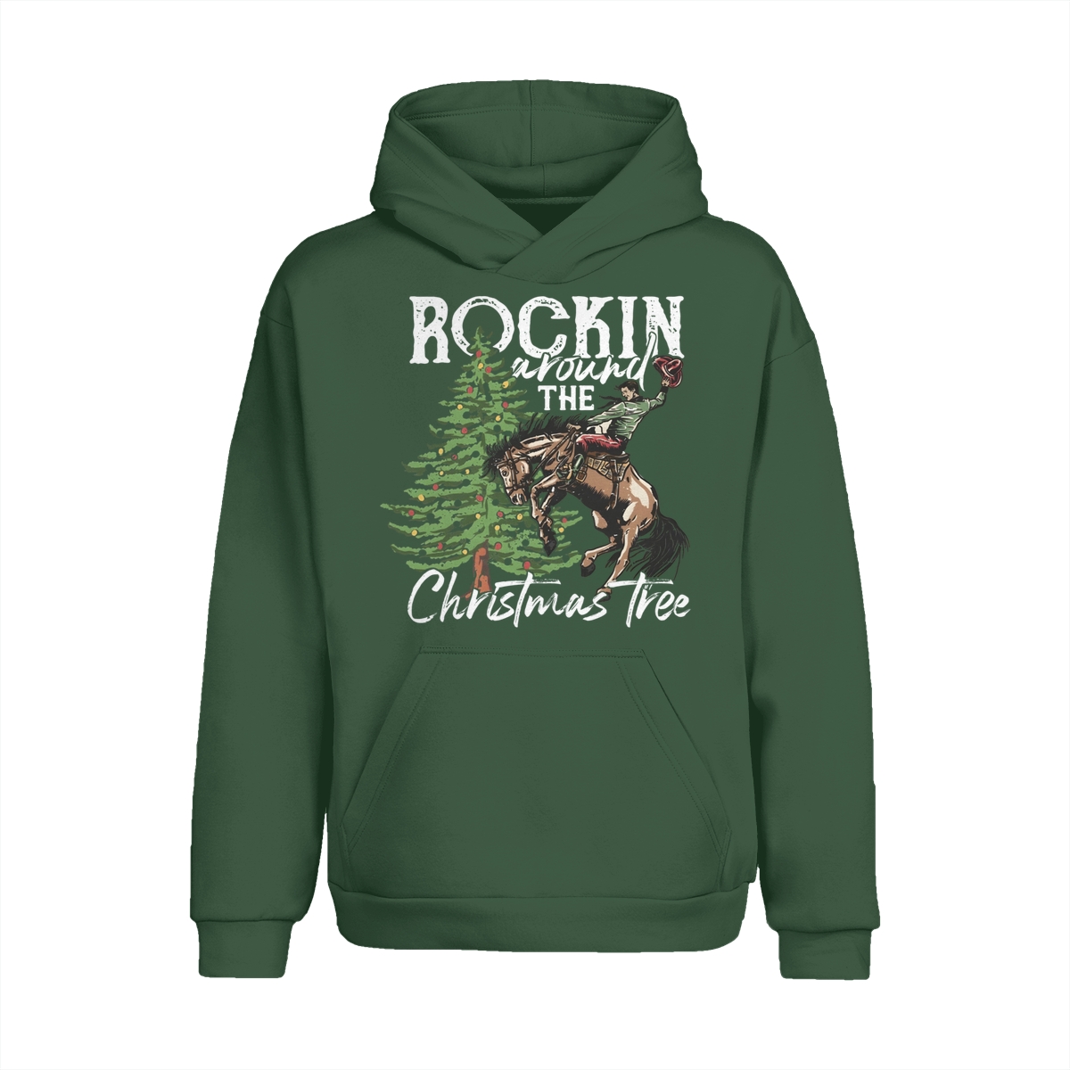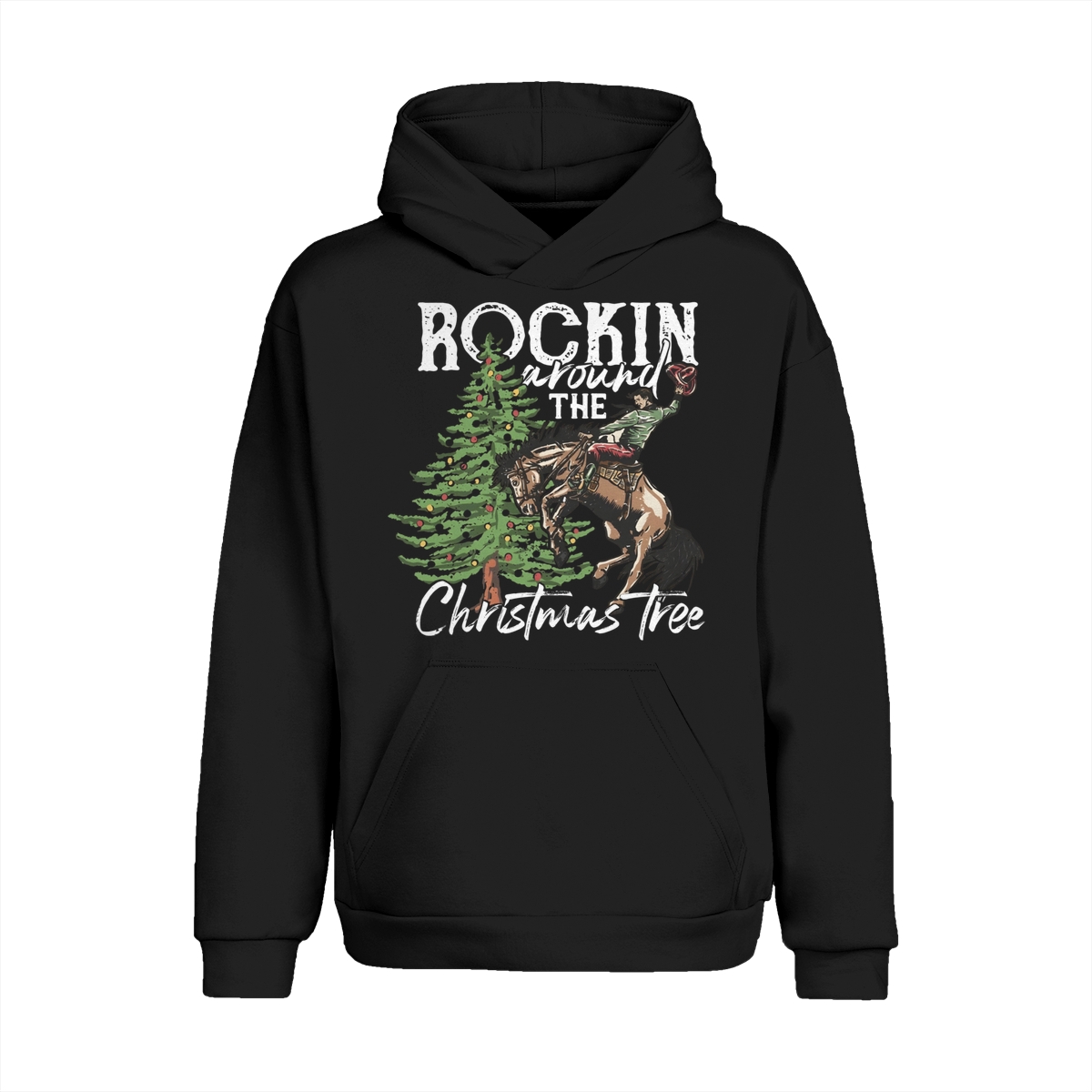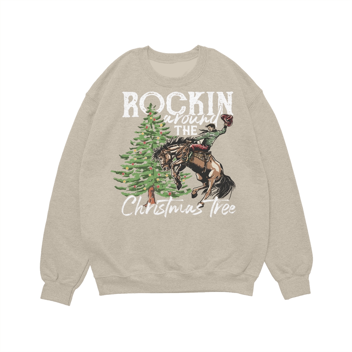 Rocking Around The Christmas Tree Shirt, Retro Christmas Western T-Shirt, cowboy sweatshirt,yee haw howdy christmas, women’s