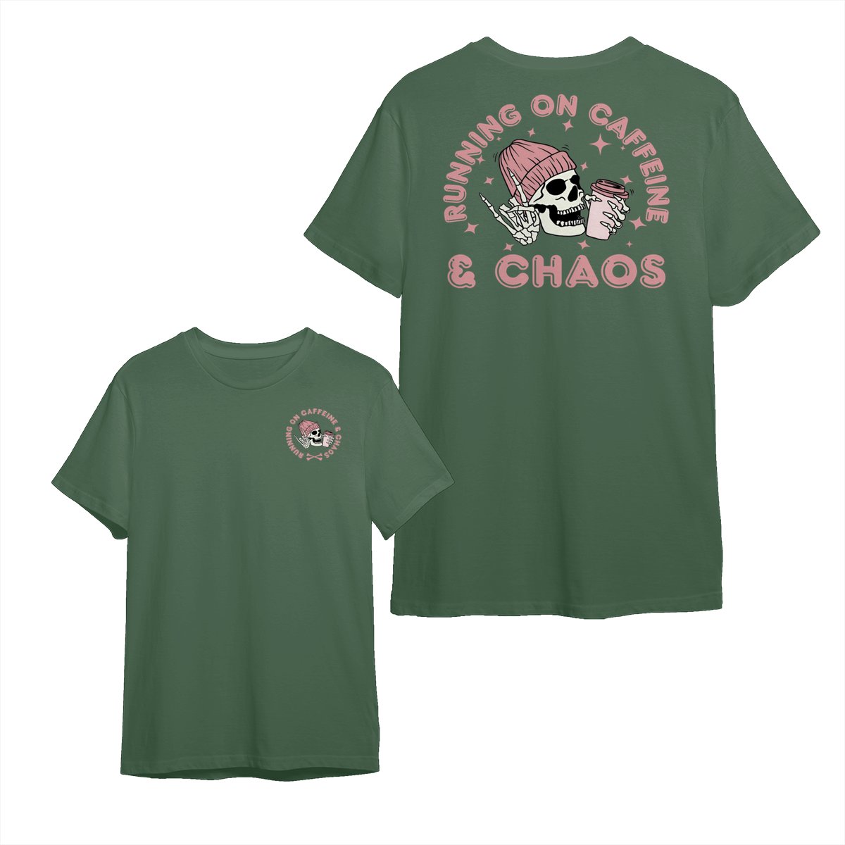 Running On Caffeine And Chaos Shirt, Caffeine And Chaos Shirt, Skeleton Coffee Shirt, Mom Life Shirt, Gift for Girlfriend, Skeleton Coffee, Chaos Coordinator