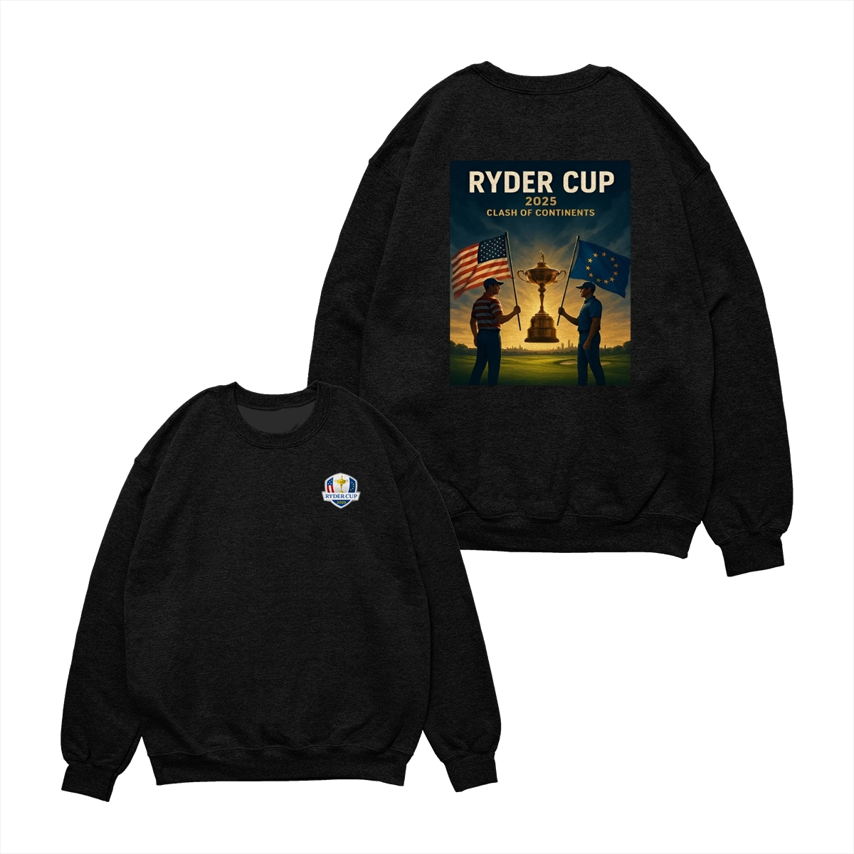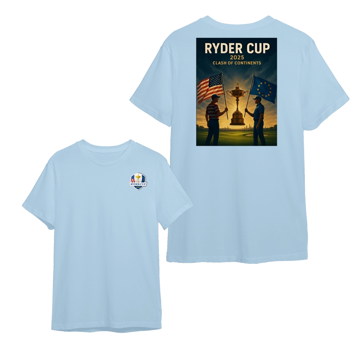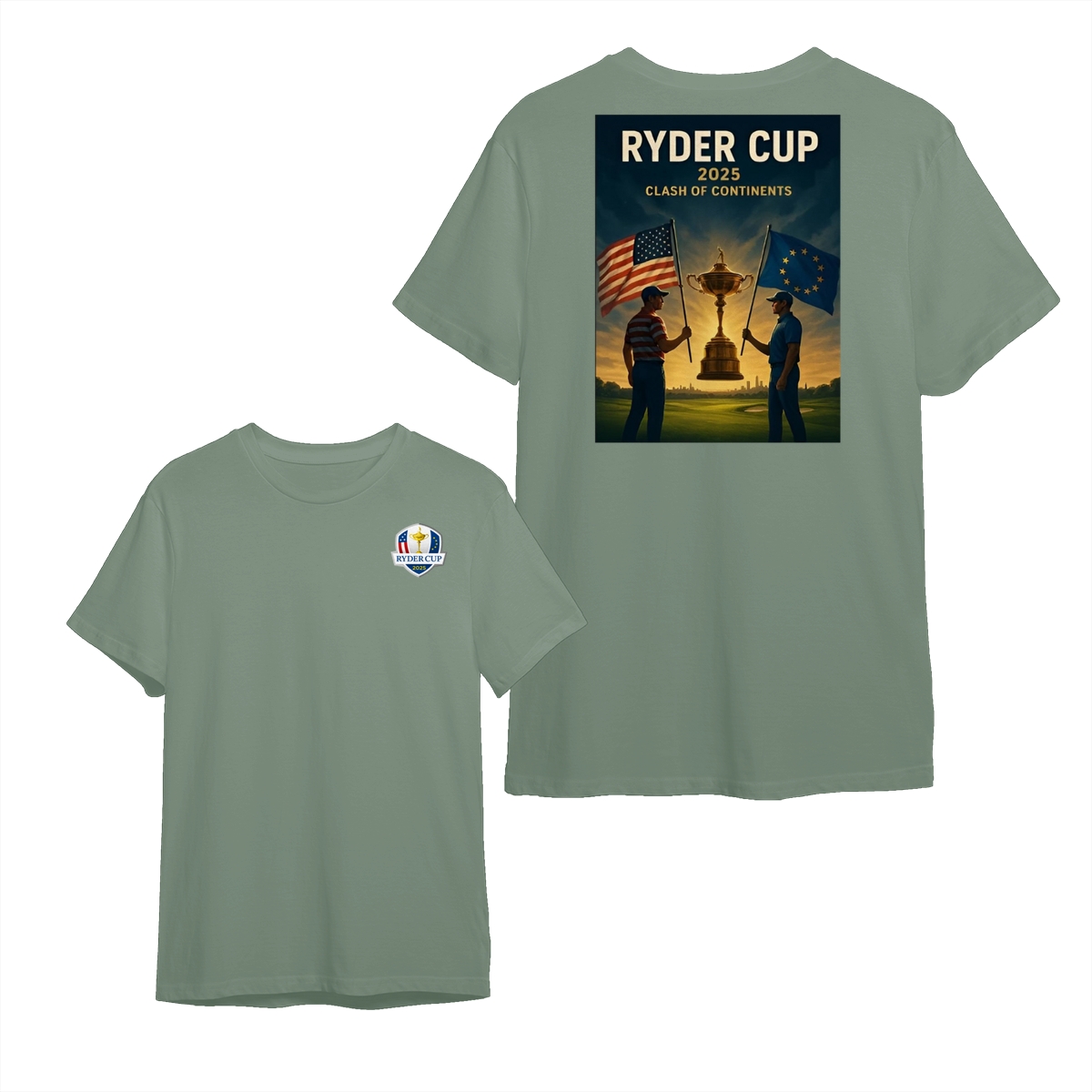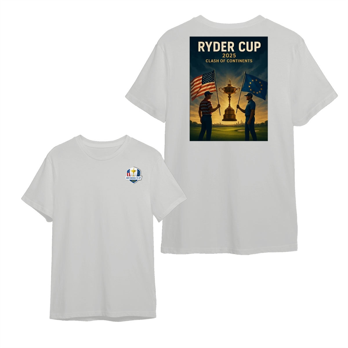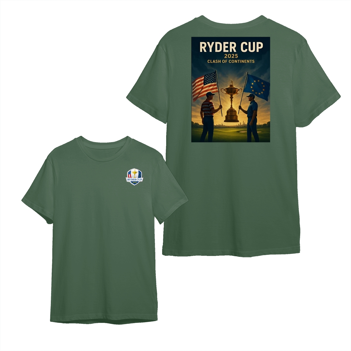 Ryder Cup 2025 T-Shirt, USA vs Europe Trophy & Flags Graphic, Perfect Fan Gear – Add to Cart Buy Now Tee, Bold & Patriotic Style