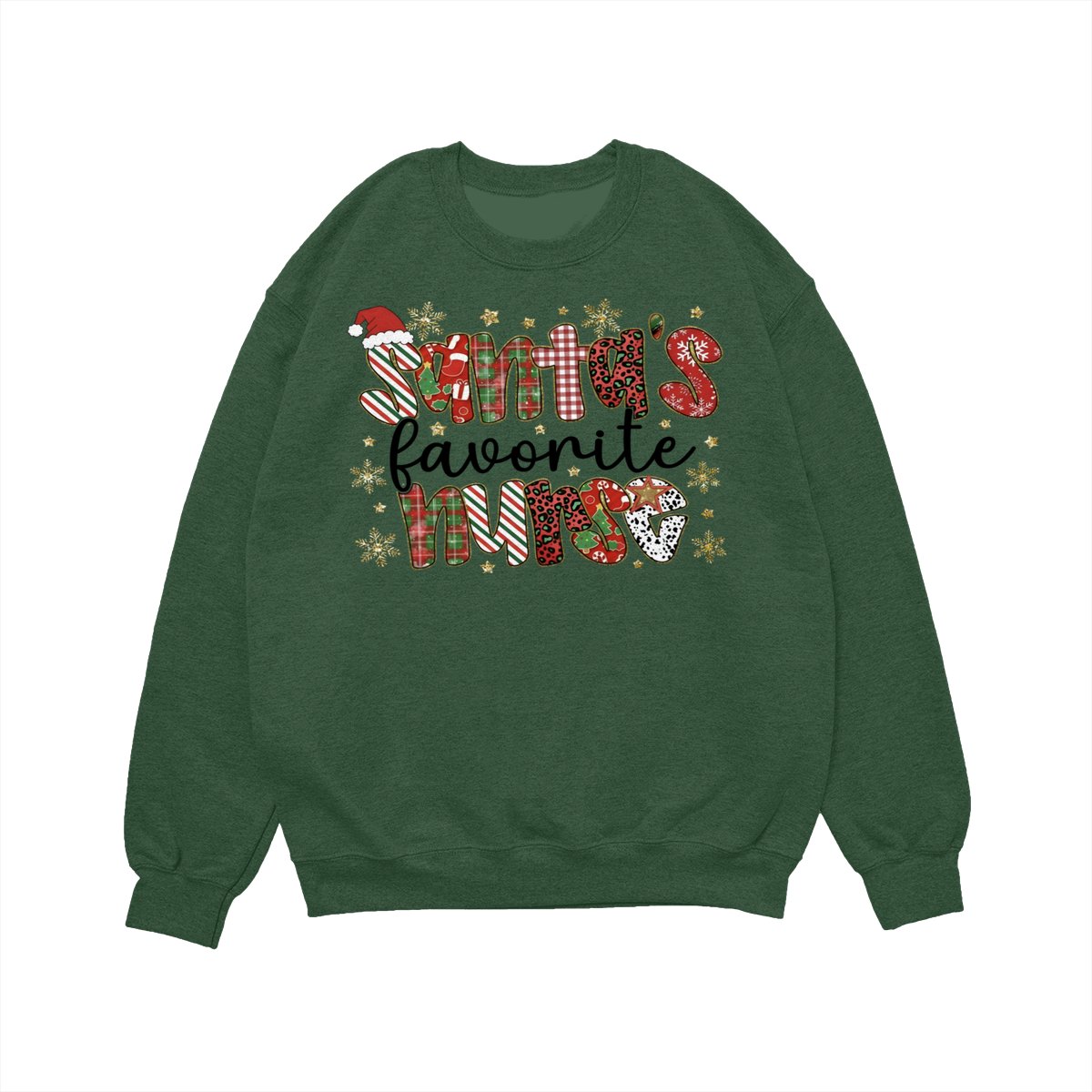 Santa’s Favorite Nurse Sweatshirt, Christmas Nurse Shirt, Preppy Nurse Christmas Shirt, Merry Nurse Shirt, Merry Christmas Gift, Unisex Hoodie For Her