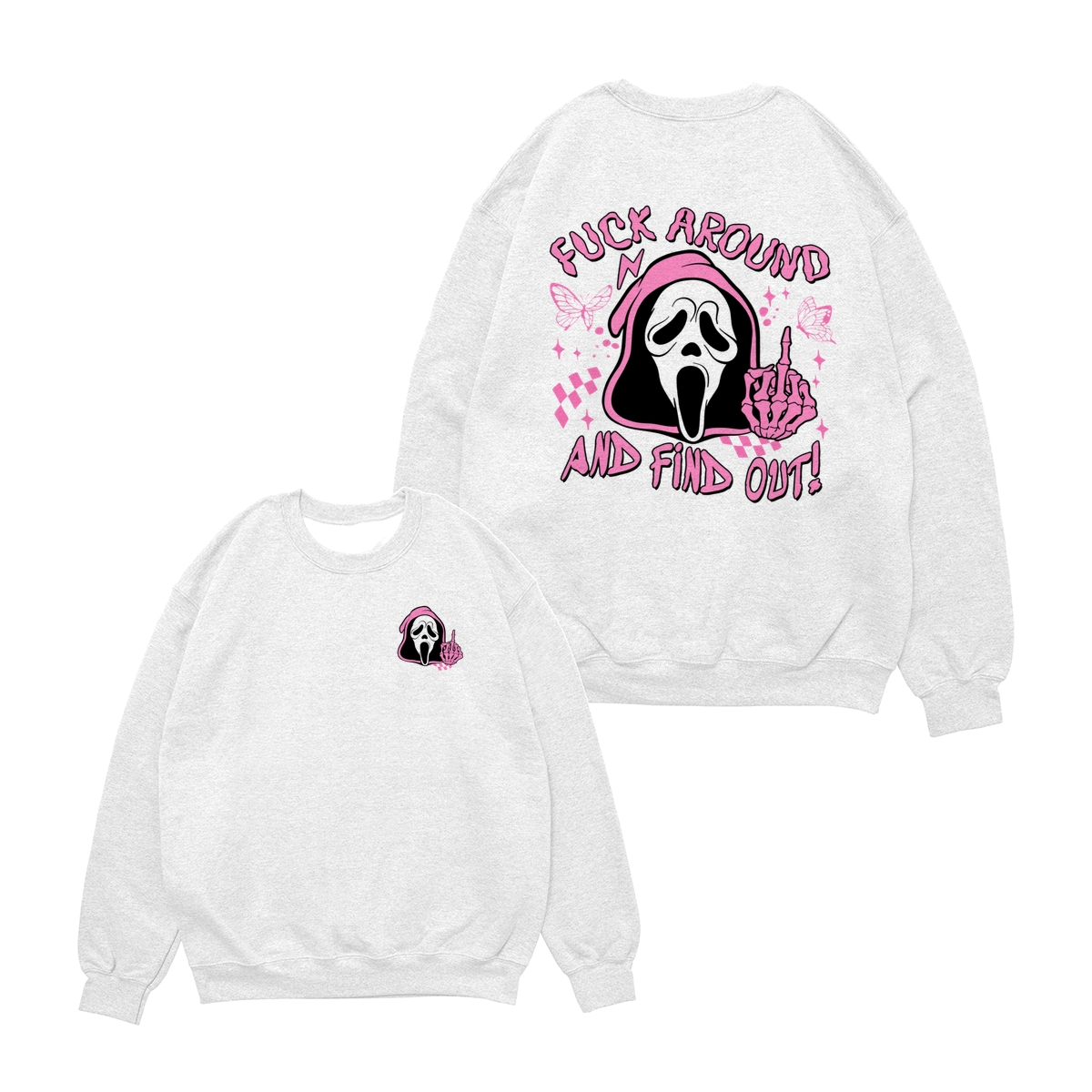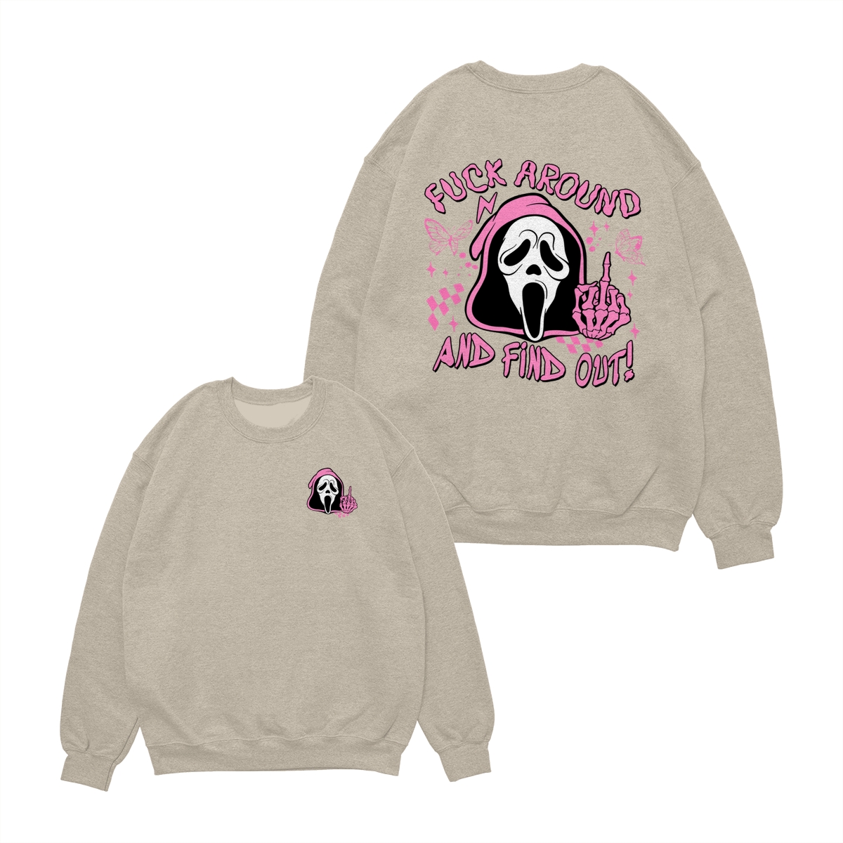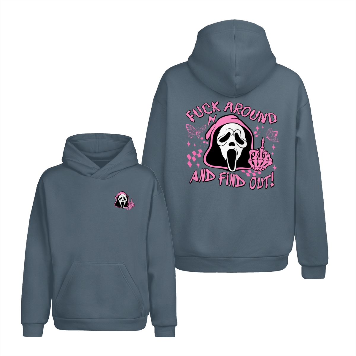 Scream Skeleton Spooky F*ck Around And Find Out Shirt, 2 Side Halloween Ghost Face Hoodie, Halloween Casual Hoodie, Gift For Her