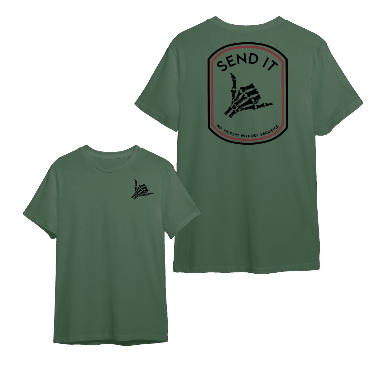 “Send It” Motivational T-Shirt – No Victory Without Sacrifice Quote Tee, Conquer Your Limits Graphic Shirt, Unisex Crewneck Pullover, Gift for Him & Her