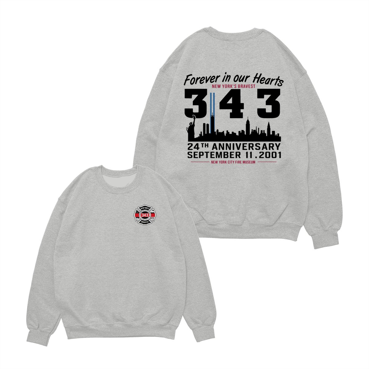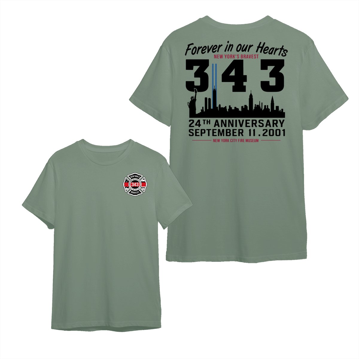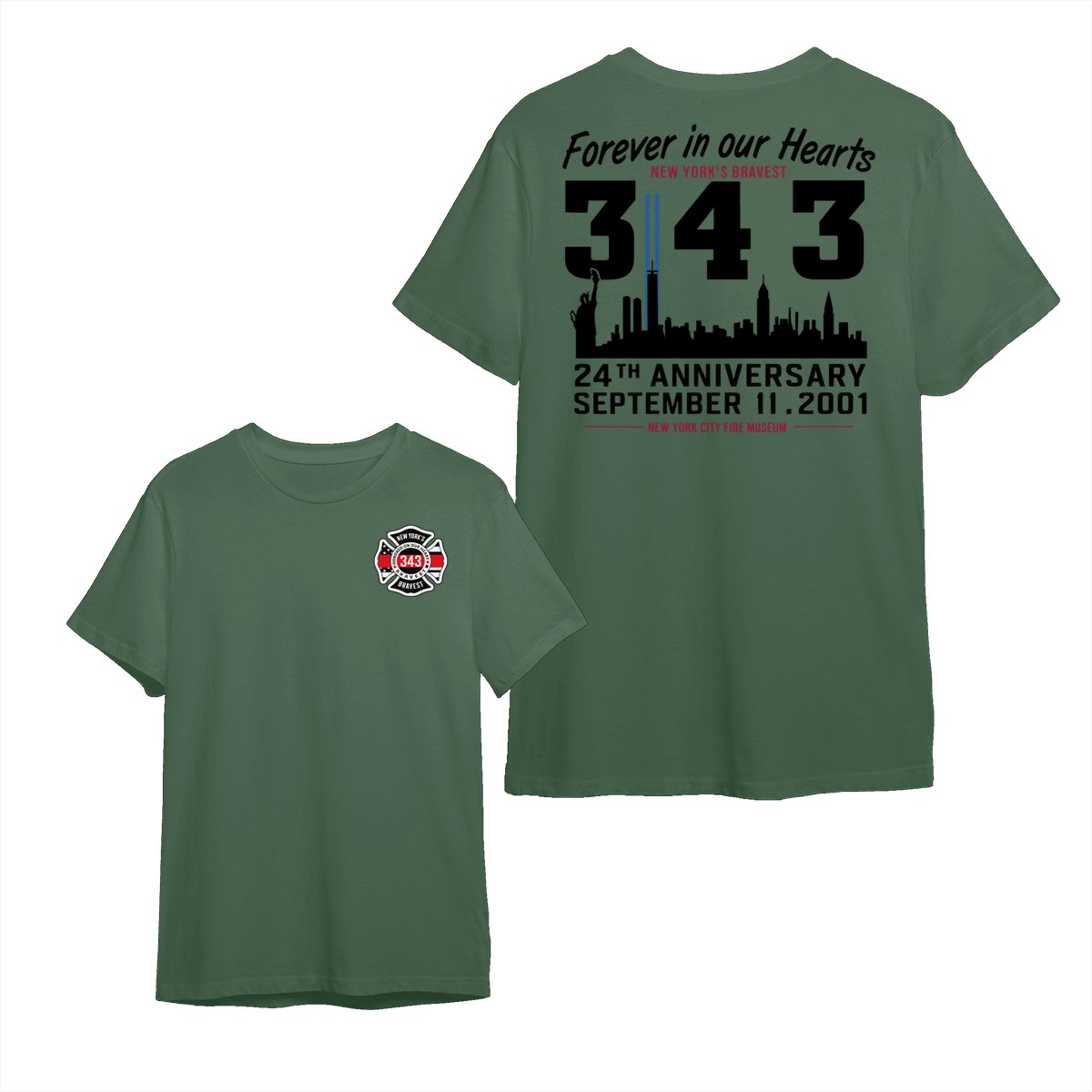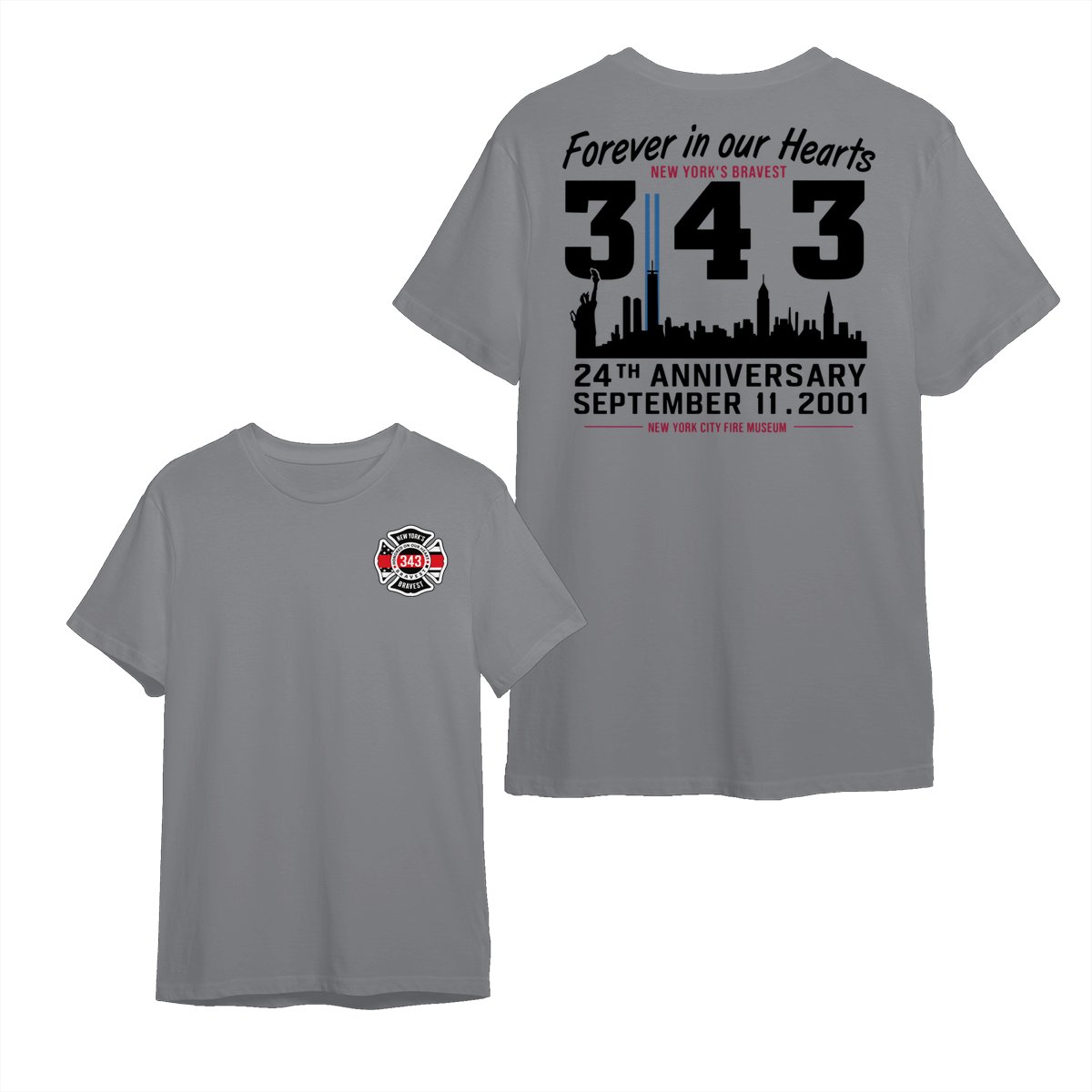 September 11 Tribute T Shirt – 343 Firefighters Honor And Remembrance Graphic , Forever In Our Hearts Quote , NYC Skyline Memorial Art , 24th Anniversary Commemorative Tee , Patriotic American Pride Shirt Cotton Fabric Menswear Top Sport Soft Classic