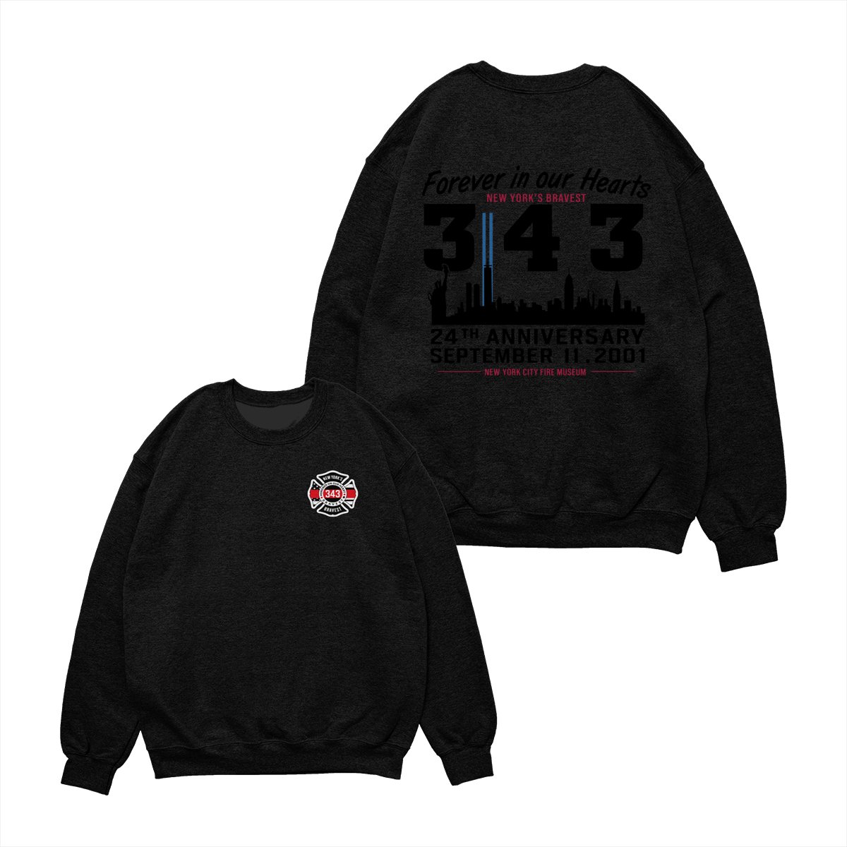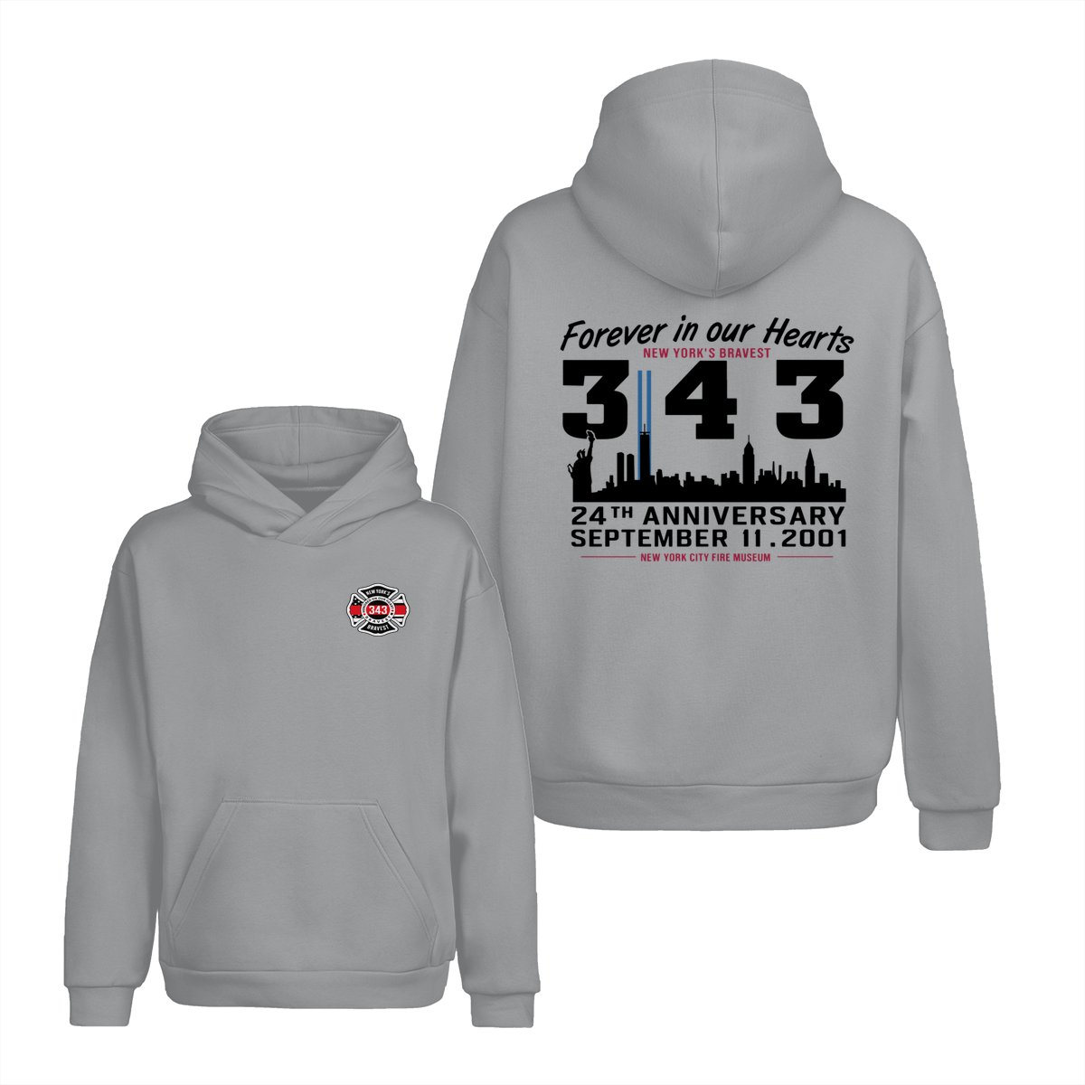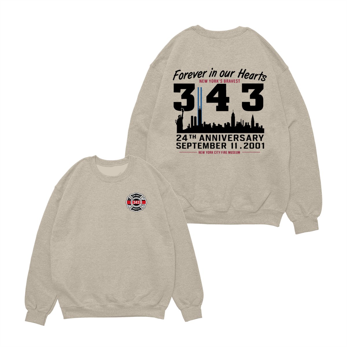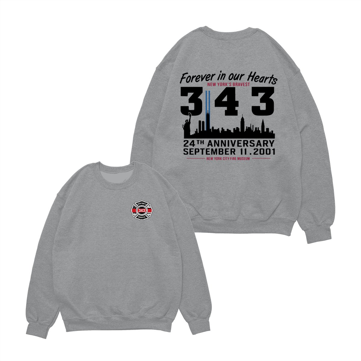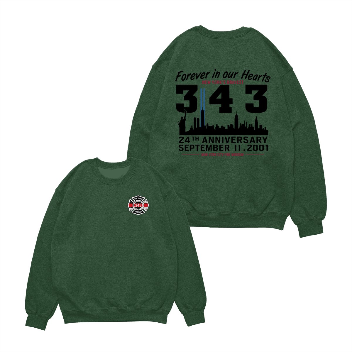 September 11 Tribute T Shirt – 343 Firefighters Honor And Remembrance Graphic , Forever In Our Hearts Quote , NYC Skyline Memorial Art , 24th Anniversary Commemorative Tee , Patriotic American Pride Shirt Cotton Fabric Menswear Top Sport Soft Classic