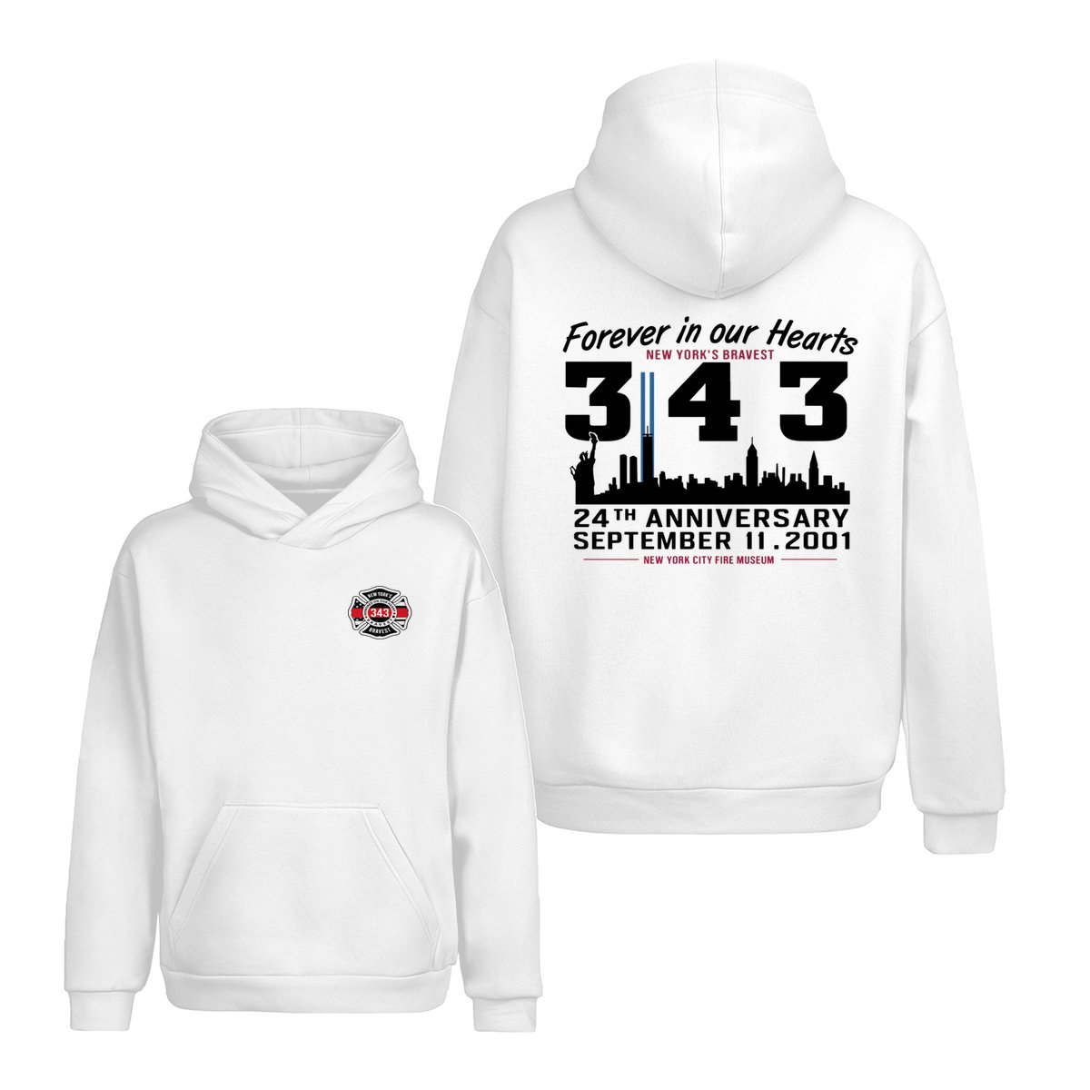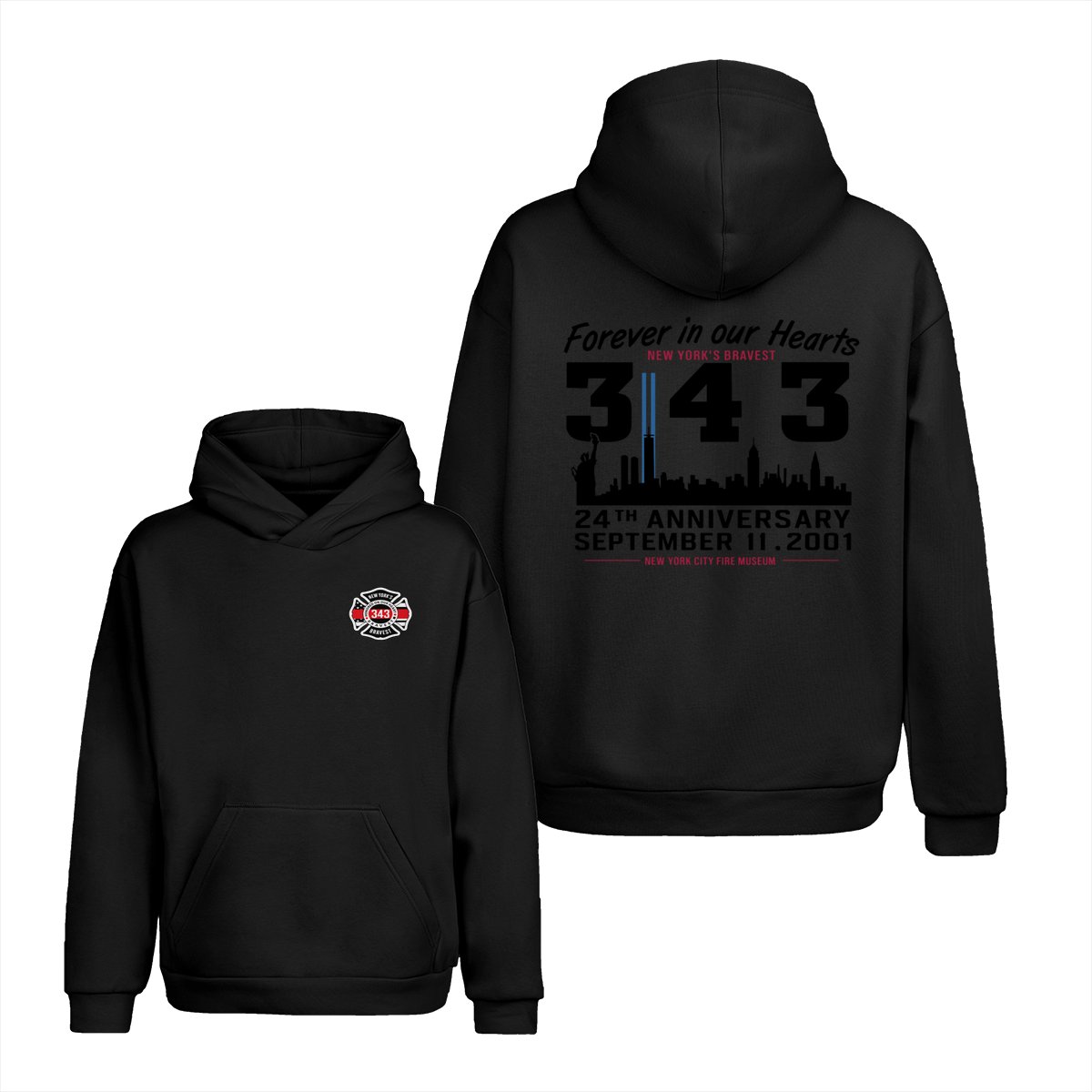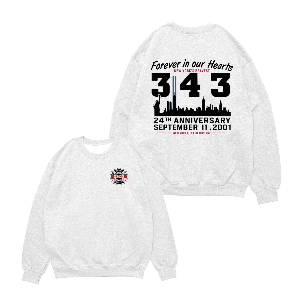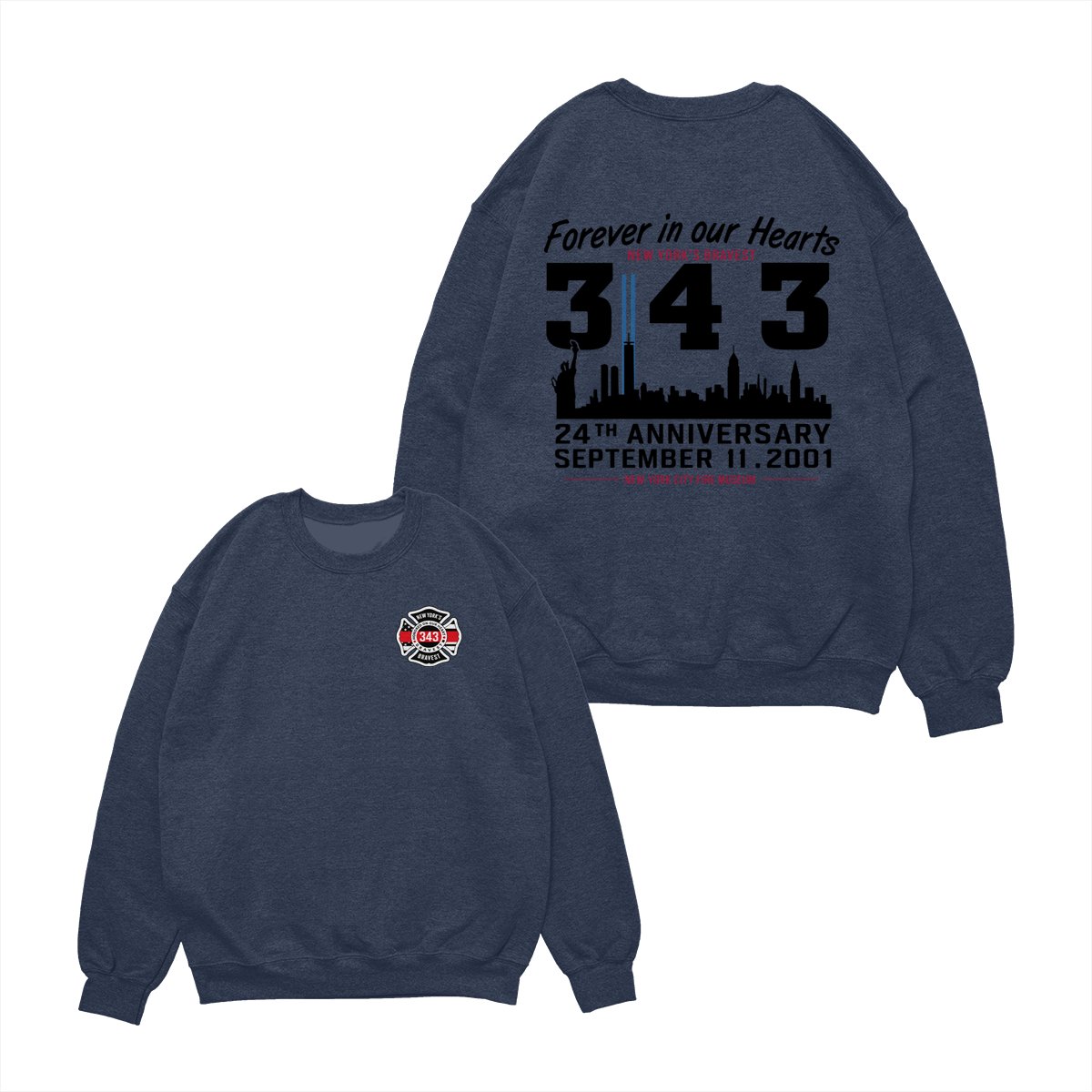 September 11 Tribute T Shirt – 343 Firefighters Honor And Remembrance Graphic , Forever In Our Hearts Quote , NYC Skyline Memorial Art , 24th Anniversary Commemorative Tee , Patriotic American Pride Shirt Cotton Fabric Menswear Top Sport Soft Classic