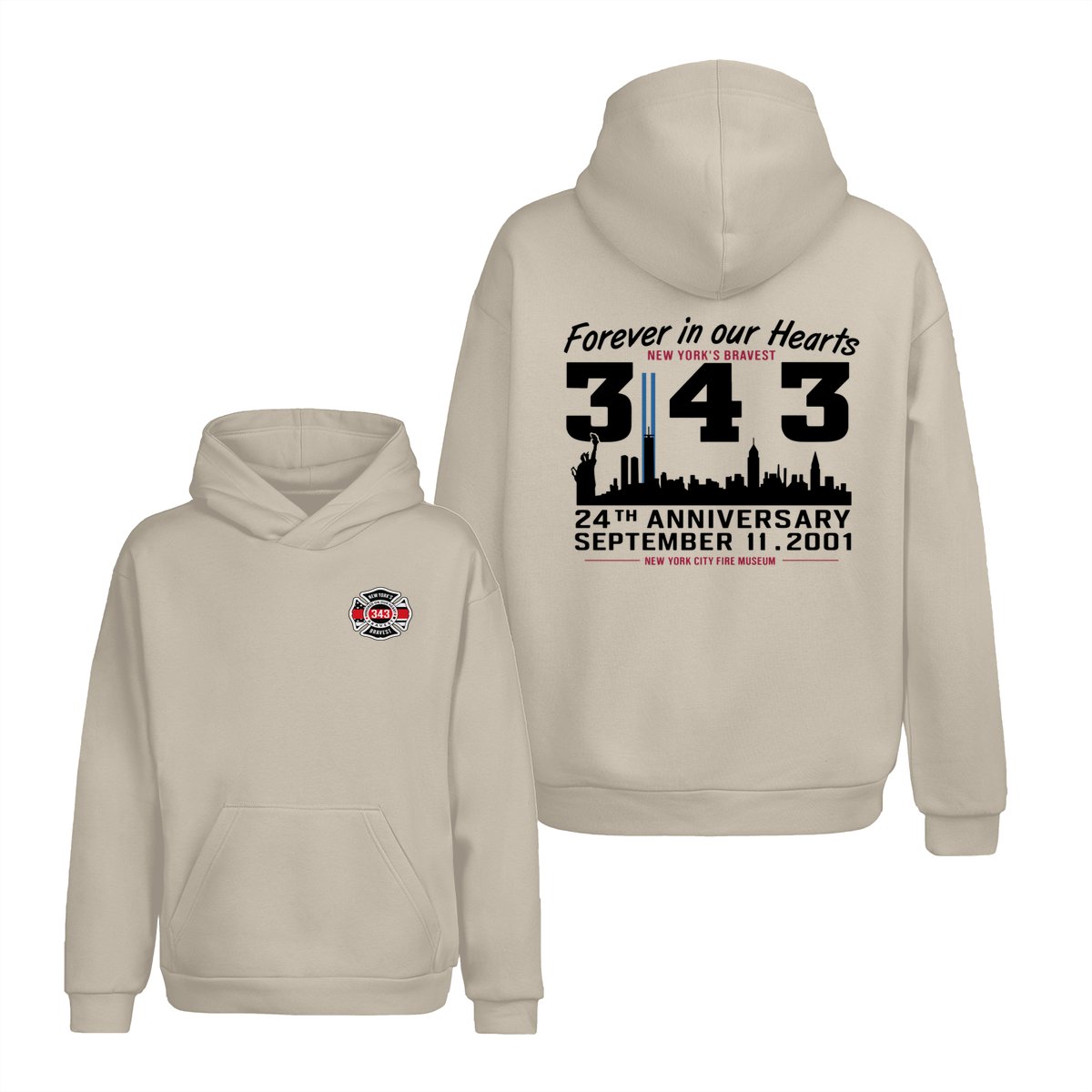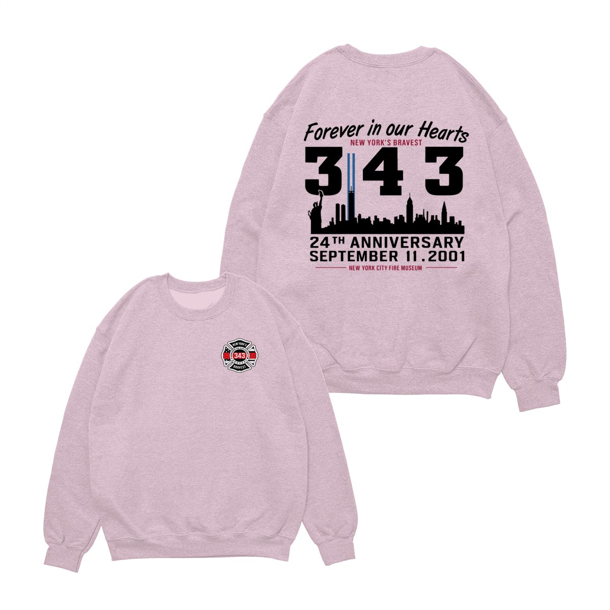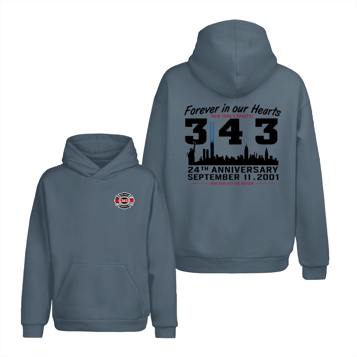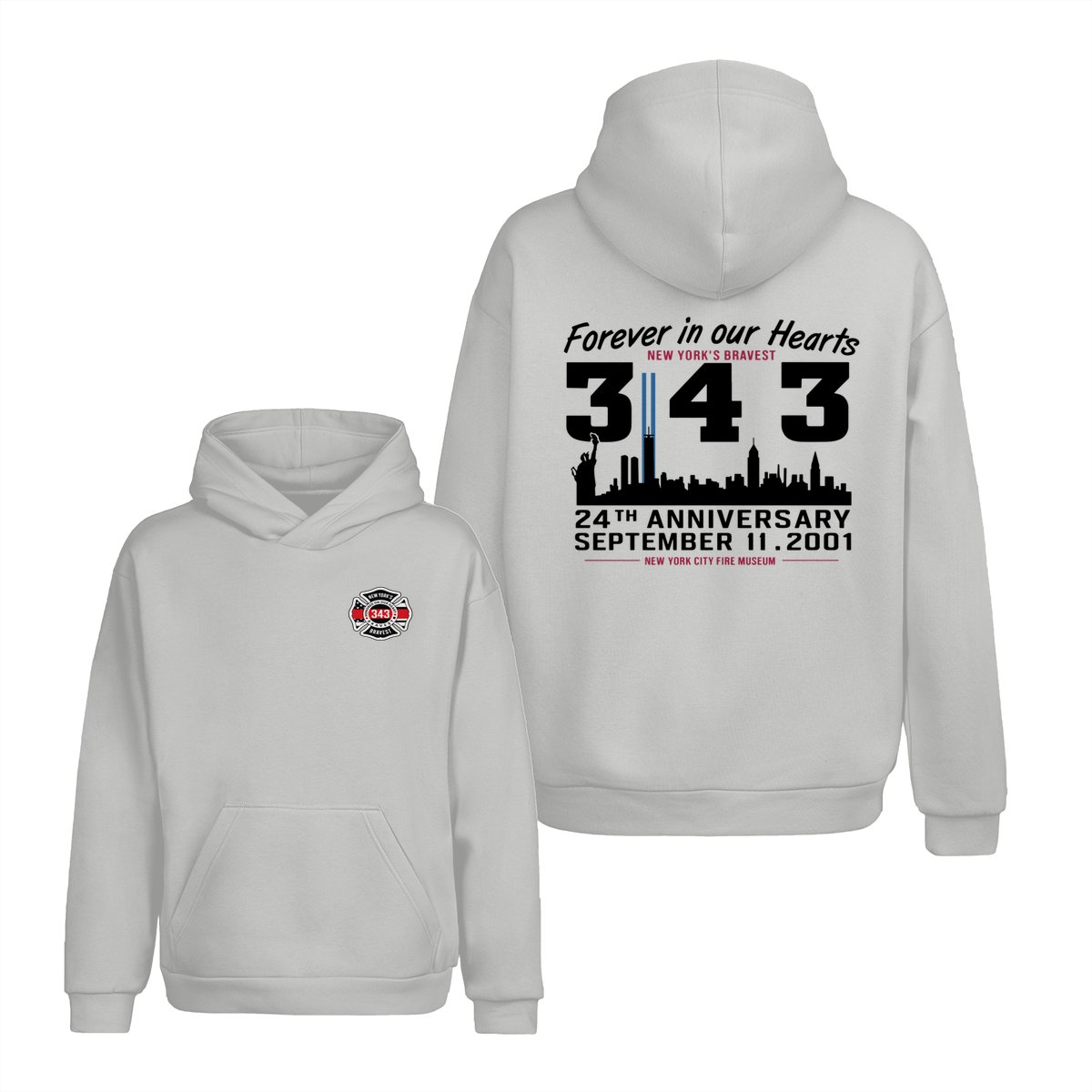 September 11 Tribute T Shirt – 343 Firefighters Honor And Remembrance Graphic , Forever In Our Hearts Quote , NYC Skyline Memorial Art , 24th Anniversary Commemorative Tee , Patriotic American Pride Shirt Cotton Fabric Menswear Top Sport Soft Classic